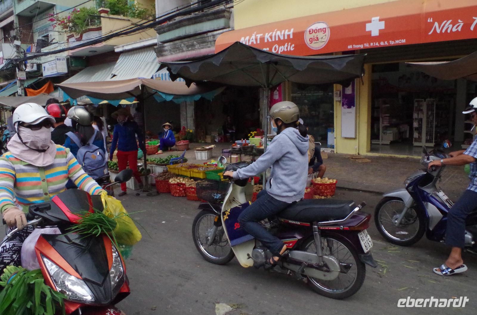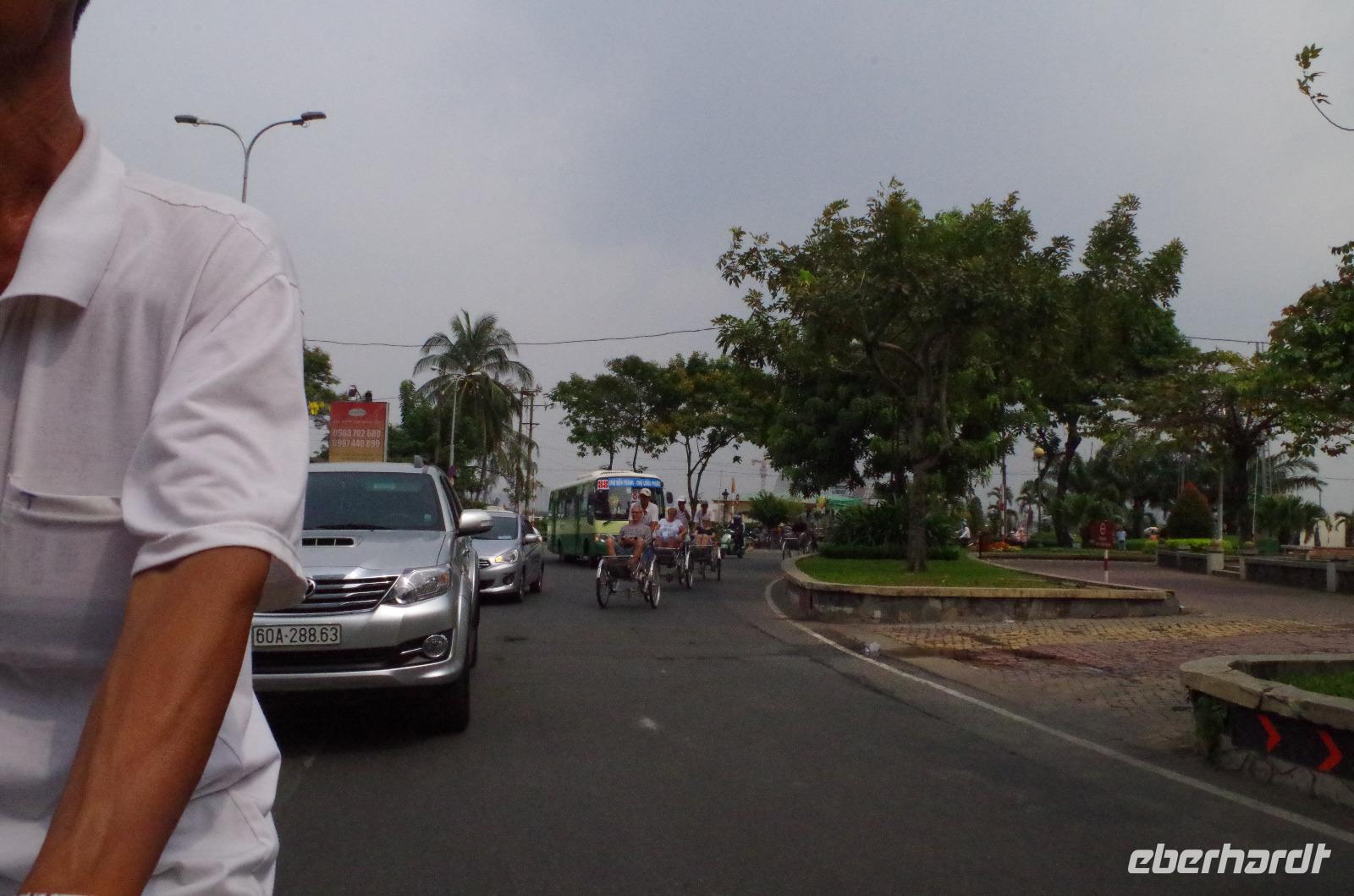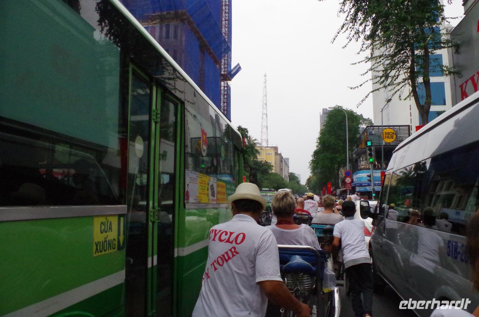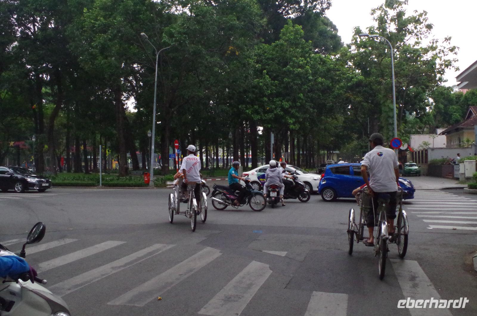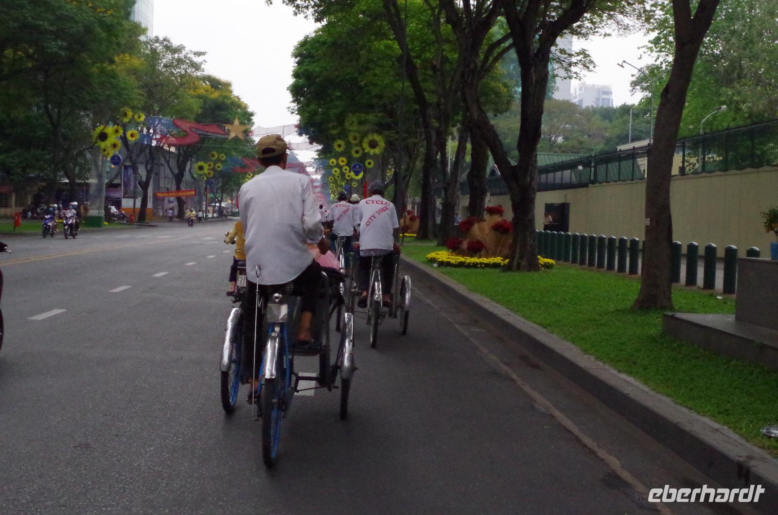 Während wir uns die vergangenen zwei Tage super erholt haben, freuen wir uns auf einen weiteren Tag voller kultureller und abenteuerlicher Highlights. Heute ist es wechselhaft bei rund 31 Grad Celsius. Wir werden mit einem vietnamesischen Hallo "Xin Chao!" begrüßt. Mit einer Ausdehnung von 1.650 Kilometern von Nord nach Süd ist Vietnam über 330.000 Quadratkilometer groß. Die breiteste Stelle mit circa 600 Kilometern befindet sich im Norden, die engste Ausdehnung mit 50 Kilometern an der Zentralküste in der Provinz Quang Binh. Die am Fluss Saigon gelegene Ho-Chi-Minh-Stadt hatte bis 1976 den gleichnamigen Namen wie der Fluss getragen. Heute heißt diese 6,8-Millionen-Metropole wie der vietnamesische Revolutionär Ho Chi Minh. Für den Landgang werden Bordkarte und eine lokale Landgangskarte benötigt, welche wir vor zwei Tagen abgeholt haben. Wer noch Geld tauschen möchte, kann dies gern an der Rezeption an Bord der AIDAbella vornehmen. Der Wechselkurs liegt ungefähr bei 1 Euro zu 25.000 Vietnamesischen Dong. Viele Gäste treffen sich ab 06.00 Uhr im "Weite Welt Restaurant" beim Frühstück. Pünktlich um 07.00 Uhr erreicht die AIDAbella den Hafen ODA Thi Vai Port der Ho-Chi-Minh-Stadt/Phu My in Vietnam. Die komplette Reisegruppe geht gemeinsam um 07.15 Uhr von Bord, ein weiterer großartiger Eberhardt-Exklusiv-Ausflug steht uns unmittelbar bevor :-) Bekannte Sehenswürdigkeiten der Ho-Chi-Minh-Stadt sind die Kathedrale Notre Dame, das Alte Hauptpostamt, die Wiedervereinigungshalle, auch Palast der Einheit genannt, die Xa Loi-Pagode oder der Ben-Thanh-Markt. Um 07.30 Uhr treffen wir auf unseren jungen Reiseleiter Luan, welcher uns mit seiner lustigen und jugendlichen Art noch zum Lächeln bringen wird. Ähnlich wie in Bangkok und Kuala Lumpur dauert die Fahrt vom Hafenterminal ins Stadtzentrum längere als eine Stunde. Gegen 09.00 Uhr erreichen wir das Chinatown von Saigon, unternehmen eine Bio-Pause und besuchen anschließend eine Tempelanlage. Nächster Programmpunkt ist der Besuch eines typischen Marktes, wobei neben dem Verkauf von jeder Menge verschiedener Arten an Obst und Gemüse auch "frisches" Fleisch angeboten wird. Besonders auffallend und für uns eher unnatürlich ist die Tatsache, dass "frisches" Fleisch oder auch Eier mitten auf den Tisch liegen, obwohl eine Hitze von über 30 Grad herrscht. Wir würden dieses Essen im Kühlschrank aufbewahren, hier ist es aber scheinbar vollkommen normal, die Sachen einfach anzubieten ohne sie in einer Kühlvorrichtung zu kühlen. Dies ist schon eher ungewohnt für uns! Dann besuchen wir eine typische Markthalle, wo uns ein ähnliches Schauspiel geboten wird. Der Unterschied besteht allerdings darin, dass wir uns dieses Mal in einer riesigen Halle befinden, die Stände dicht beieinander stehen und aufgrund der vielen Menschen das Durchlaufen manchmal sehr langsam erfolgt. Wir besuchen individuell diese große Einkaufshalle und passieren unter anderem Stände mit Schmuck, Kleidung, Obst, Gemüse und Souvenirs. Der ein oder andere Reisegast kauft sich auch ein Andenken für zuhause wie beispielsweise den sogenannten landestypischen Reishut. Wir laufen danach durch die bekannte Einkaufsstraße "Dong Khoi Street" zum Mittagessen um 11.30 Uhr im Restaurant "Pho 24". Der heutige Tag könnte auch die Überschrift "Ein Tag voller unbekannter ungewöhnlicher abenteuerlicher Erlebnisse!" tragen! Diese landestypische und bei Einheimischen sehr beliebte Restaurantkette zählt da sicher dazu ;-) Unser Essen besteht aus einer typische asiatischen Nudelsuppe mit Hühnchen, Rindfleisch oder ohne Fleisch. Wir versuchen uns im Essen mit Stäbchen, auch wenn uns der Löffel sicherlich lieber ist, aber ein Versuch ist es wert :-) Das wohl spannendste Ereignis am heutigen Tag findet gleich nach dem Essen statt. Wir werden eine einmalige aufregende Fahrt in der dreirädrigen Fahrradrikscha "Trishaw" durch Saigon erleben! Jeder Gast steigt in eine Rikscha und um 12.30 Uhr startet unser Tour in Chinatown mit einem Foto-Stopp am der Wiedervereinigungshalle. Der 1966 errichtete Präsidentenpalast "Presidential Palace" basiert auf einem Entwurf von Ngo Viet Thu, ein vietnamesischer Architekt, und wurde 1975 nach Beendigung des 30 Jahre andauernden Vietnamkriegs durch Nordvietnam in "Wiedervereinigungshalle" umbenannt. Wir fotografieren diese Sehenswürdigkeit von außen, lassen noch ein schönes Gruppenfoto von allen in der Rikscha machen und weiter geht es durch den verrückten vietnamesischen Verkehr zum Alten Postamt und zur Kathedrale Notre Dame am Platz Cong Xa Paris. Die Fahrt ist schon ein einmaliges Erlebnis, der Verkehr in Saigon einfach unglaublich, so viele Mopeds auf einmal, teilweise mit bis zu vier Menschen drauf, der absolute Wahnsinn! Es könnte wie folgt kurz zusammengefasst werden: Laut, bunt und ein klein wenig verrückt ;-) Jeder fährt wie er möchte, ein Moped neben dem anderem!!!! Es ist schon erstaunlich, wie viele Menschen oftmals auf einem Moped fahren. Beeindruckend ist sicher auch, was hier alles transportiert wird, von Lebensmitteln, Kleidung bis riesigen Kisten ist alles dabei. Auf so eine Idee würden wir in Deutschland wohl eher nicht kommen ;-) Eine Stunde später besichtigen wir die im Norden an der Flaniermeile Duong Dong Khoi gelegene, 1880 aus rotem Backstein errichtete neoromanische Kathedrale Notre Dame von außen und das Alte Postamt von innen. Hier besteht abermals die Möglichkeit, kleine Andenken zu kaufen. Danach fahren wir wieder zum Hafenterminal zurück. Unterwegs legen wir einen kurzen Stopp bei einem Reisefeld und Reisbauern ein, wo uns Luan typische Pflanzen und Gemüsesorten zeigt. Im Hafen verabschieden wir uns freundlich von Luan und wünschen ihm und seiner Familie alles Gute. Bei köstlichem Essen und leckeren Wein im "Weite Welt Restaurant" lassen wir die heutigen Erlebnisse Revue passieren. Wer möchte, schaut um 22.00 Uhr bei der Poolshow "Schlagersause" und der Poolparty mit DJ Maik auf dem Pooldeck