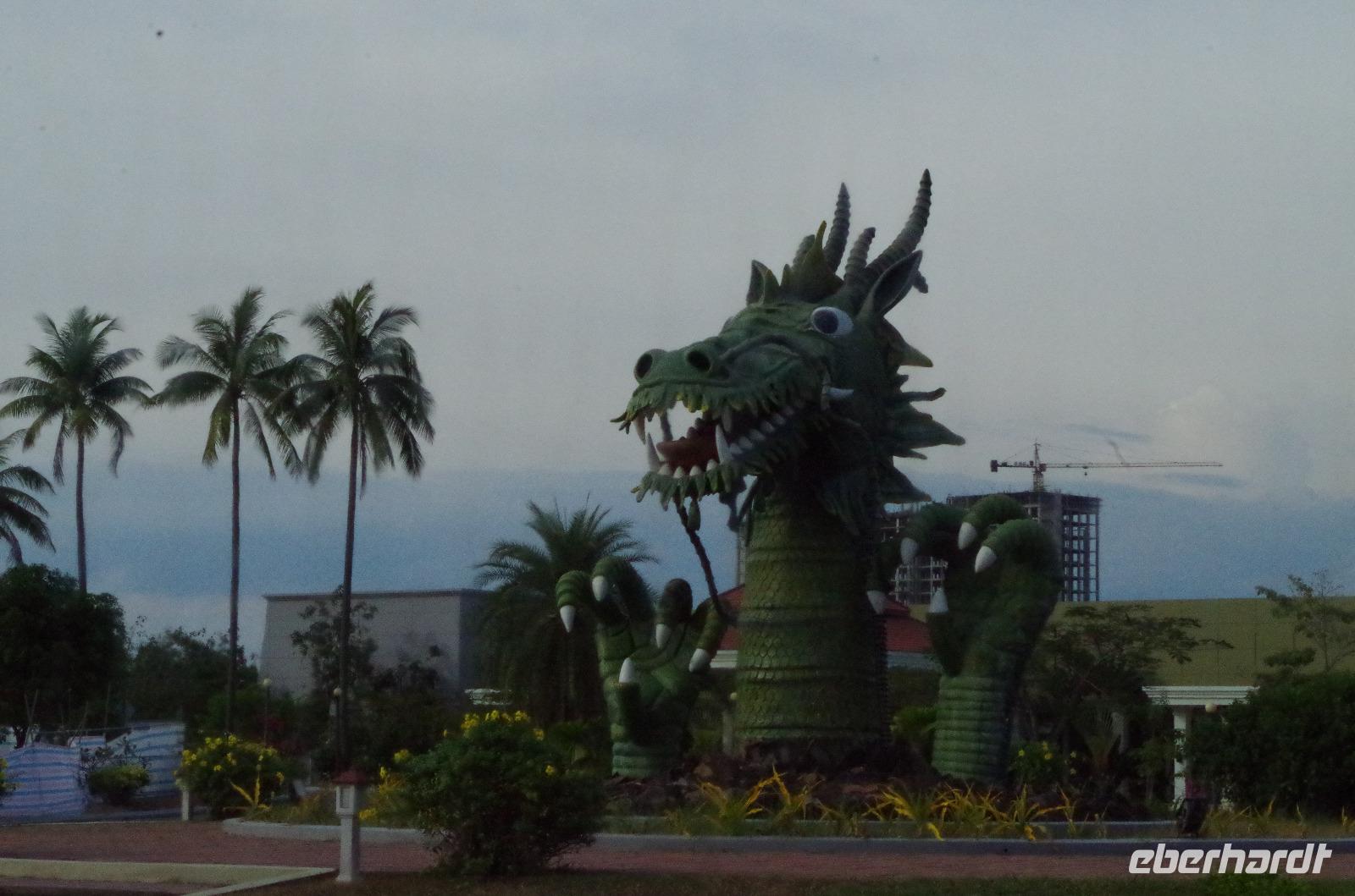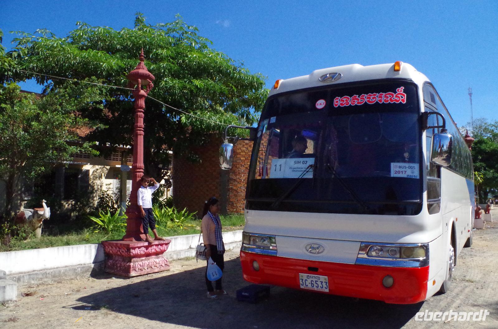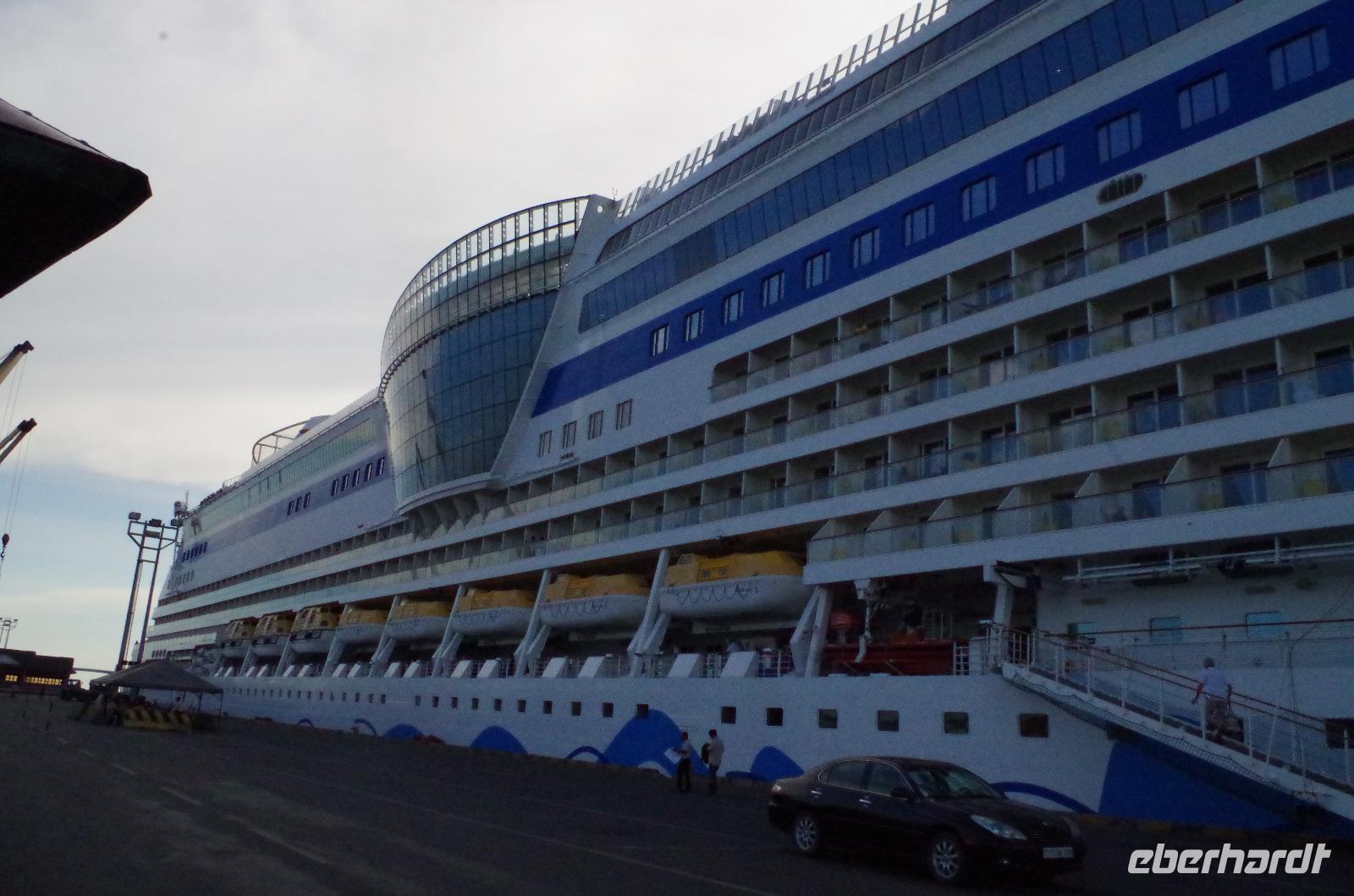 Nach Thailand, Singapur, Malaysia und Vietnam sind wir heute in Kambodscha unterwegs. Das wechselhafte Wetter der vergangenen Tage bleibt uns erhalten, bei 29 Grad Celsius ist es wieder sehr warm. Frühstück im "Markt Restaurant" auf Deck 9 ist ab 06.30 Uhr möglich. Das Visum für Kambodscha haben wir bereits in Deutschland beantragt und erhalten. Für den Landgang ist die Mitnahme der Bordkarte ausreichend. Die Landeswährung ist der Kambodschanische Riel (KHR) mit Wechselkurs 1 Euro zu 4.000 KHR. In Sihanoukville können wir aber auch mit US-Dollar zahlen, der Tausch von Euros in US-Doller ist abermals an der AIDA-Rezeption möglich. Pünktlich um 08.00 Uhr kommen wir am Old Jetty, Berth 1 & 3 von Sihanoukville an. In der auf einer Landzunge im Golf von Thailand liegenden Provinz leben rund 200.000 Menschen. Die kambodschanische Amtssprache ist Khmer, da sie rund 90 Prozent der Gesamtbevölkerung umfassen. Zu den Sehenswürdigkeiten der fünftgrößten Stadt Kambodschas zählen unter anderem das "Independence Monument" und "Victory Monument", die 1962 eröffnete St. Michael's Church, die Tempel "Wat Krom" und "Wat Leu", das goldene Löwendenkmal "Gold Lions Monument" in der Mitte einer Verkehrsinsel, der Phsar-Leu-Markt oder der Ream National Park. Liebevoll wird Sihanoukville aufgrund der traumhaft langen Sandstrände auch "Côte d'Azur", also azurblaue Küste, genannt. Alle Gäste haben heute einen AIDA-Ausflug gebucht, 2 Gäste erleben mit SIH09A eine "Große Stadtrundfahrt per Tuk-Tuk & Baden". Die anderen 18 Gäste unternehmen den Ausflug SIH02 "Ein perfekter Tag in Sihanoukville". Wir treffen uns um 08.15 Uhr im Theatrium auf Deck 9. Nach Rücksprache mit dem Scout erhalten wir unsere Busnummer 11, die Tour findet dieses Mal mit deutschsprachiger Reiseleitung statt, wir freuen uns natürlich sehr :-) Wir sind ganz begeistert von unserer Reiseleiterin Sorya, sie ist sehr freundlich, spricht gutes Deutsch und erzählt viel von ihren eigenen Erfahrung, einfach toll, sympathisch und sehr authentisch!!!! In Kambodscha bedeutet Sorya Sonnenschein, der Name ist wirklich passend für unsere Reiseleiterin :-) Sie erzählt uns, dass es 25 kambodschanische Provinzen gibt. Sihanoukville, am Golf von Siam gelegen und rund 230 Kilometer von der Landeshauptstadt Phnom Penh entfernt, ist eine der berühmtesten dieser Provinzen. Für die Fahrt zur Hauptstadt kann die Autobahn mit einer Länge von circa 200 Kilometern genutzt werden. Die Fahrdauer beträgt eigentlich nur rund zwei Stunden, aber aufgrund des Verkehrs und der Straßenbeschaffenheit dauert es unter Umständen vier bis fünf Stunden. In Sihanoukville leben rund 90.000 Einwohner. Rund 15 Millionen Menschen leben in Kambodscha. Um 09.15 Uhr besuchen wir das Dorf Puthuong. Wir fotografieren die Pagode von außen, schauen den Kindern beim Lernen in der Schule zu und laufen gemeinsam durch das Dorf. Auf der Fahrt zum nächsten Programmpunkt, der Besichtigung der Wat-Leu-Pagode (Obere Pagode) in Sihanoukville legen wir eine kurze Bio-Pause an einer Tankstelle ein. Um 11.30 Uhr besuchen wir den Phsar-Leu-Markt. Eine ähnliche Markthalle haben wir bereits in Saigon erlebt, obwohl der Geruch hier noch intensiver ist. Zum Beispiel kann sich wer möchte seine Krabbe selbst aussuchen, diese ist selbstverständlich noch lebend :-) Während am Vormittag das kulturelle Programm erfolgt, dient der Nachmittag zur Entspannung. Wir fahren um 12.00 Uhr zum rund fünfzehn Minuten entfernten Sokha Beach Resort. Auf der Fahrt haben wir die Möglichkeit, vom Bus aus das für diese Stadt bekannte Löwenmonument zu fotografieren. Im Resort gönnen wir uns zunächst ein wirklich leckeres Buffetessen und anschließend entspannen wir am weißen Sandstrand. Von unserer Reiseleiterin erhalten wir einen Gutschein für ein Freigetränk und für die Leihgabe eines Badehandtuchs. Es ist wirklich sehr warm, so dass wir uns gleich eine "Erfrischung" im Meer gönnen *grins* Dann entspannen wir im Schatten, laufen am Strand entlang, schwimmen oder sonnen uns :-) Gegen 16.30 Uhr sind wir wieder im Hafen von Sihanoukville zurück und verabschieden uns freundlich von unserer netten Reiseleiterin. Wir gönnen uns zur gewohnten Uhrzeit ein köstliches Abendessen im "Weite Welt Restaurant". Heute wird um 19.45 Uhr auch die Präsentation des Reisefilms "Unvergessliche Momente" im Theatrium auf Deck 9 bis 11 und TV-Kanal 1 gezeigt. Da wir morgen bereits wieder in Bangkok/Laem Chabang ankommen werden, erwartet uns um 21.20 Uhr der Farewell-Sekt sowie die Verabschiedung durch den General Manager Kai Botschek und Entertainment Manager Boris Henn mit anschließender Poolshow "Soulman & Poolparty mit DJ Maik" auf dem Pooldeck 11. Ein weiterer schöner Tag neigt sich dem Ende. Morgen geht es bereits zurück nach Bangkok/Laem Chabang in Thailand, es liegen noch rund 255 Seemeilen bzw. 472 Kilometer vor uns.