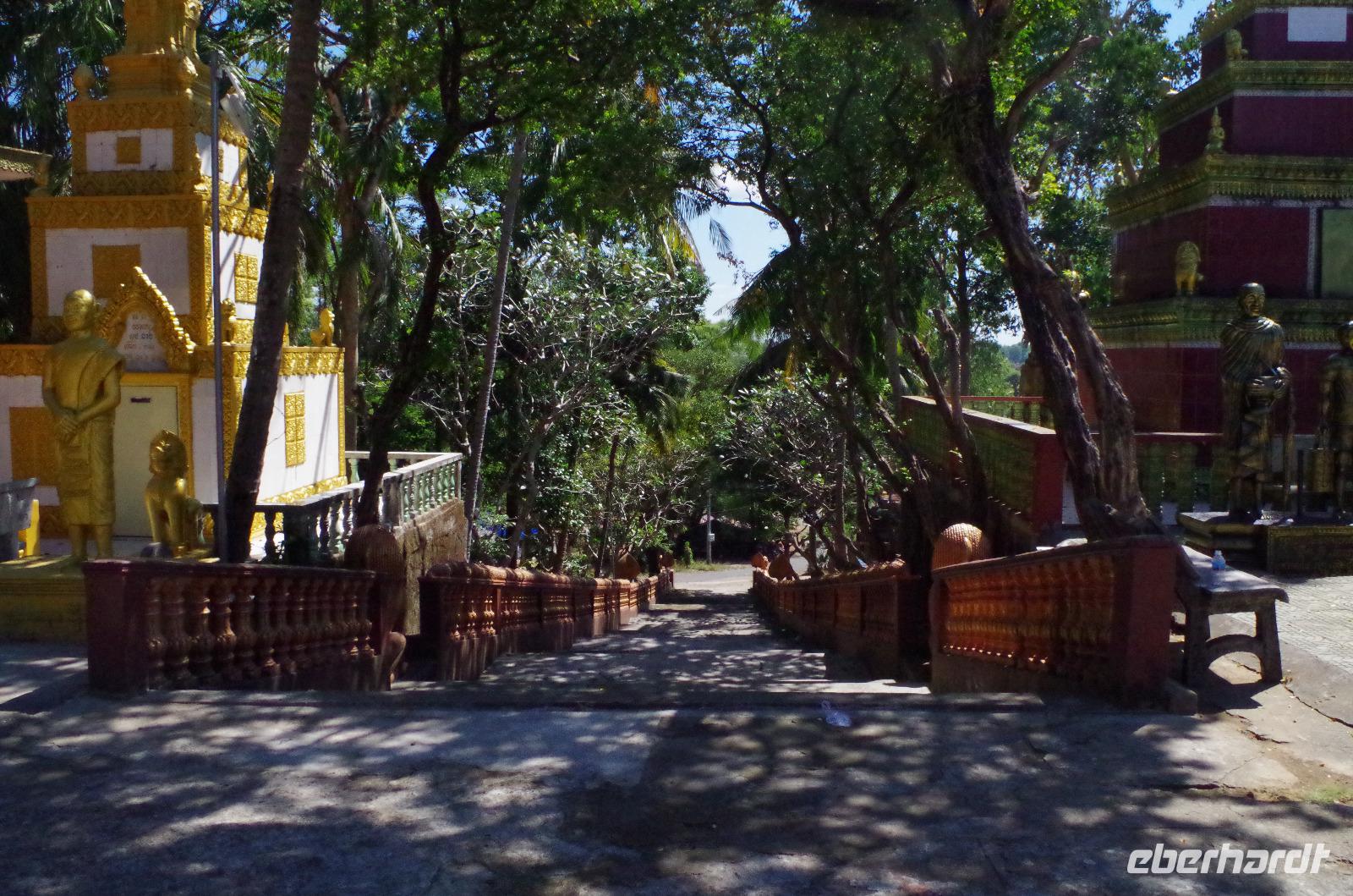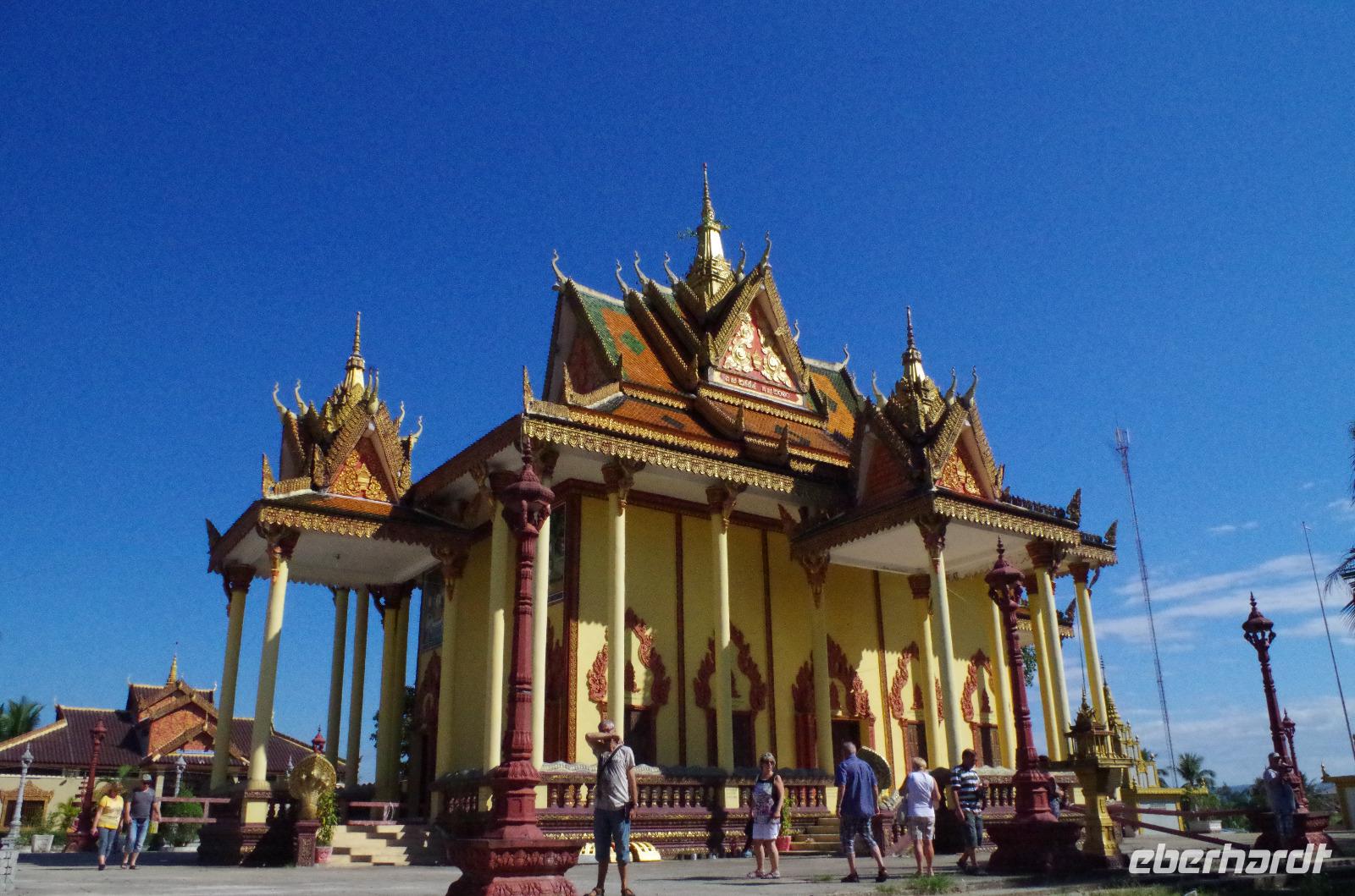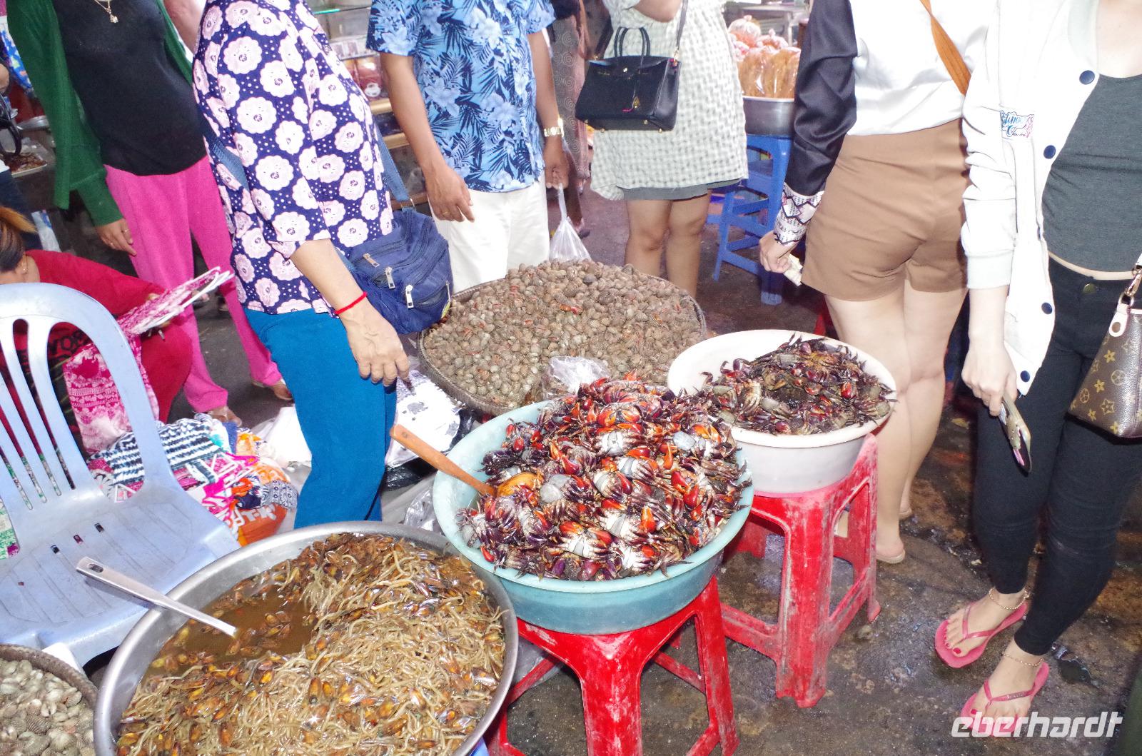 Nach Thailand, Singapur, Malaysia und Vietnam sind wir heute in Kambodscha unterwegs. Das wechselhafte Wetter der vergangenen Tage bleibt uns erhalten, bei 29 Grad Celsius ist es wieder sehr warm. Frühstück im "Markt Restaurant" auf Deck 9 ist ab 06.30 Uhr möglich. Das Visum für Kambodscha haben wir bereits in Deutschland beantragt und erhalten. Für den Landgang ist die Mitnahme der Bordkarte ausreichend. Die Landeswährung ist der Kambodschanische Riel (KHR) mit Wechselkurs 1 Euro zu 4.000 KHR. In Sihanoukville können wir aber auch mit US-Dollar zahlen, der Tausch von Euros in US-Doller ist abermals an der AIDA-Rezeption möglich. Pünktlich um 08.00 Uhr kommen wir am Old Jetty, Berth 1 & 3 von Sihanoukville an. In der auf einer Landzunge im Golf von Thailand liegenden Provinz leben rund 200.000 Menschen. Die kambodschanische Amtssprache ist Khmer, da sie rund 90 Prozent der Gesamtbevölkerung umfassen. Zu den Sehenswürdigkeiten der fünftgrößten Stadt Kambodschas zählen unter anderem das "Independence Monument" und "Victory Monument", die 1962 eröffnete St. Michael's Church, die Tempel "Wat Krom" und "Wat Leu", das goldene Löwendenkmal "Gold Lions Monument" in der Mitte einer Verkehrsinsel, der Phsar-Leu-Markt oder der Ream National Park. Liebevoll wird Sihanoukville aufgrund der traumhaft langen Sandstrände auch "Côte d'Azur", also azurblaue Küste, genannt. Alle Gäste haben heute einen AIDA-Ausflug gebucht, 2 Gäste erleben mit SIH09A eine "Große Stadtrundfahrt per Tuk-Tuk & Baden". Die anderen 18 Gäste unternehmen den Ausflug SIH02 "Ein perfekter Tag in Sihanoukville". Wir treffen uns um 08.15 Uhr im Theatrium auf Deck 9. Nach Rücksprache mit dem Scout erhalten wir unsere Busnummer 11, die Tour findet dieses Mal mit deutschsprachiger Reiseleitung statt, wir freuen uns natürlich sehr :-) Wir sind ganz begeistert von unserer Reiseleiterin Sorya, sie ist sehr freundlich, spricht gutes Deutsch und erzählt viel von ihren eigenen Erfahrung, einfach toll, sympathisch und sehr authentisch!!!! In Kambodscha bedeutet Sorya Sonnenschein, der Name ist wirklich passend für unsere Reiseleiterin :-) Sie erzählt uns, dass es 25 kambodschanische Provinzen gibt. Sihanoukville, am Golf von Siam gelegen und rund 230 Kilometer von der Landeshauptstadt Phnom Penh entfernt, ist eine der berühmtesten dieser Provinzen. Für die Fahrt zur Hauptstadt kann die Autobahn mit einer Länge von circa 200 Kilometern genutzt werden. Die Fahrdauer beträgt eigentlich nur rund zwei Stunden, aber aufgrund des Verkehrs und der Straßenbeschaffenheit dauert es unter Umständen vier bis fünf Stunden. In Sihanoukville leben rund 90.000 Einwohner. Rund 15 Millionen Menschen leben in Kambodscha. Um 09.15 Uhr besuchen wir das Dorf Puthuong. Wir fotografieren die Pagode von außen, schauen den Kindern beim Lernen in der Schule zu und laufen gemeinsam durch das Dorf. Auf der Fahrt zum nächsten Programmpunkt, der Besichtigung der Wat-Leu-Pagode (Obere Pagode) in Sihanoukville legen wir eine kurze Bio-Pause an einer Tankstelle ein. Um 11.30 Uhr besuchen wir den Phsar-Leu-Markt. Eine ähnliche Markthalle haben wir bereits in Saigon erlebt, obwohl der Geruch hier noch intensiver ist. Zum Beispiel kann sich wer möchte seine Krabbe selbst aussuchen, diese ist selbstverständlich noch lebend :-) Während am Vormittag das kulturelle Programm erfolgt, dient der Nachmittag zur Entspannung. Wir fahren um 12.00 Uhr zum rund fünfzehn Minuten entfernten Sokha Beach Resort. Auf der Fahrt haben wir die Möglichkeit, vom Bus aus das für diese Stadt bekannte Löwenmonument zu fotografieren. Im Resort gönnen wir uns zunächst ein wirklich leckeres Buffetessen und anschließend entspannen wir am weißen Sandstrand. Von unserer Reiseleiterin erhalten wir einen Gutschein für ein Freigetränk und für die Leihgabe eines Badehandtuchs. Es ist wirklich sehr warm, so dass wir uns gleich eine "Erfrischung" im Meer gönnen *grins* Dann entspannen wir im Schatten, laufen am Strand entlang, schwimmen oder sonnen uns :-) Gegen 16.30 Uhr sind wir wieder im Hafen von Sihanoukville zurück und verabschieden uns freundlich von unserer netten Reiseleiterin. Wir gönnen uns zur gewohnten Uhrzeit ein köstliches Abendessen im "Weite Welt Restaurant". Heute wird um 19.45 Uhr auch die Präsentation des Reisefilms "Unvergessliche Momente" im Theatrium auf Deck 9 bis 11 und TV-Kanal 1 gezeigt. Da wir morgen bereits wieder in Bangkok/Laem Chabang ankommen werden, erwartet uns um 21.20 Uhr der Farewell-Sekt sowie die Verabschiedung durch den General Manager Kai Botschek und Entertainment Manager Boris Henn mit anschließender Poolshow "Soulman & Poolparty mit DJ Maik" auf dem Pooldeck 11. Ein weiterer schöner Tag neigt sich dem Ende. Morgen geht es bereits zurück nach Bangkok/Laem Chabang in Thailand, es liegen noch rund 255 Seemeilen bzw. 472 Kilometer vor uns.