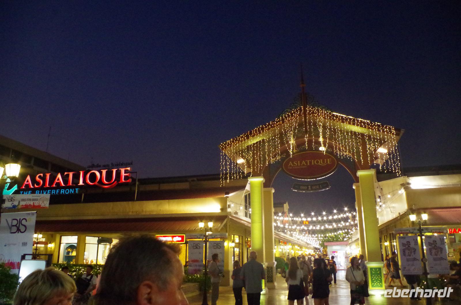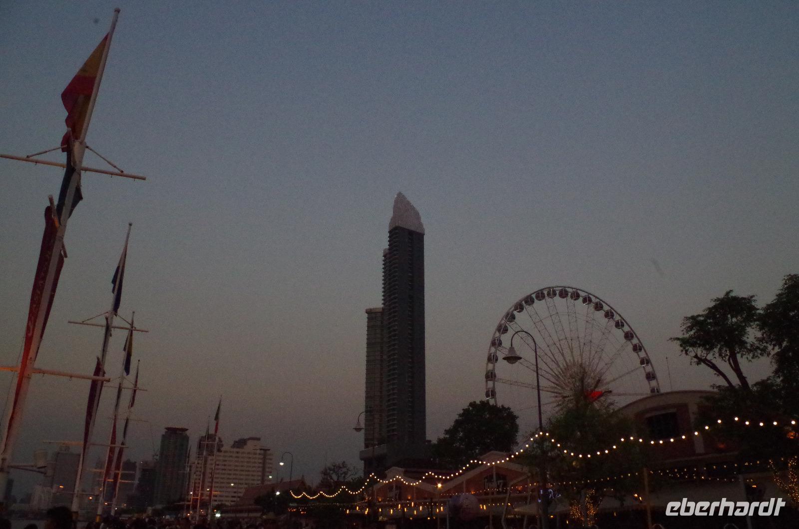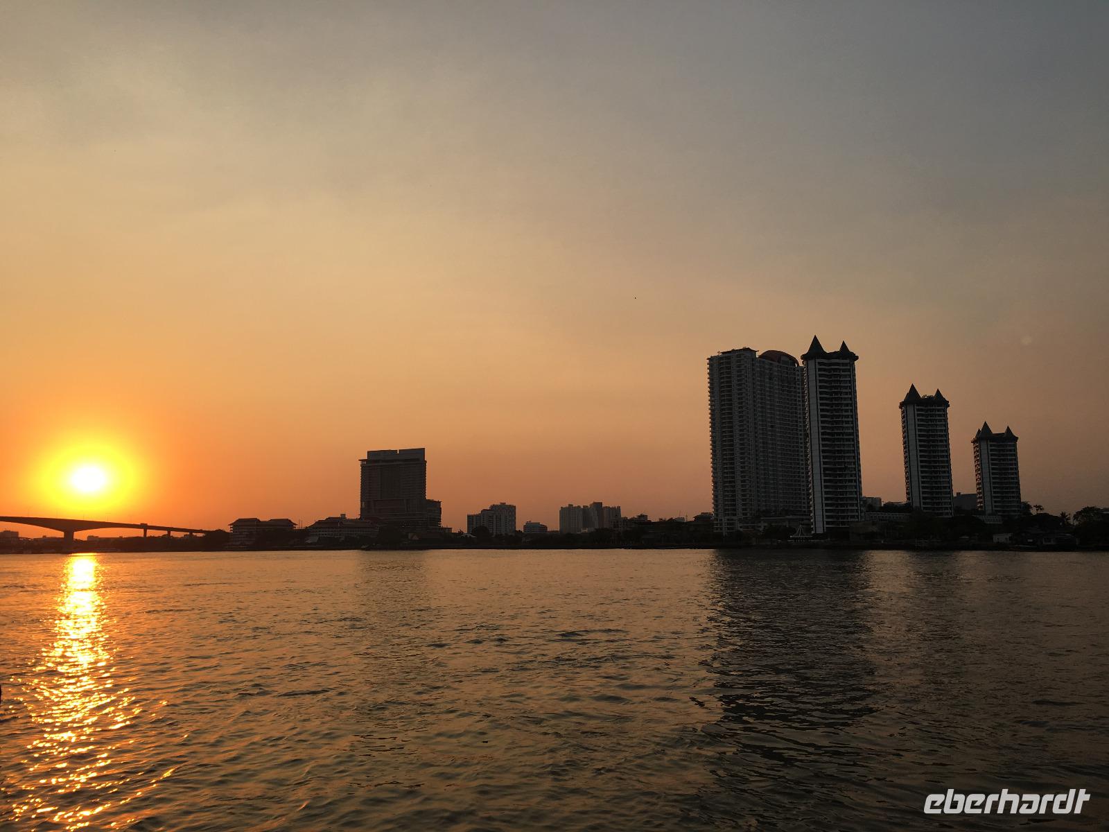 Heute ist ein Tag gemischter Gefühle! Voller freudiger Erwartung, ein weiteren schönen Tag in Bangkok zu verbringen, aber auch wehmütig, da unsere tolle Reise sich dem Ende neigt :-) :-( Wir stärken uns bei einem leckeren ausgiebigen Frühstücksbuffet im "Weite Welt Restaurant". Es wird abermals sehr warm werden, bis zu 35 Grad bei leicht bewölktem Himmel. Um 10.45 Uhr treffen sich alle Gästen und die Reisebegleitung an der Rezeption auf Deck 5. Wir gehen gemeinsame von Bord und holen im Hafenterminal unser Gepäck ab. Gestern haben wir bereits unseren Reisepass abgeholt. Besser jeder kontrolliert nochmals, ob wir einen Einreisestempel für Thailand und die Ausreisekarte erhalten haben. Am Eingang vom Hafenterminal wartet bereits unsere Reiseleiterin Sini auf uns. Wir freuen uns, von der gleichen Reiseleiterin vom Vorprogramm auch am heutigen Tag begleitet zu werden. Im Bus gibt es für einen unserer Gäste noch ein Geburtstagsständchen und schon starten wir die über 100 Kilometer bis zum Zentrum von Bangkok. Während der Fahrt erzählt uns Sini, dass Thailand der der größte Reis-Exporteur der Welt ist. Die Landwirtschaft ist der wichtigste Industriezweig, neben Reis wird besonders Palmöl, Ananas, Kautschuk und tiefgefrorene Garnelen exportiert. Des Weiteren werden auch elektronische Geräte und Schmuck ausgeführt. Aufgrund des dichten Verkehrs erreichen wir rund 30 Minuten später als erwartet erst um 13.30 Uhr das Restaurant "Wanfah" direkt am Chao Phraya-Fluss. Das Buffetessen ist anfangs noch ein wenig chaotisch, am Ende haben wir aber genug Zeit, in Ruhe zu essen und verschiedene typisch thailändische Gerichte zu probieren. Über eine Stunde später haben wir eine kurze Transferfahrt mit dem Boot von rund fünfzehn Minuten bis zum Pier 1 River City. Hier steigen wir wieder in den Bus und unternehmen noch eine Stadtrundfahrt durch das verrückte Bangkok. Um 16.30 Uhr besuchen wir den Nachtmarkt "Asiatique - The Riverfront" direkt am Fluss Chao Phraya. Der Markt verbindet Einkaufen, Kultur, kulinarische Köstlichkeiten und Veranstaltungen miteinander. Wir entdecken die Vielfältigkeit des Marktes individuell, vielleicht kauft der ein oder andere Reisegast von den letzten Bath noch ein paar Andenken an geliebte Daheimgebliebene. Um 18.45 Uhr treffen wir uns wieder und fahren gemeinsam zum internationalen Flughafen, welchen wir rund 45 Minuten später erreichen. Wir verabschieden uns freundlich von Sini und wünschen ihr für die Zukunft alles Gute. Dann laufen wir zum Terminal 4. Hier werden eventuell nochmals die Kleidung gewechselt, immerhin haben wir jetzt wundervolle 35 Grad, während uns in Deutschland Minusgrade erwarten *brrrrrrr* Die Gepäckabgabe bei Lufthansa am Schalter G verläuft problemlos, unser Gepäck wird automatisch bis zum Endzielflughafen durchgecheckt. Bei der Pass- und Sicherheitskontrolle müssen wir ein wenig Wartezeit einplanen, aber wir haben auch genügend Zeit. Angekommen am Gate D06 überbrücken wir die Wartezeit von zwei Stunden mit dem Kauf von Snacks und Getränken oder auch letzter Andenken für unsere geliebten Daheimgebliebenen. Sowohl Boarding als auch unser Abflug um 23.50 Uhr erfolgt pünktlich. Wir fliegen mit Lufthansa LH773 von Bangkok nach Frankfurt Am Main. Wir freuen uns auf eine gute Mahlzeit, die Zeit zum Abendessen ist ja bereits längst überschritten :-) Den Großteil des rund 12 Stunden langen Fluges versuchen wir zu schlafen, langsam freuen wir uns auch auf unsere Lieben und unser Zuhause.