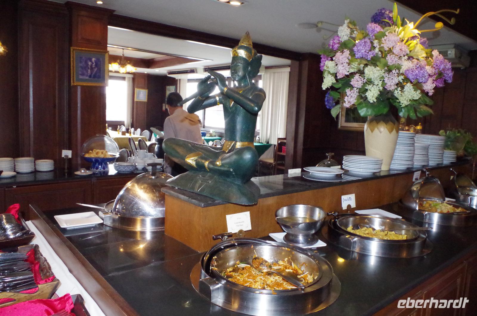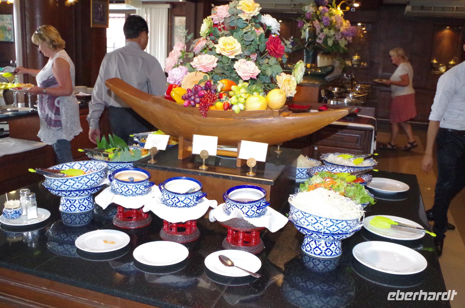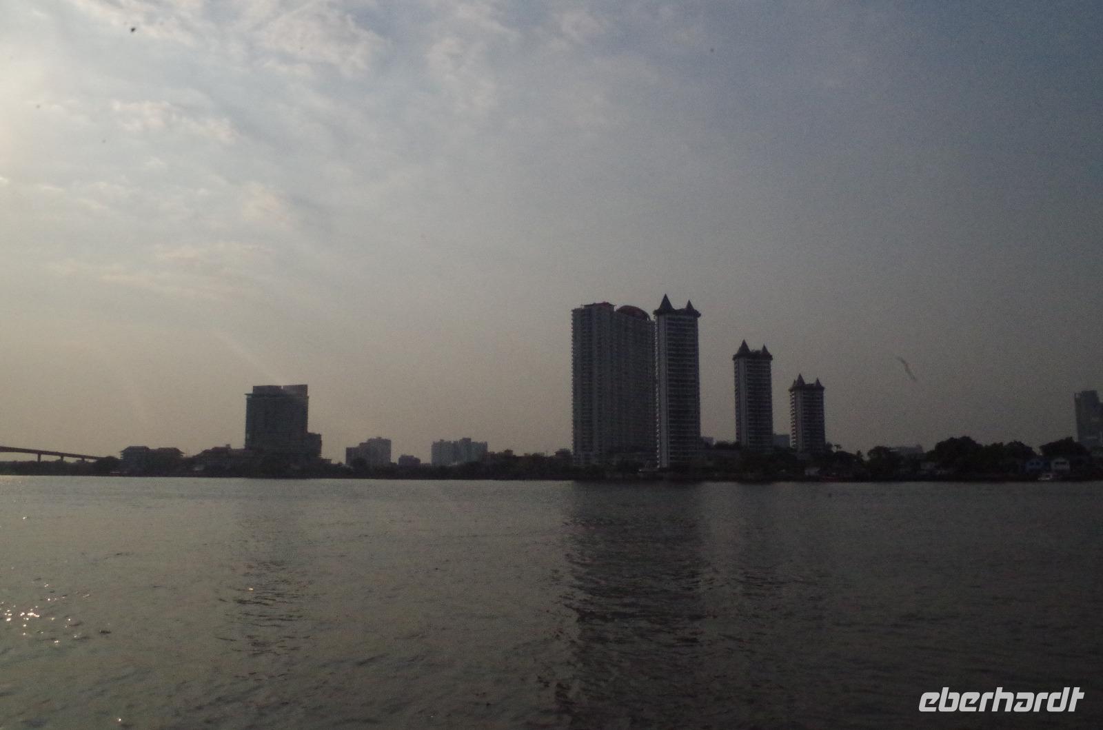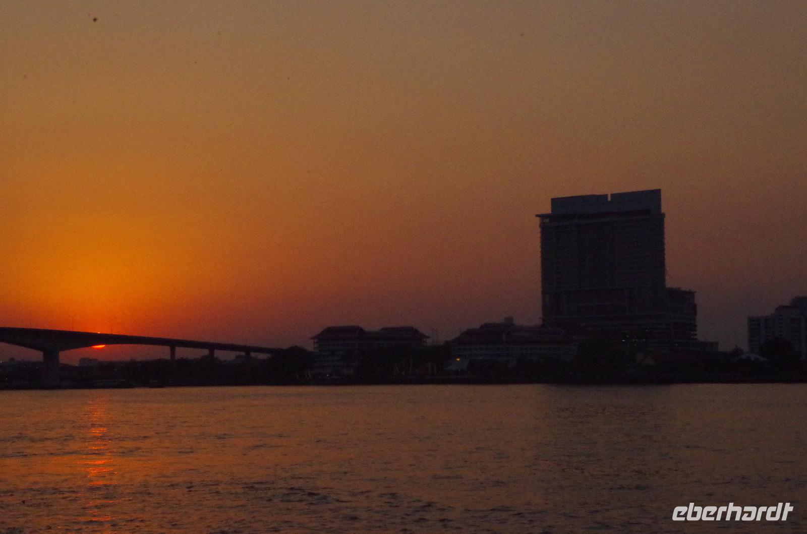 Heute ist ein Tag gemischter Gefühle! Voller freudiger Erwartung, ein weiteren schönen Tag in Bangkok zu verbringen, aber auch wehmütig, da unsere tolle Reise sich dem Ende neigt :-) :-( Wir stärken uns bei einem leckeren ausgiebigen Frühstücksbuffet im "Weite Welt Restaurant". Es wird abermals sehr warm werden, bis zu 35 Grad bei leicht bewölktem Himmel. Um 10.45 Uhr treffen sich alle Gästen und die Reisebegleitung an der Rezeption auf Deck 5. Wir gehen gemeinsame von Bord und holen im Hafenterminal unser Gepäck ab. Gestern haben wir bereits unseren Reisepass abgeholt. Besser jeder kontrolliert nochmals, ob wir einen Einreisestempel für Thailand und die Ausreisekarte erhalten haben. Am Eingang vom Hafenterminal wartet bereits unsere Reiseleiterin Sini auf uns. Wir freuen uns, von der gleichen Reiseleiterin vom Vorprogramm auch am heutigen Tag begleitet zu werden. Im Bus gibt es für einen unserer Gäste noch ein Geburtstagsständchen und schon starten wir die über 100 Kilometer bis zum Zentrum von Bangkok. Während der Fahrt erzählt uns Sini, dass Thailand der der größte Reis-Exporteur der Welt ist. Die Landwirtschaft ist der wichtigste Industriezweig, neben Reis wird besonders Palmöl, Ananas, Kautschuk und tiefgefrorene Garnelen exportiert. Des Weiteren werden auch elektronische Geräte und Schmuck ausgeführt. Aufgrund des dichten Verkehrs erreichen wir rund 30 Minuten später als erwartet erst um 13.30 Uhr das Restaurant "Wanfah" direkt am Chao Phraya-Fluss. Das Buffetessen ist anfangs noch ein wenig chaotisch, am Ende haben wir aber genug Zeit, in Ruhe zu essen und verschiedene typisch thailändische Gerichte zu probieren. Über eine Stunde später haben wir eine kurze Transferfahrt mit dem Boot von rund fünfzehn Minuten bis zum Pier 1 River City. Hier steigen wir wieder in den Bus und unternehmen noch eine Stadtrundfahrt durch das verrückte Bangkok. Um 16.30 Uhr besuchen wir den Nachtmarkt "Asiatique - The Riverfront" direkt am Fluss Chao Phraya. Der Markt verbindet Einkaufen, Kultur, kulinarische Köstlichkeiten und Veranstaltungen miteinander. Wir entdecken die Vielfältigkeit des Marktes individuell, vielleicht kauft der ein oder andere Reisegast von den letzten Bath noch ein paar Andenken an geliebte Daheimgebliebene. Um 18.45 Uhr treffen wir uns wieder und fahren gemeinsam zum internationalen Flughafen, welchen wir rund 45 Minuten später erreichen. Wir verabschieden uns freundlich von Sini und wünschen ihr für die Zukunft alles Gute. Dann laufen wir zum Terminal 4. Hier werden eventuell nochmals die Kleidung gewechselt, immerhin haben wir jetzt wundervolle 35 Grad, während uns in Deutschland Minusgrade erwarten *brrrrrrr* Die Gepäckabgabe bei Lufthansa am Schalter G verläuft problemlos, unser Gepäck wird automatisch bis zum Endzielflughafen durchgecheckt. Bei der Pass- und Sicherheitskontrolle müssen wir ein wenig Wartezeit einplanen, aber wir haben auch genügend Zeit. Angekommen am Gate D06 überbrücken wir die Wartezeit von zwei Stunden mit dem Kauf von Snacks und Getränken oder auch letzter Andenken für unsere geliebten Daheimgebliebenen. Sowohl Boarding als auch unser Abflug um 23.50 Uhr erfolgt pünktlich. Wir fliegen mit Lufthansa LH773 von Bangkok nach Frankfurt Am Main. Wir freuen uns auf eine gute Mahlzeit, die Zeit zum Abendessen ist ja bereits längst überschritten :-) Den Großteil des rund 12 Stunden langen Fluges versuchen wir zu schlafen, langsam freuen wir uns auch auf unsere Lieben und unser Zuhause.