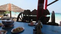 Die erste Nacht auf dem Schiff liegt hinter uns und es war fantastisch. Frisch und munter treffen wir unseren Puttipong vor dem Schiff. Von hier aus geht es nach Pattaya und hier wartet bereits ein Schnellboot auf uns, welches uns in rund 30 Minuten auf die Insel Koh Larn bringt. Hier beziehen wir unsere Sonnenliegen und lassen unsere Seelen baumeln. Zwischendurch tauchen wir immer mal wieder in das Badewannen warmes Wasser ein. Früher bin ich überall hineingesprungen, aber mittlerweile kann das Wasser schon gern etwas wärmer sein. Das Baden hungrig macht, weiß wohl jeder und so ist der Tisch reichlich gedeckt. Die Suppe wird durch eine kleine glühende Holzkohle warm gehalten und auch sonst ist der Tisch eher exotisch gedeckt. Es gibt Muscheln, Garnelen, gebackenes und süß saures Gemüse, Reis und einem in ganzen frittierten Red Snapper. Nach langsamem Herantasten darf ich sagen, schmeckt alles fantastisch. Abgerundet wird das ganze durch den schönen Platz. Wir sitzen im Schatten, direkt am Strand und unsere Füße können sich im warmen Sand vergraben. Dazu haben wir den Blick auf das weite türkisfarbene Meer. Hach, was will man eigentlich mehr. Nun haben wir noch knapp drei Stunden Zeit, ehe es mit dem Schnellboot nach Pattaya zurückgeht. Daher heißt es jetzt die Seele noch einmal ausgiebig baumeln lassen.