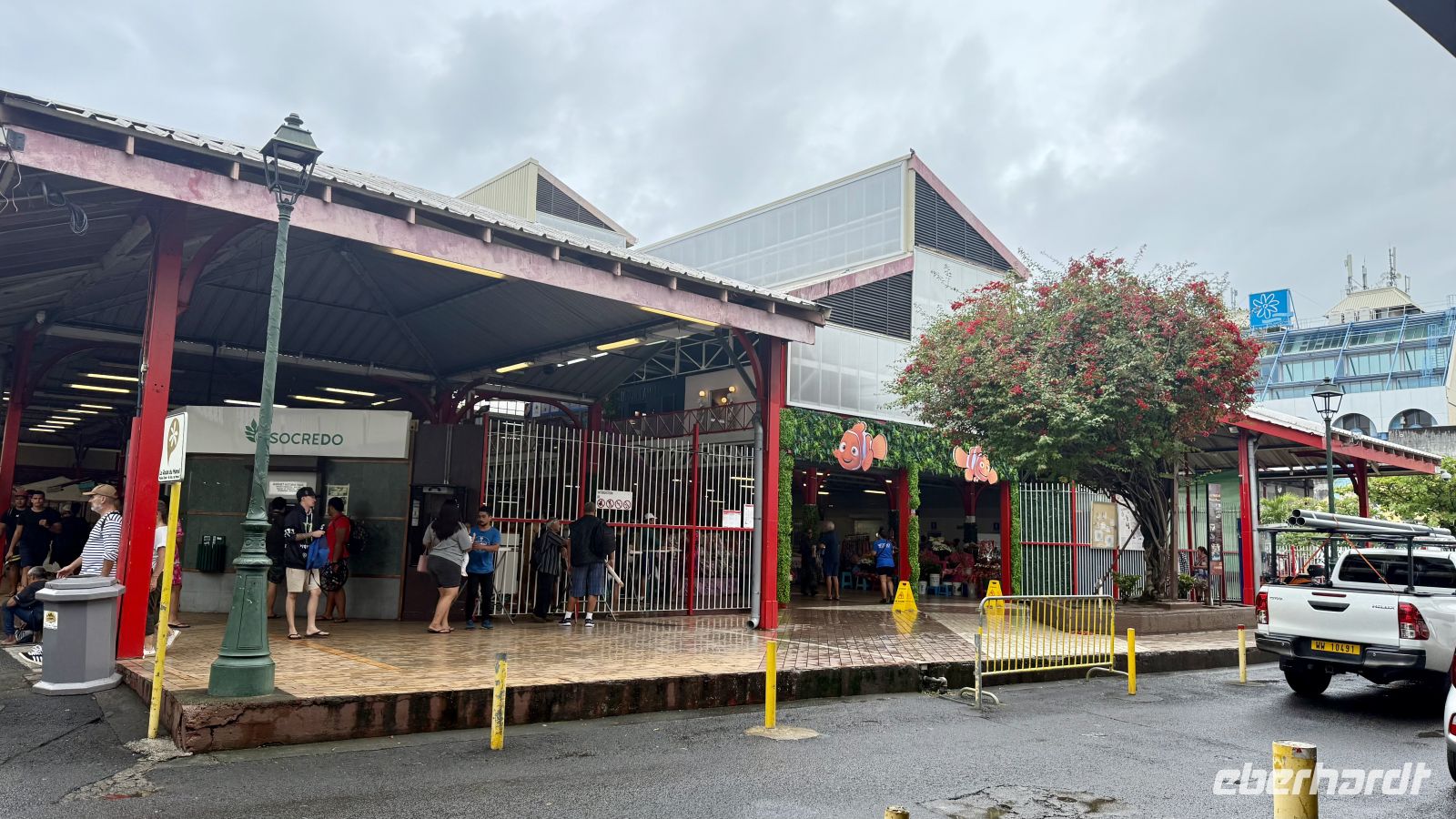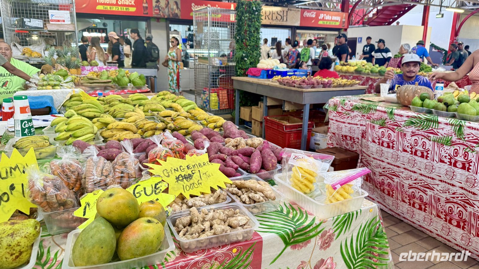 Unser erster Stopp war der zentrale Markt von Papeete – Marché de Papeete –, ein farbenfroher Treffpunkt voller lokaler Produkte, Blumen, Früchte und Kunsthandwerk. Dort probierten wir Mango mit Pflaumensalz, eine beliebte tahitianische Snack-Kombination, bei der die Süße der reifen Mango mit der leicht salzig-säuerlichen Note des Pflaumensalzes einen spannenden Geschmackskontrast bildet.