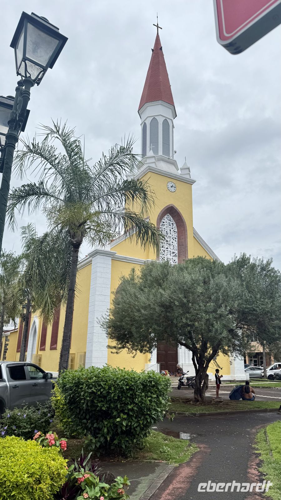 Im Anschluss sahen wir uns die Kathedrale Notre Dame von außen an. Die Kirche aus dem 19. Jahrhundert ist eines der ältesten religiösen Gebäude Tahitis und ein schönes Beispiel für die frühkoloniale Architektur in Französisch-Polynesien.