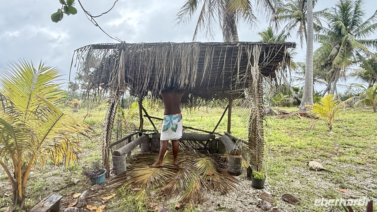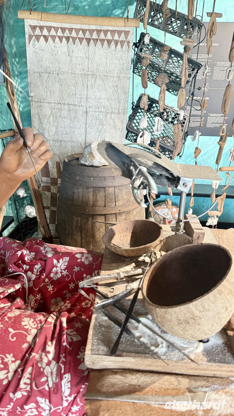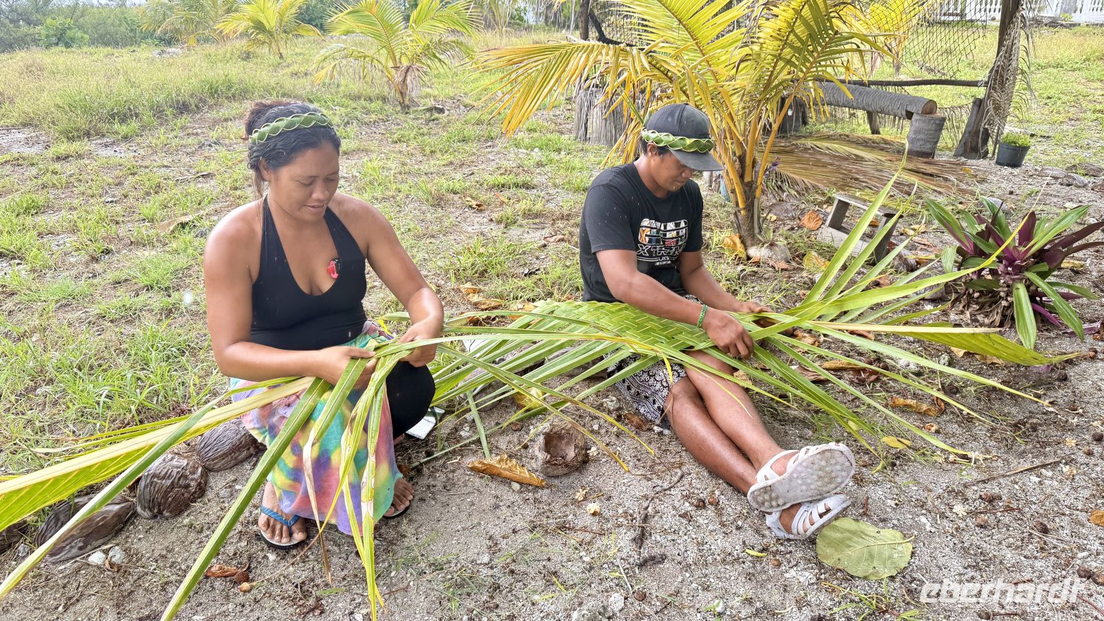 Der wilde Hibiskus spielte ebenfalls eine wichtige Rolle: Sein Bast – der innere Teil der Rinde – ist extrem reißfest. Daraus werden Seile, Schnüre, Fischfallen und früher sogar Teile traditioneller Boote hergestellt. Die Palmenwedel, die wir ebenfalls sahen, dienen nicht nur als Dachmaterial, sondern werden zu Röcken, Matten und Körben geflochten. Vieles davon ist noch heute Bestandteil polynesischen Kunsthandwerks.