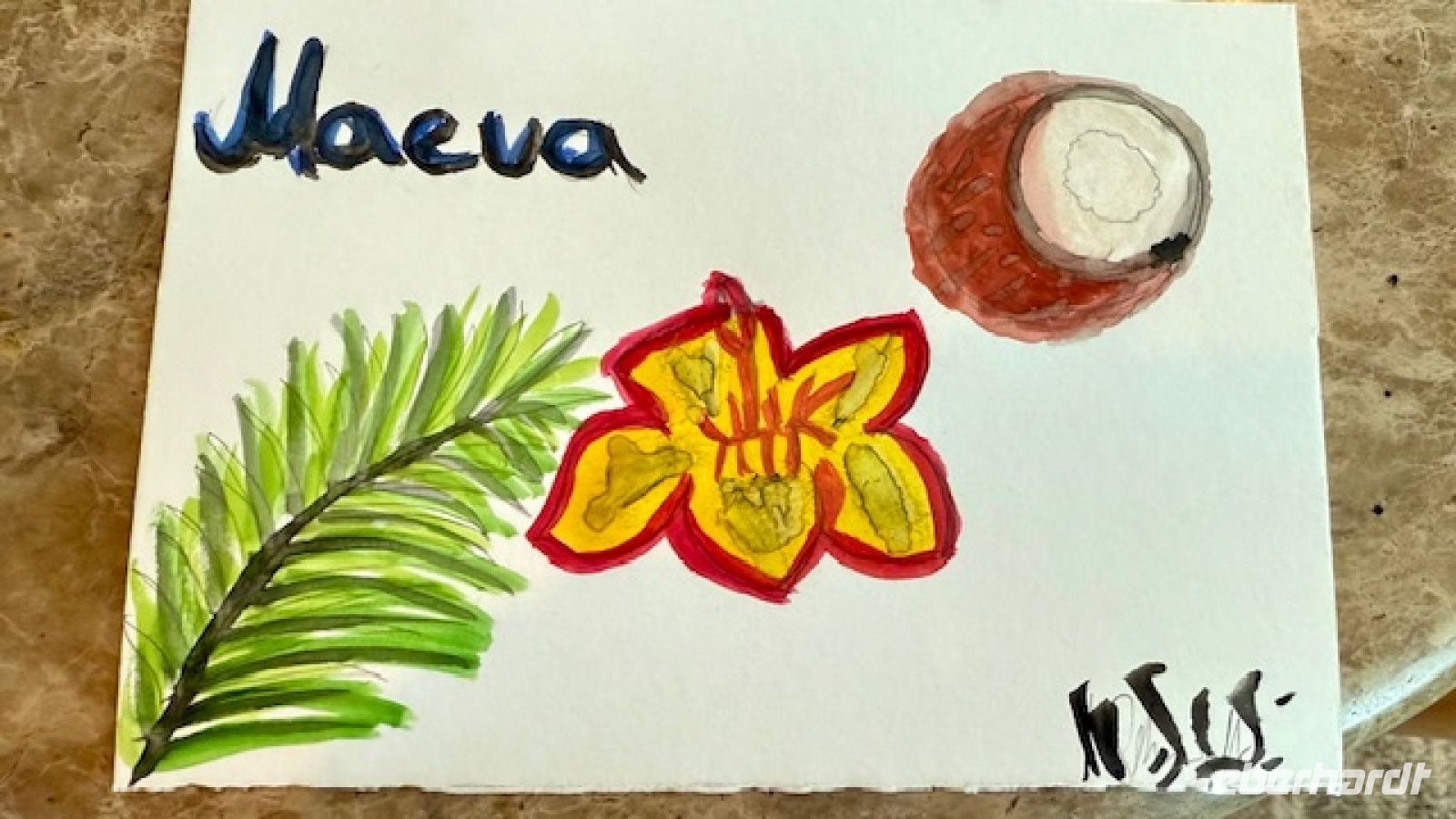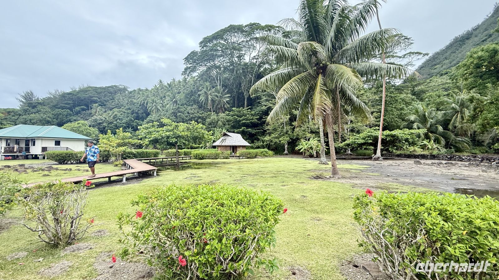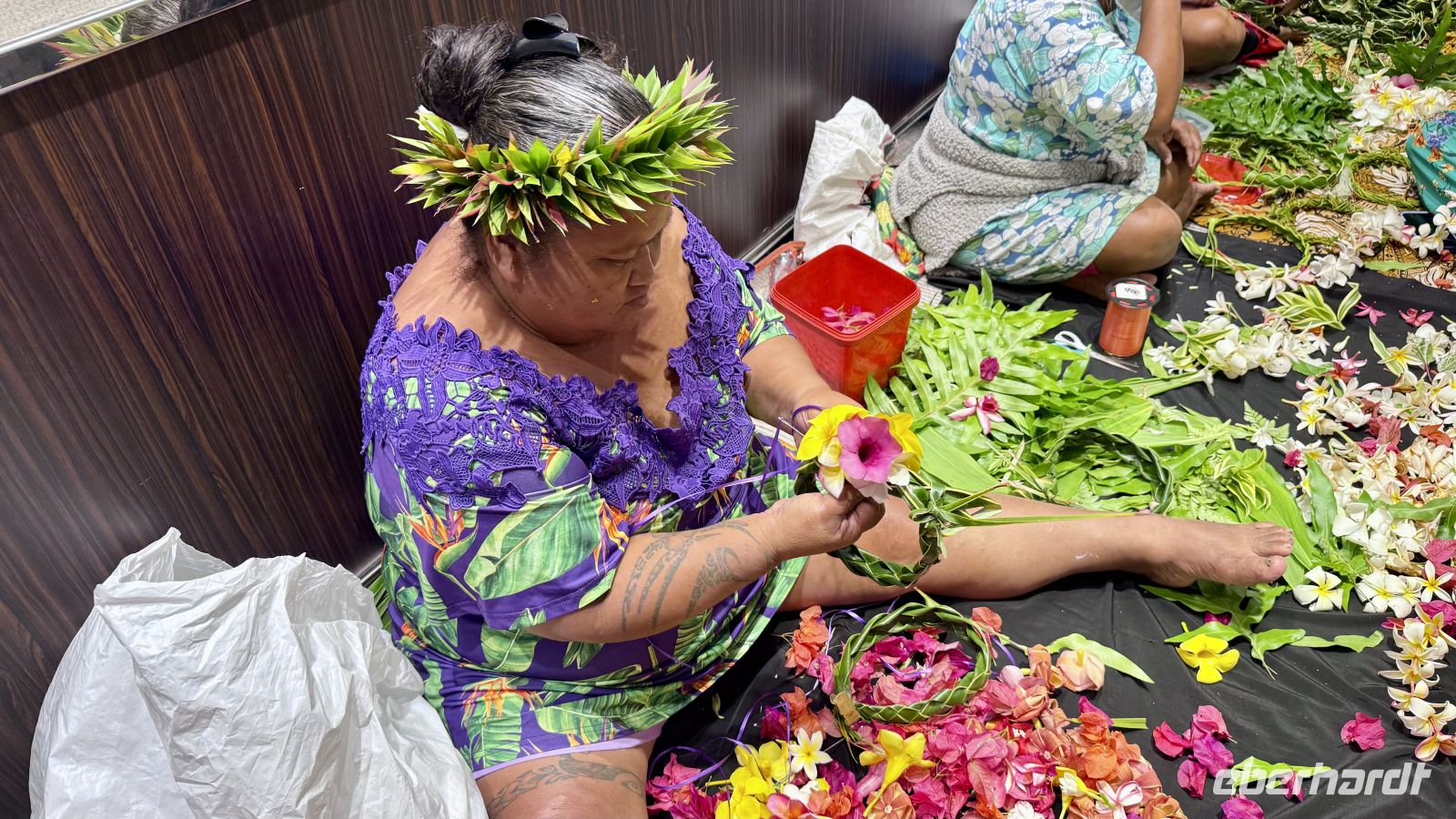 Der wilde Hibiskus spielte ebenfalls eine wichtige Rolle: Sein Bast – der innere Teil der Rinde – ist extrem reißfest. Daraus werden Seile, Schnüre, Fischfallen und früher sogar Teile traditioneller Boote hergestellt. Die Palmenwedel, die wir ebenfalls sahen, dienen nicht nur als Dachmaterial, sondern werden zu Röcken, Matten und Körben geflochten. Vieles davon ist noch heute Bestandteil polynesischen Kunsthandwerks.
