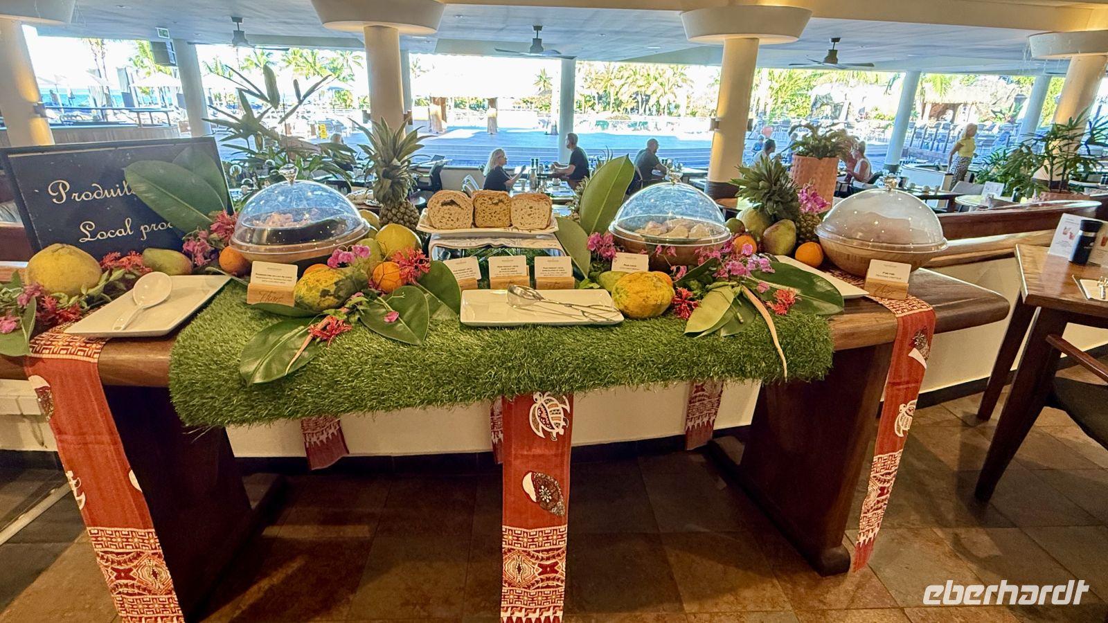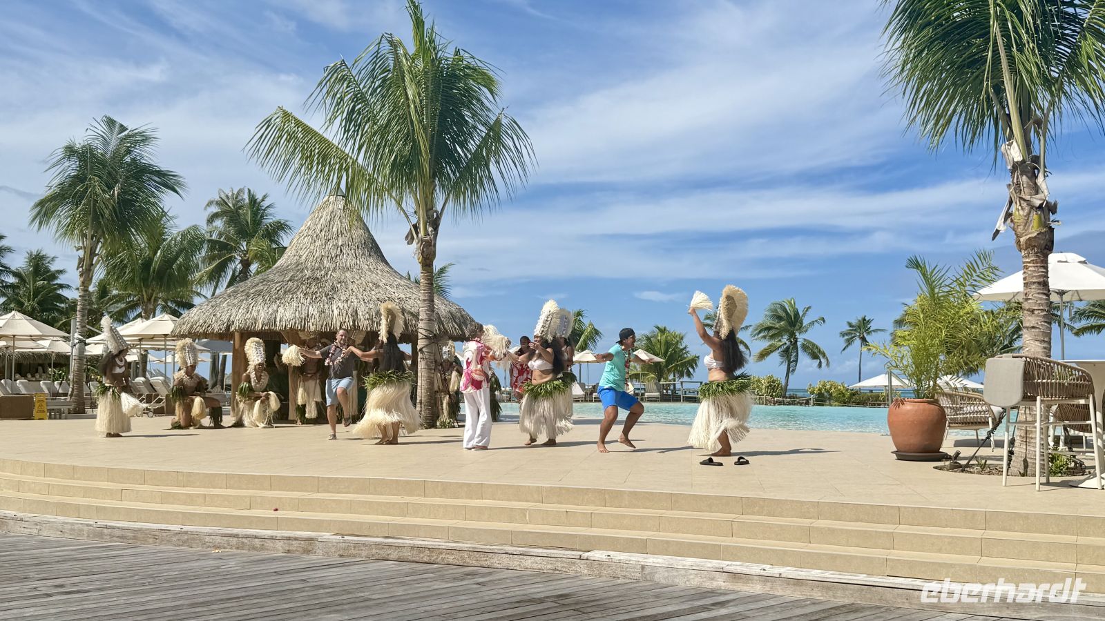 Der heutige Tag begann ganz entspannt, und alle konnten einmal etwas länger schlafen. Im Restaurant erwartete uns ein polynesisches Brunch, das mit traditionellen Spezialitäten wie frischem Fisch, tropischen Früchten und Kokosgerichten begeisterte. Sogar eine polynesische Tanz- und Musikshow sorgte für eine wunderbare Atmosphäre.