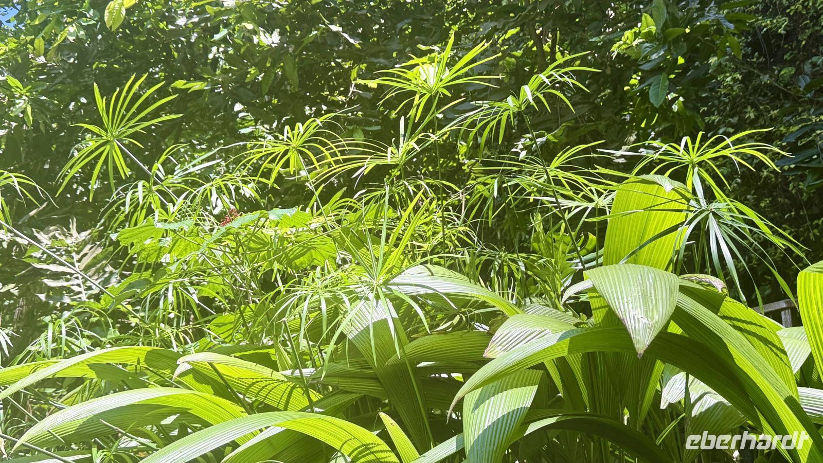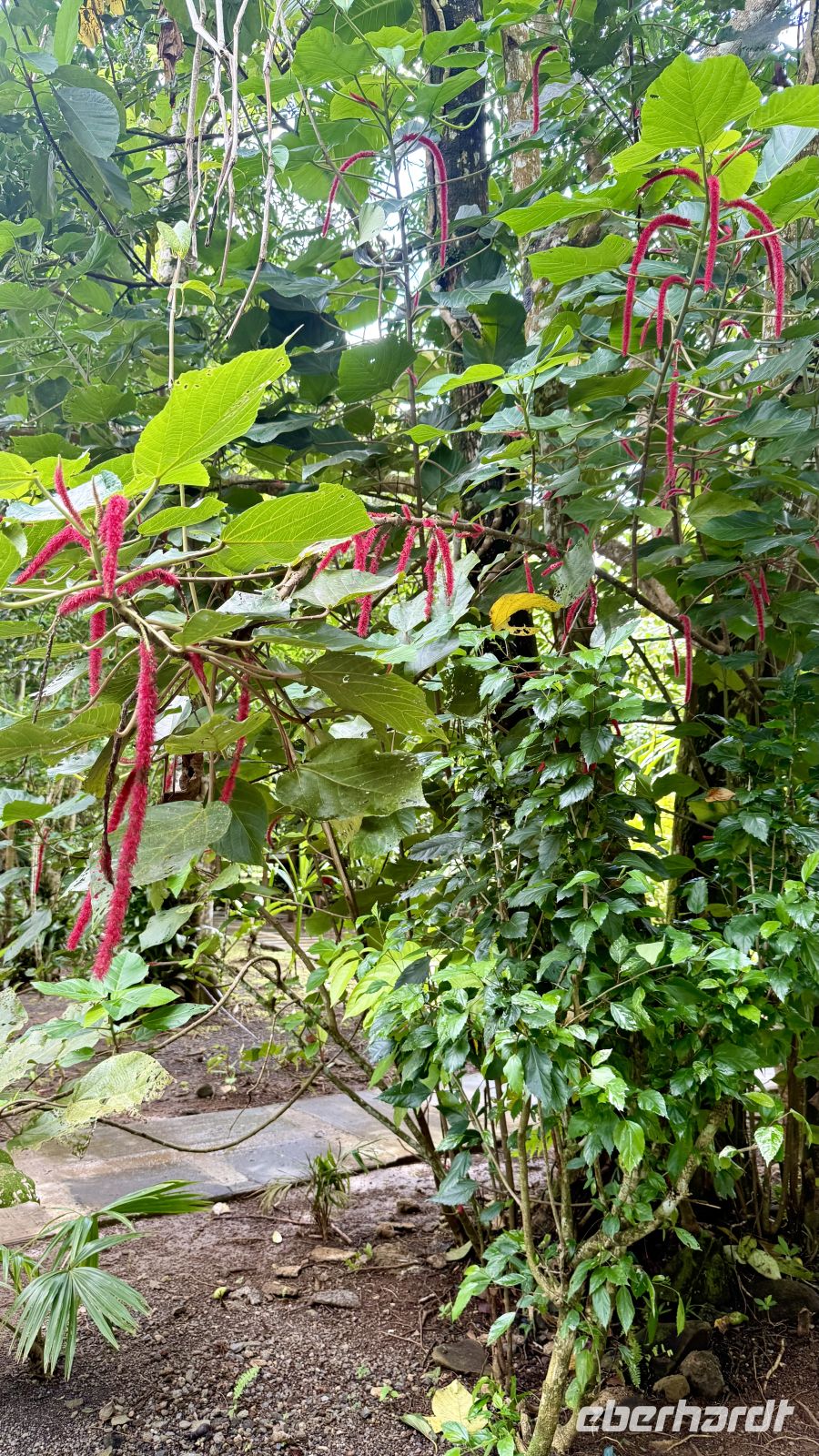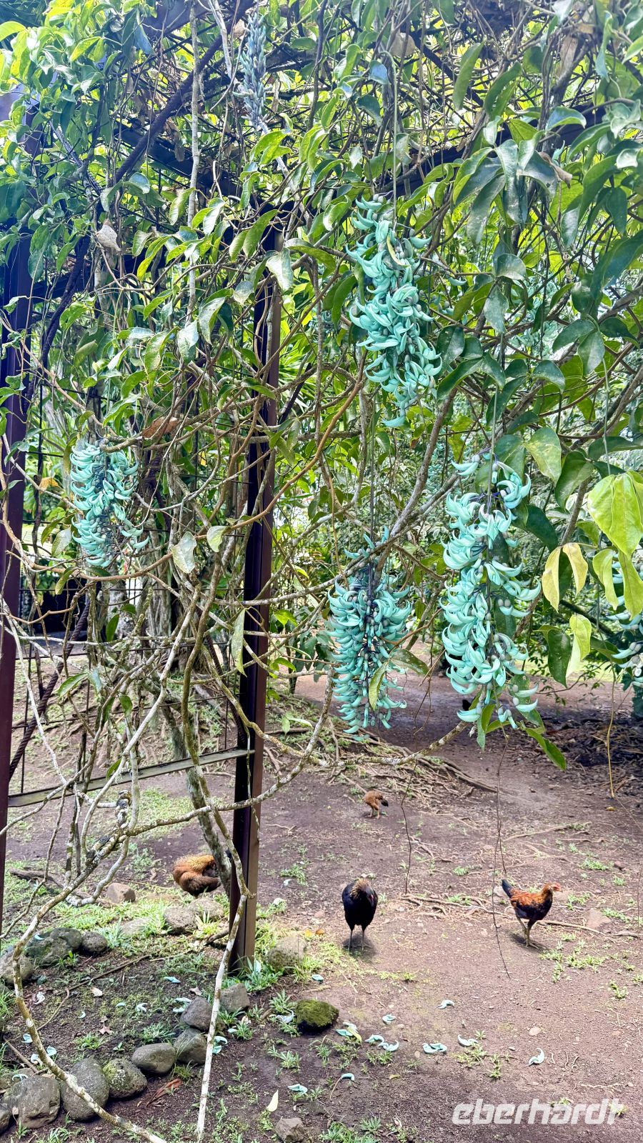 In der Umgebung sahen wir eine Vielzahl tropischer Pflanzen: den sogenannten Falschen Mango, der wegen seiner giftigen Früchte auch „Selbstmordbaum“ genannt wird, die farbenprächtige Porzellanrose, Papyrus, Gardenien, sowie im botanischen Garten Avocadobäume, Litschibäume, Lotusblüten, Wasserlilien, Gummibäume, die spektakuläre Jade-Liane und farbenprächtige Bougainvilleen. Die Vielfalt und Fülle der Pflanzenwelt verdeutlichte eindrucksvoll, wie fruchtbar Tahiti ist.