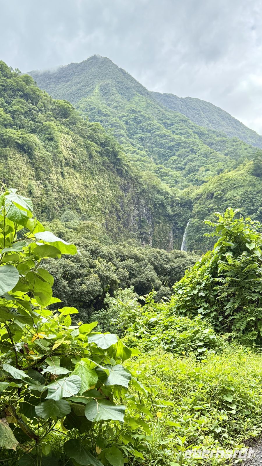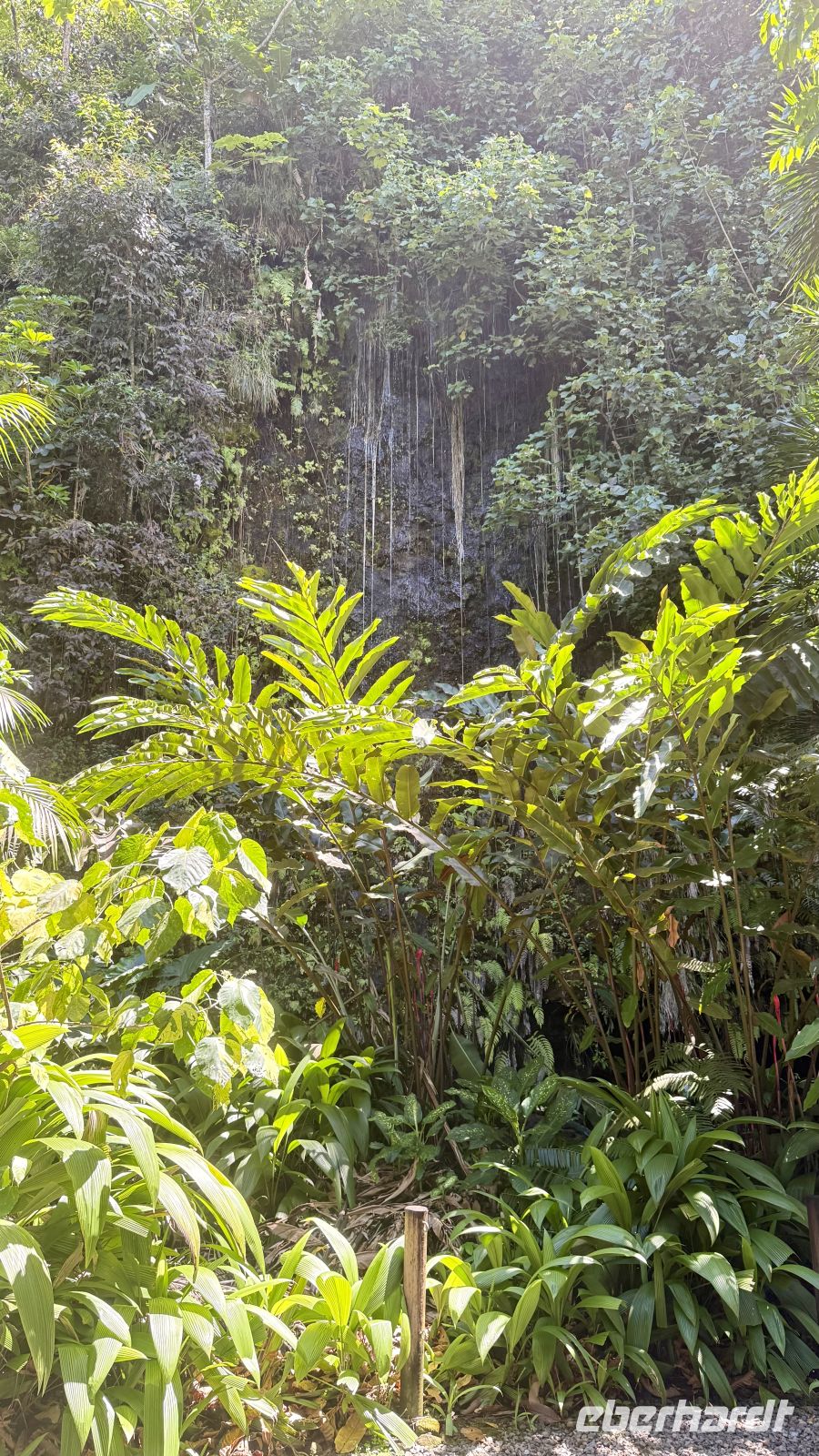 Im Anschluss fuhren wir weiter zum Wasserfall im Fa‘aruma‘i Valley, einer grünen, dicht bewachsenen Schlucht im Inneren der Insel. Die Wasserfälle hier gehören zu den schönsten Tahitis: hohe, schmale Kaskaden, die sich malerisch über die Felsen ergießen und eine frische, feuchte Luft verbreiten. Der kurze Spaziergang dorthin führte durch dichten Bambus und tropische Vegetation – eine wunderbare kleine Wanderung.