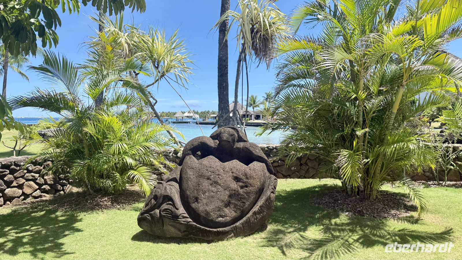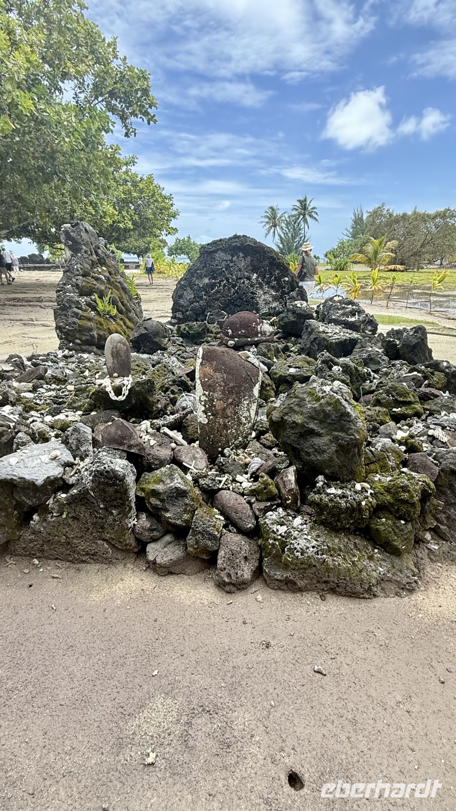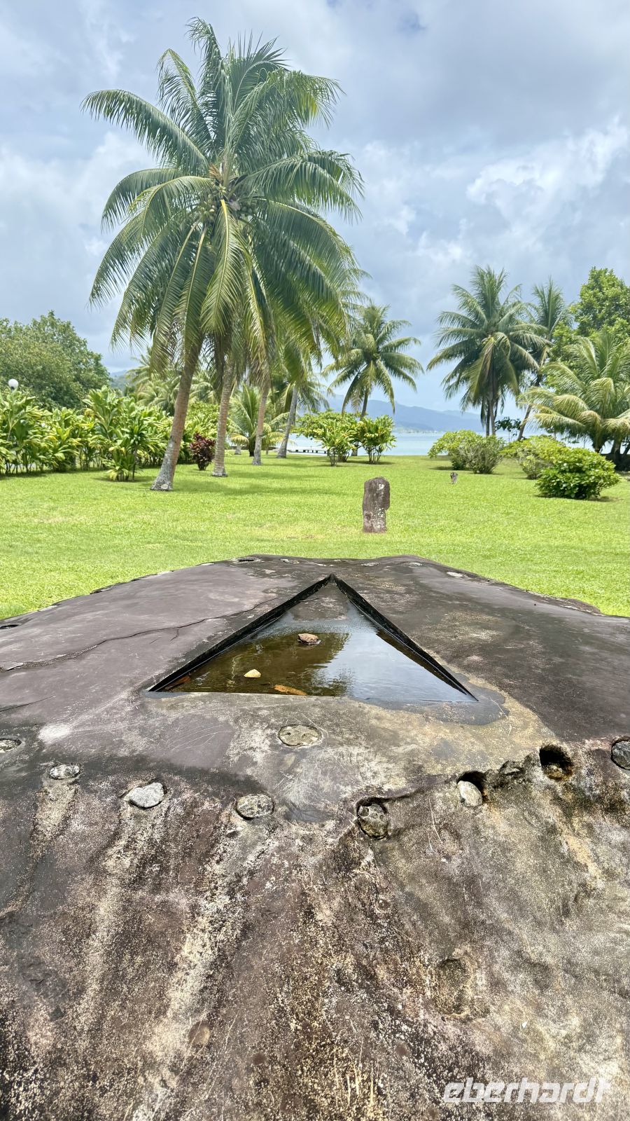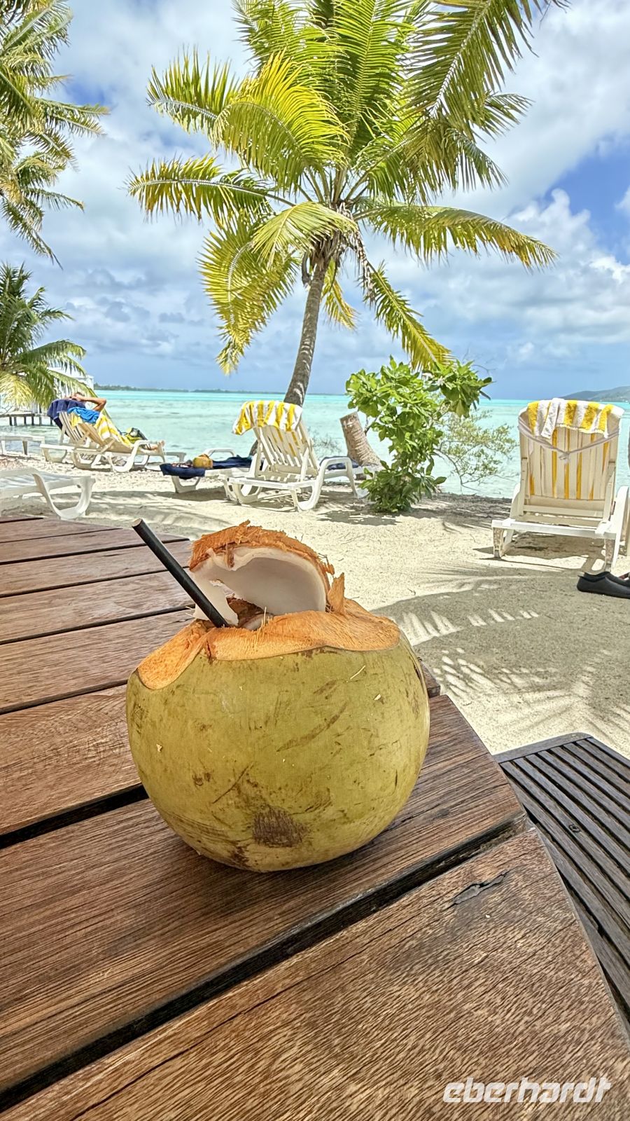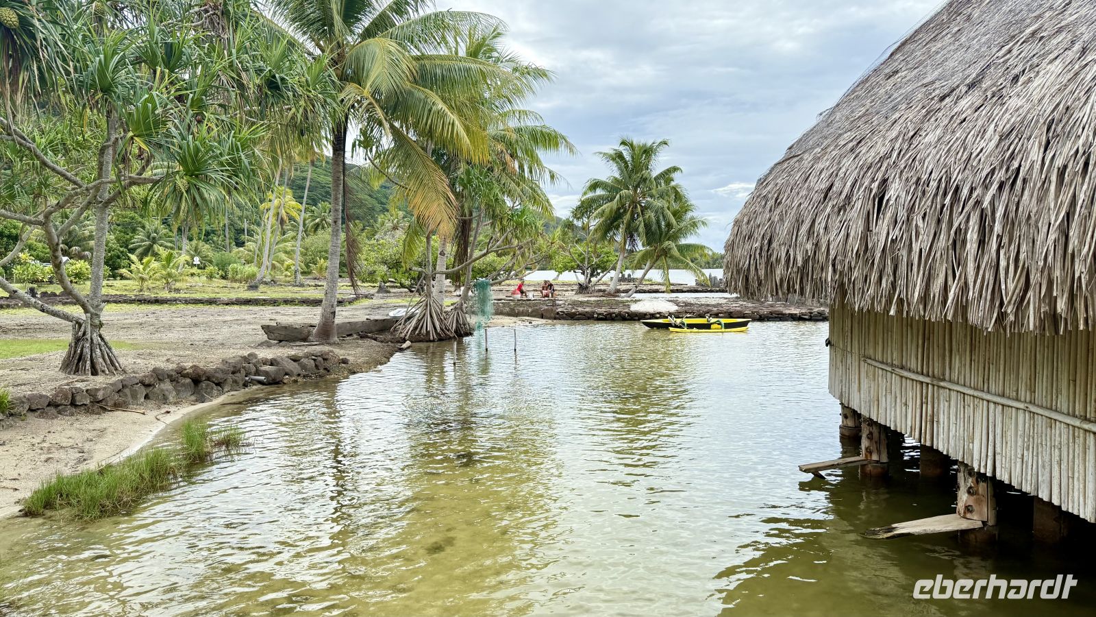 Ein besonderes Erlebnis bot der Besuch des heiligen Blauaugen-Aals, der in einem kleinen Wasserlauf in Maeva lebt. Die großen Aale, deren leuchtend blaue Augen im Sonnenlicht fast magisch wirken, werden von den Einheimischen regelmäßig mit Kokosnussstücken gefüttert und gelten als Glücksbringer.