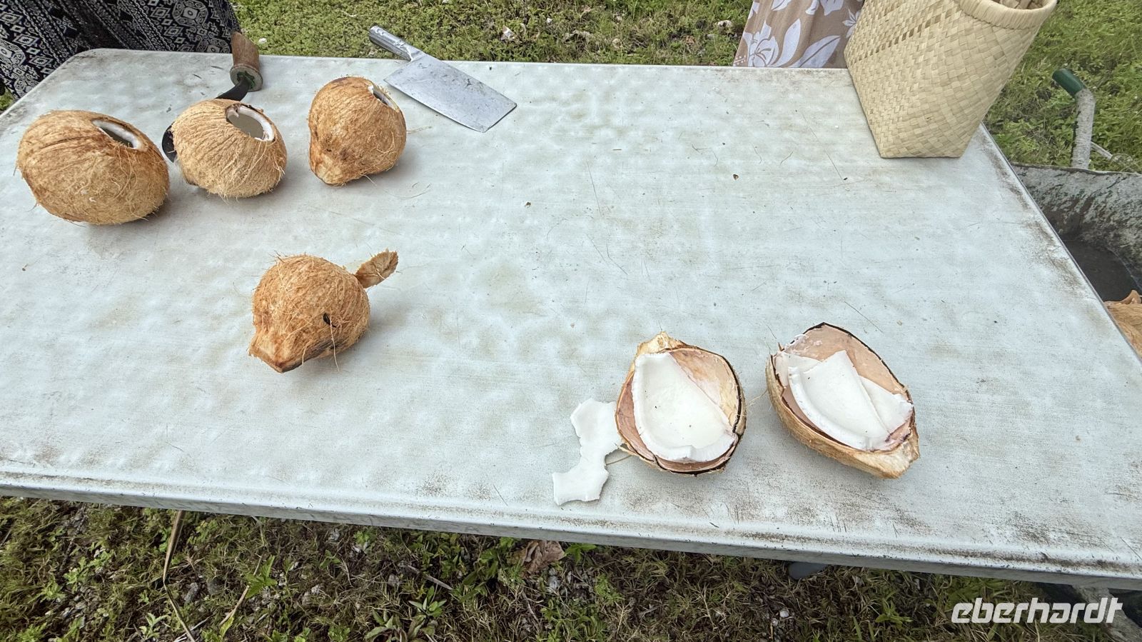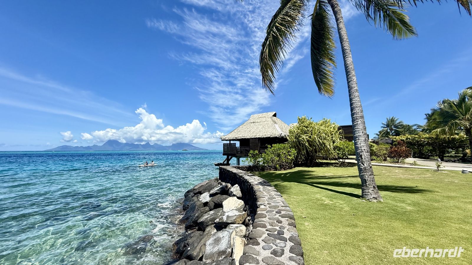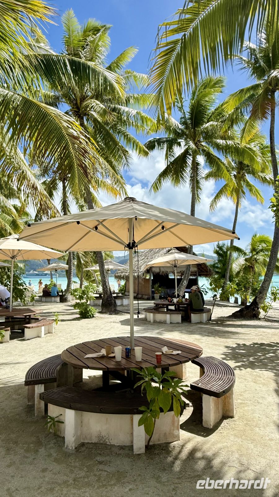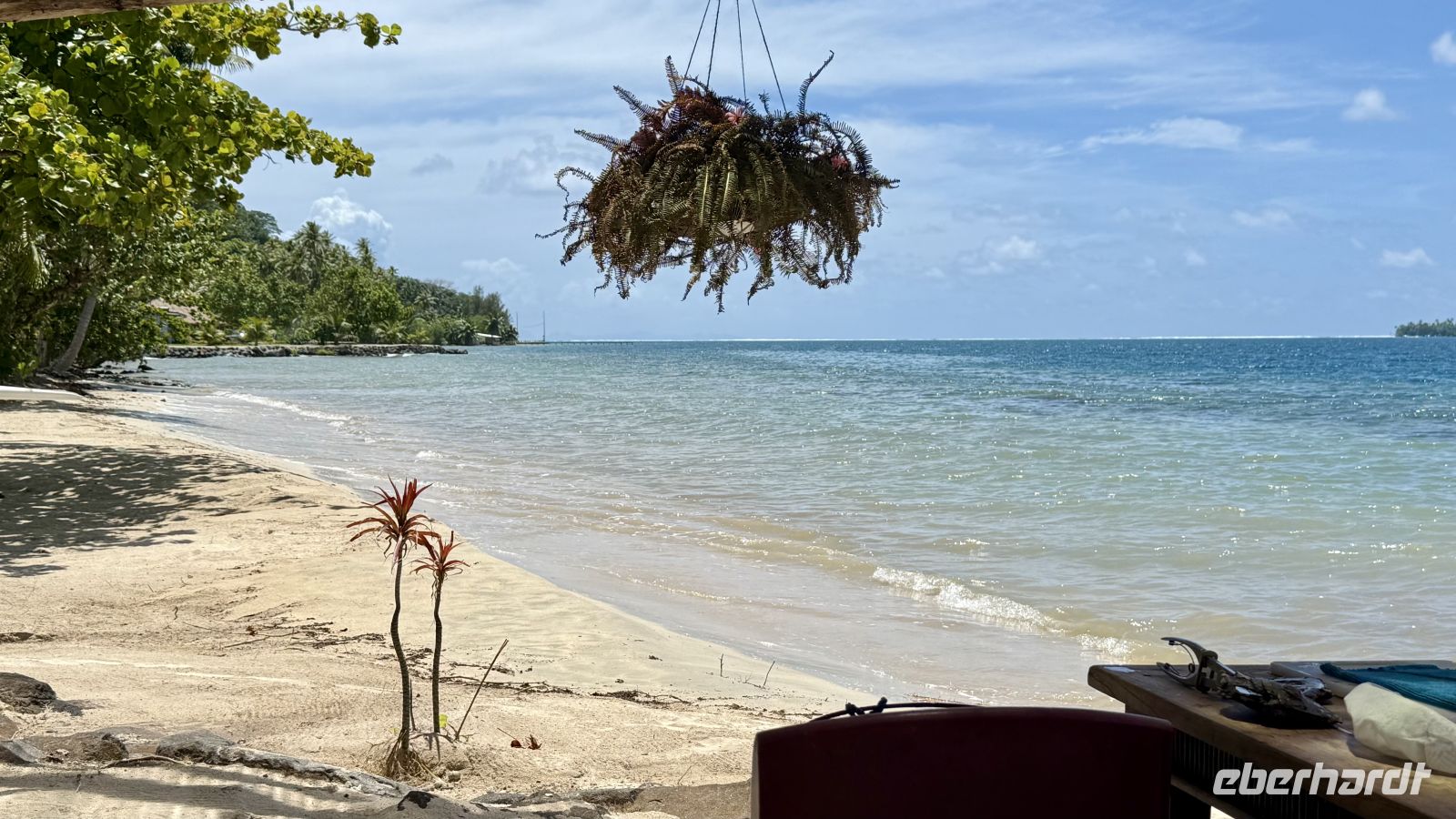 Ein besonderes Erlebnis bot der Besuch des heiligen Blauaugen-Aals, der in einem kleinen Wasserlauf in Maeva lebt. Die großen Aale, deren leuchtend blaue Augen im Sonnenlicht fast magisch wirken, werden von den Einheimischen regelmäßig mit Kokosnussstücken gefüttert und gelten als Glücksbringer.