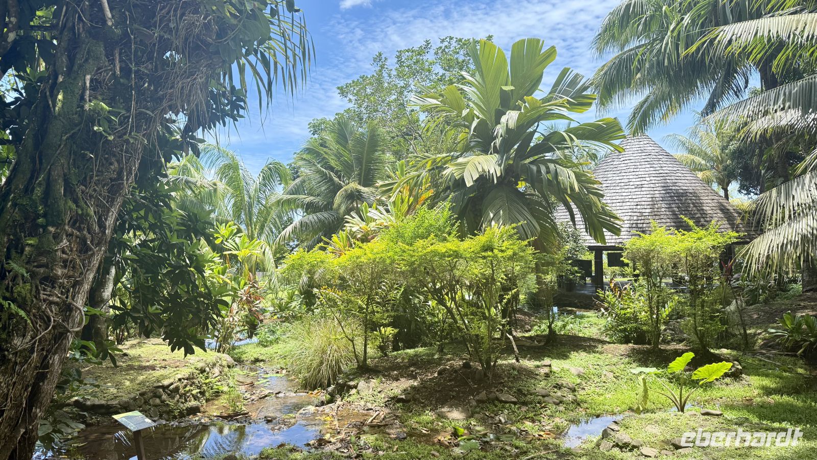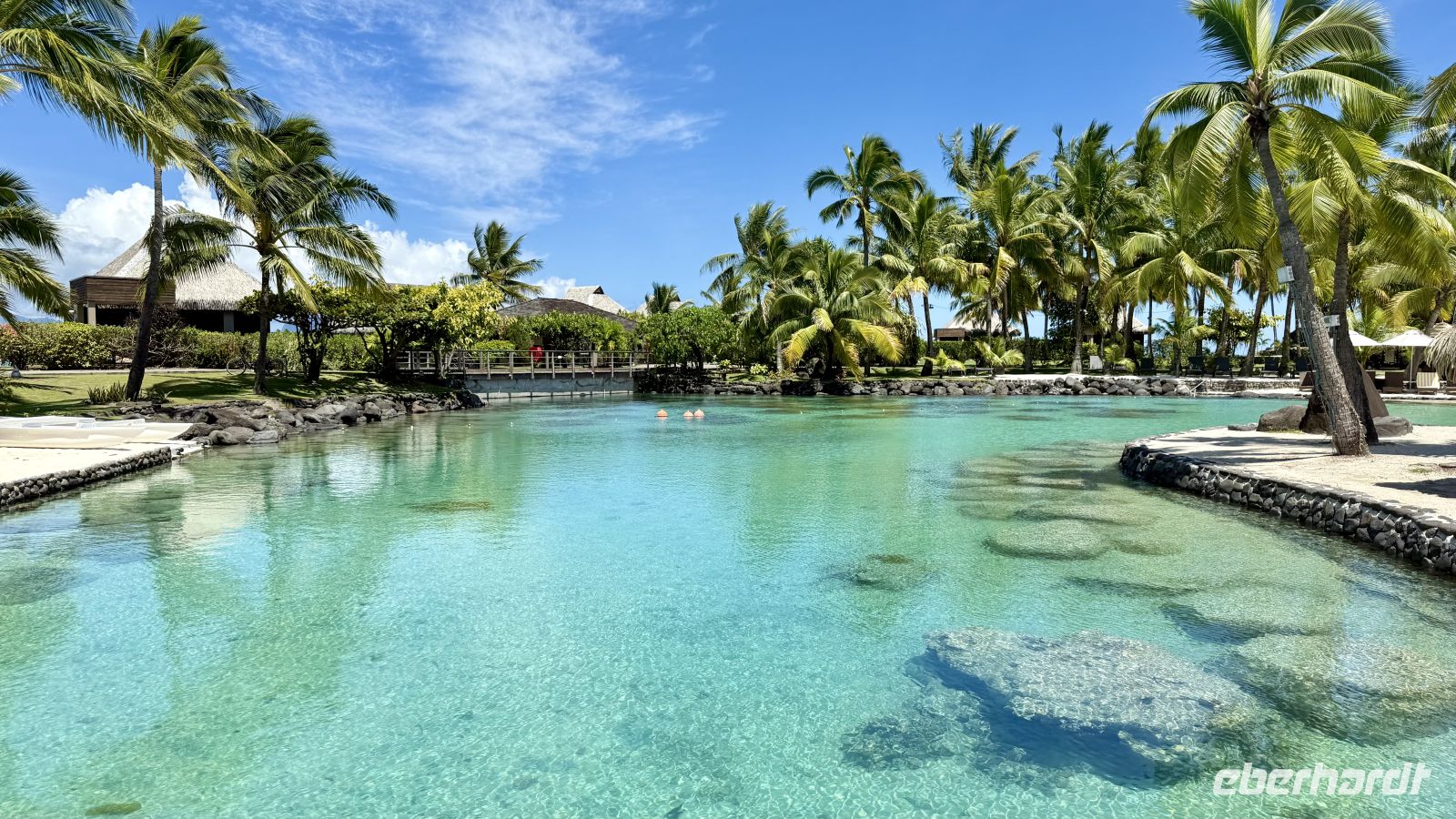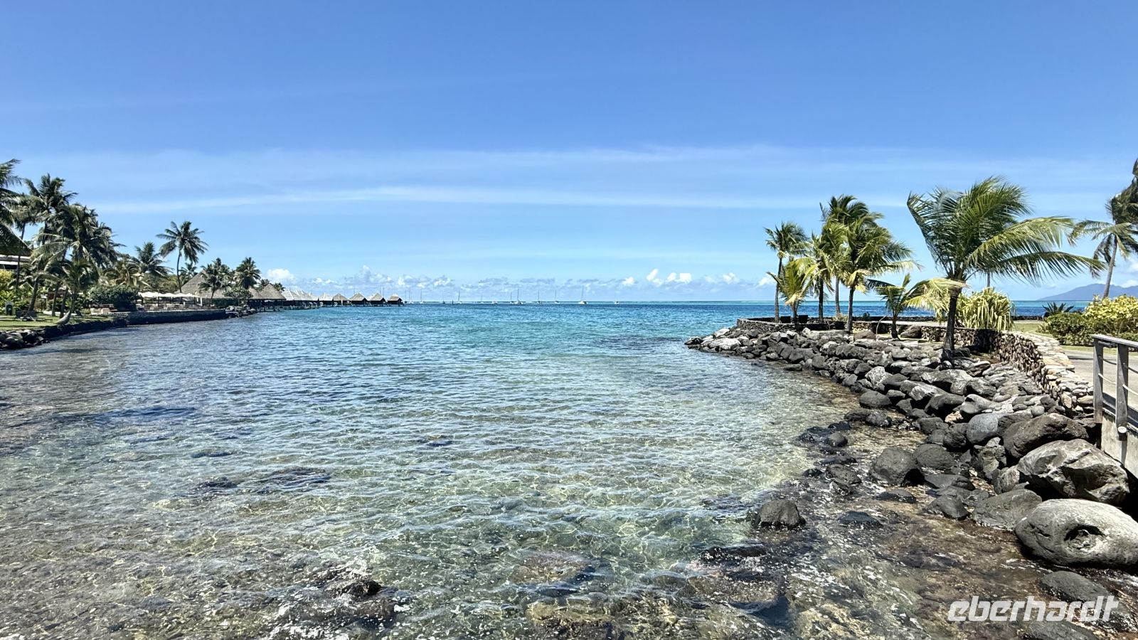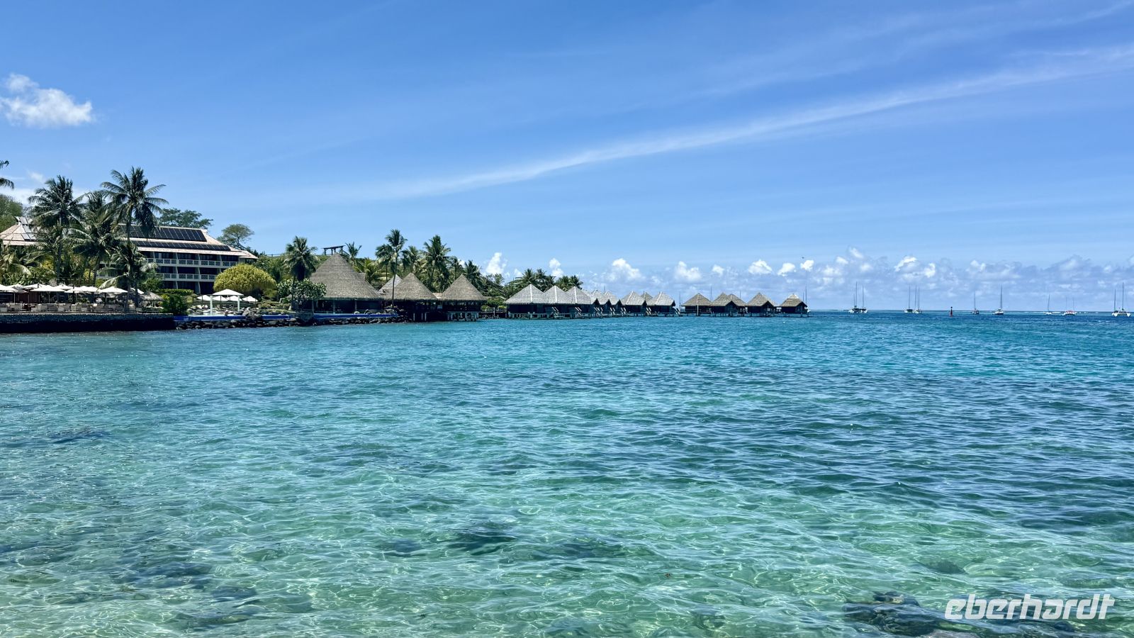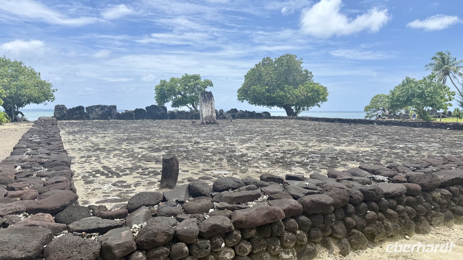 Ein besonderes Erlebnis bot der Besuch des heiligen Blauaugen-Aals, der in einem kleinen Wasserlauf in Maeva lebt. Die großen Aale, deren leuchtend blaue Augen im Sonnenlicht fast magisch wirken, werden von den Einheimischen regelmäßig mit Kokosnussstücken gefüttert und gelten als Glücksbringer.