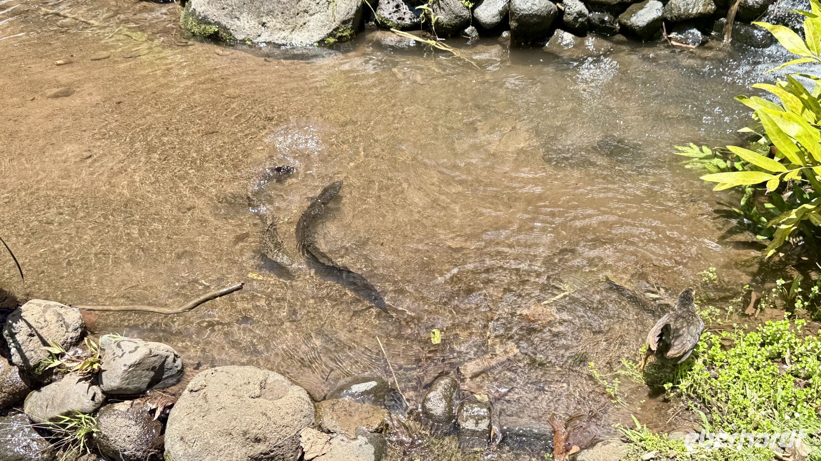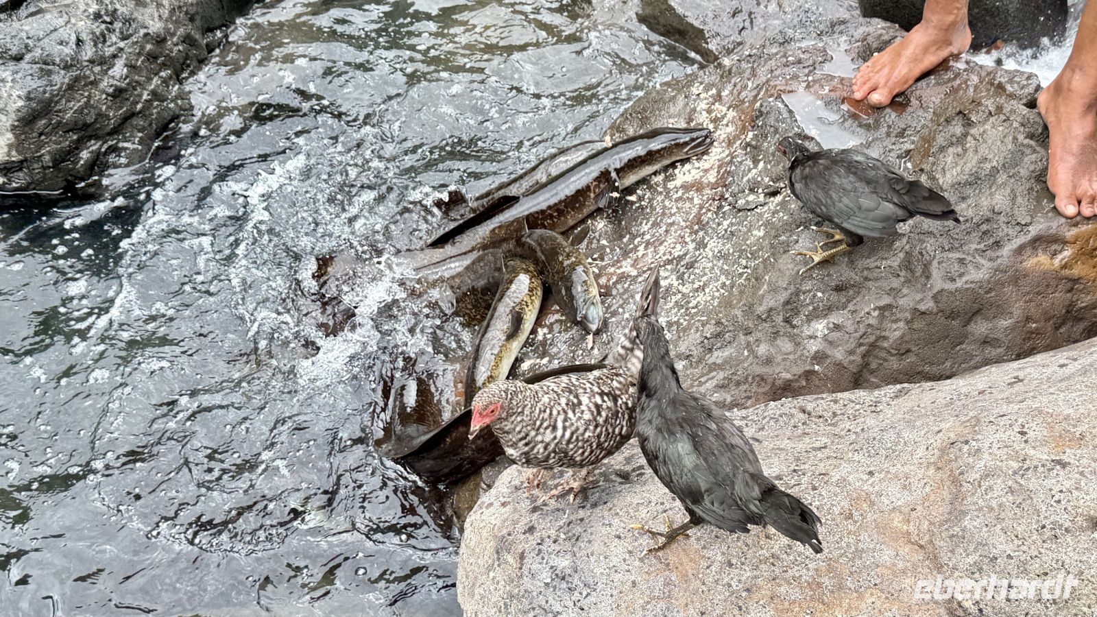 Unser Guide fütterte unterwegs sogar Aale, die in den Flüssen der Täler leben und als spirituelle Wesen gelten. Viele Polynesier sehen sie als Beschützer bestimmter Orte.
