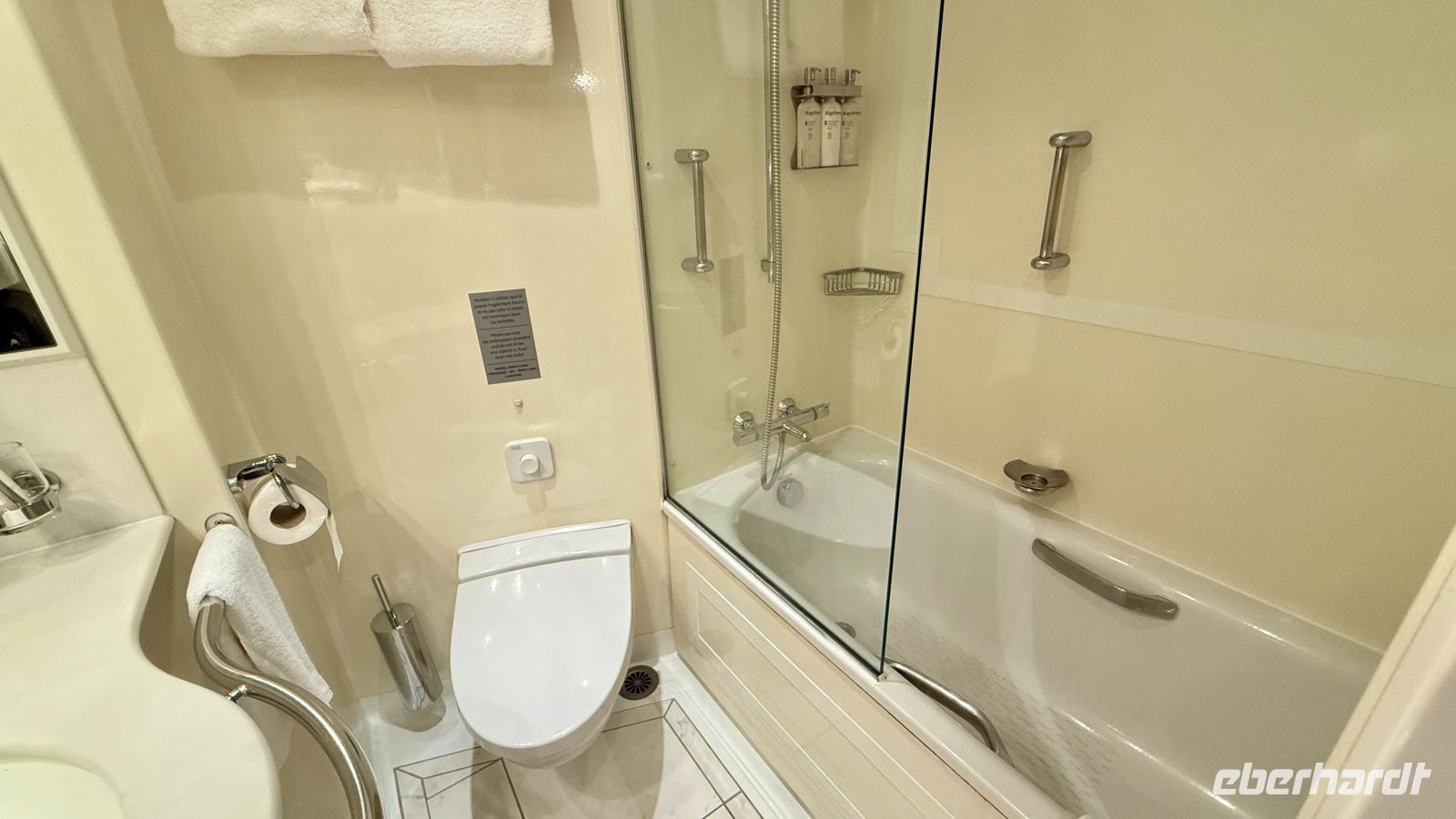 Anschließend setzten wir unseren Rundgang fort. An Bord gibt es vieles zu entdecken: drei Restaurants, ein Fitnessstudio, drei Bars, ein Fotostudio, eine Poolarea, ein Spa, eine Boutique, einen Bordarzt, Brettspiele und Puzzles sowie zahlreiche Shows, Vorträge und Aktivitäten, die den Aufenthalt abwechslungsreich gestalten.