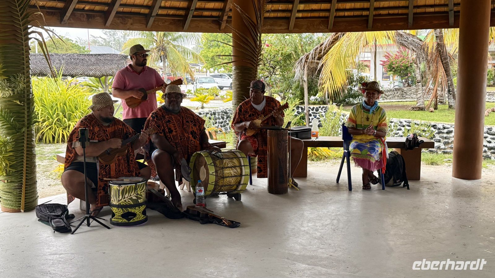 Leider setzte während der Tour Regen ein – doch die Einheimischen freuten sich sichtlich darüber, denn Regenwasser ist auf den Atollen lebenswichtig für Pflanzen, Landwirtschaft und Wasserversorgung. Einige von uns nutzten die Zeit nach der Tour, um Souvenirs zu kaufen oder den kleinen Supermarkt zu besuchen.