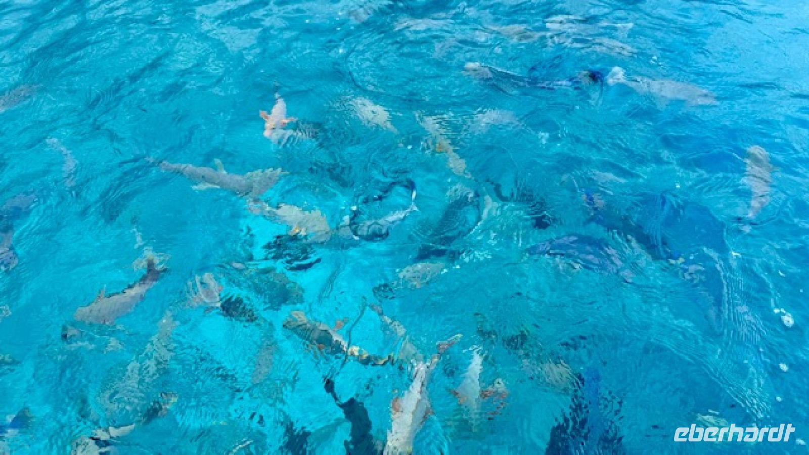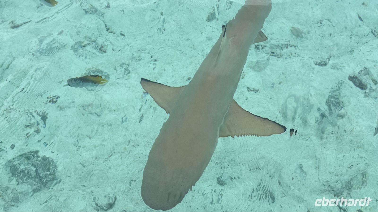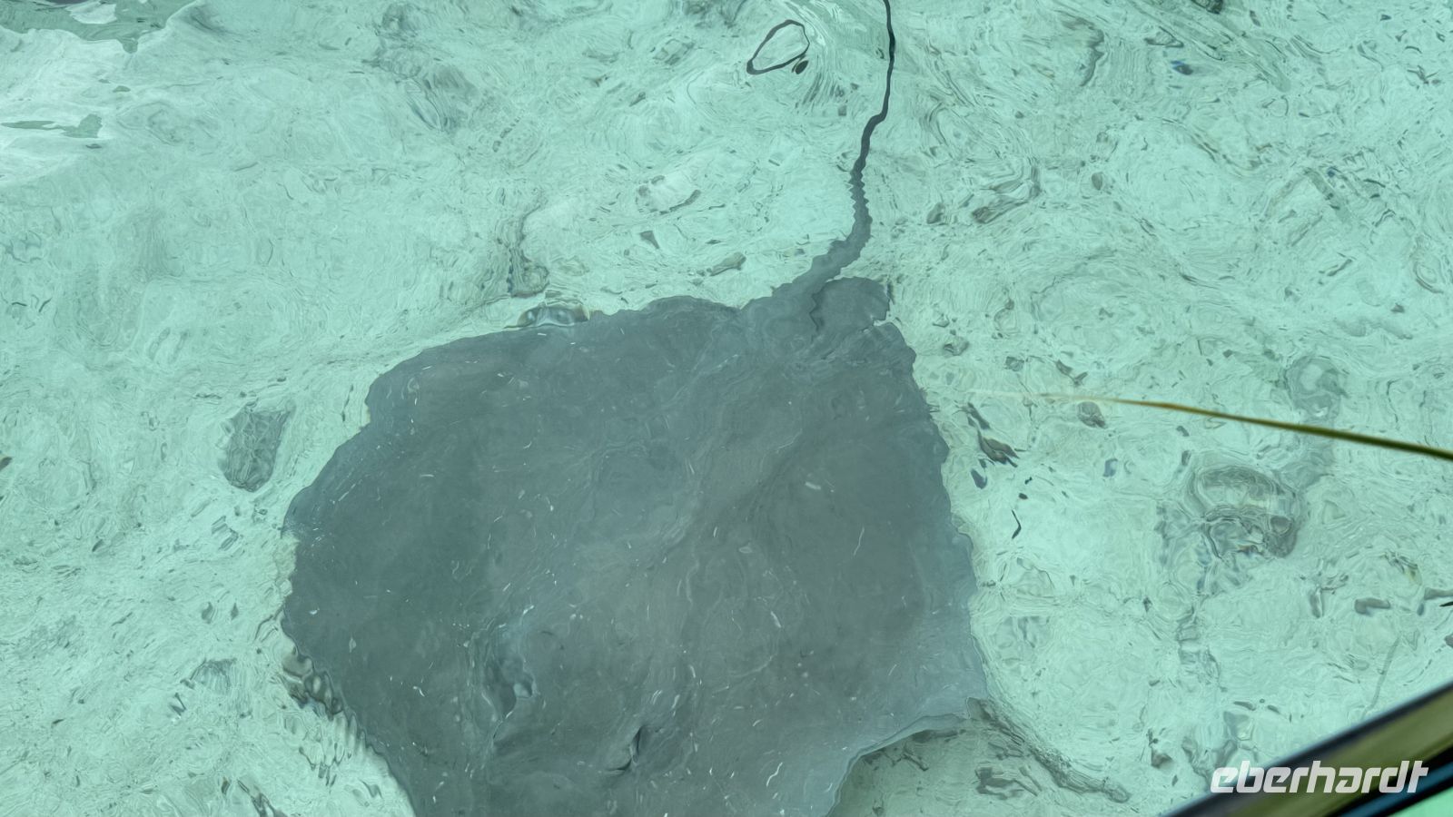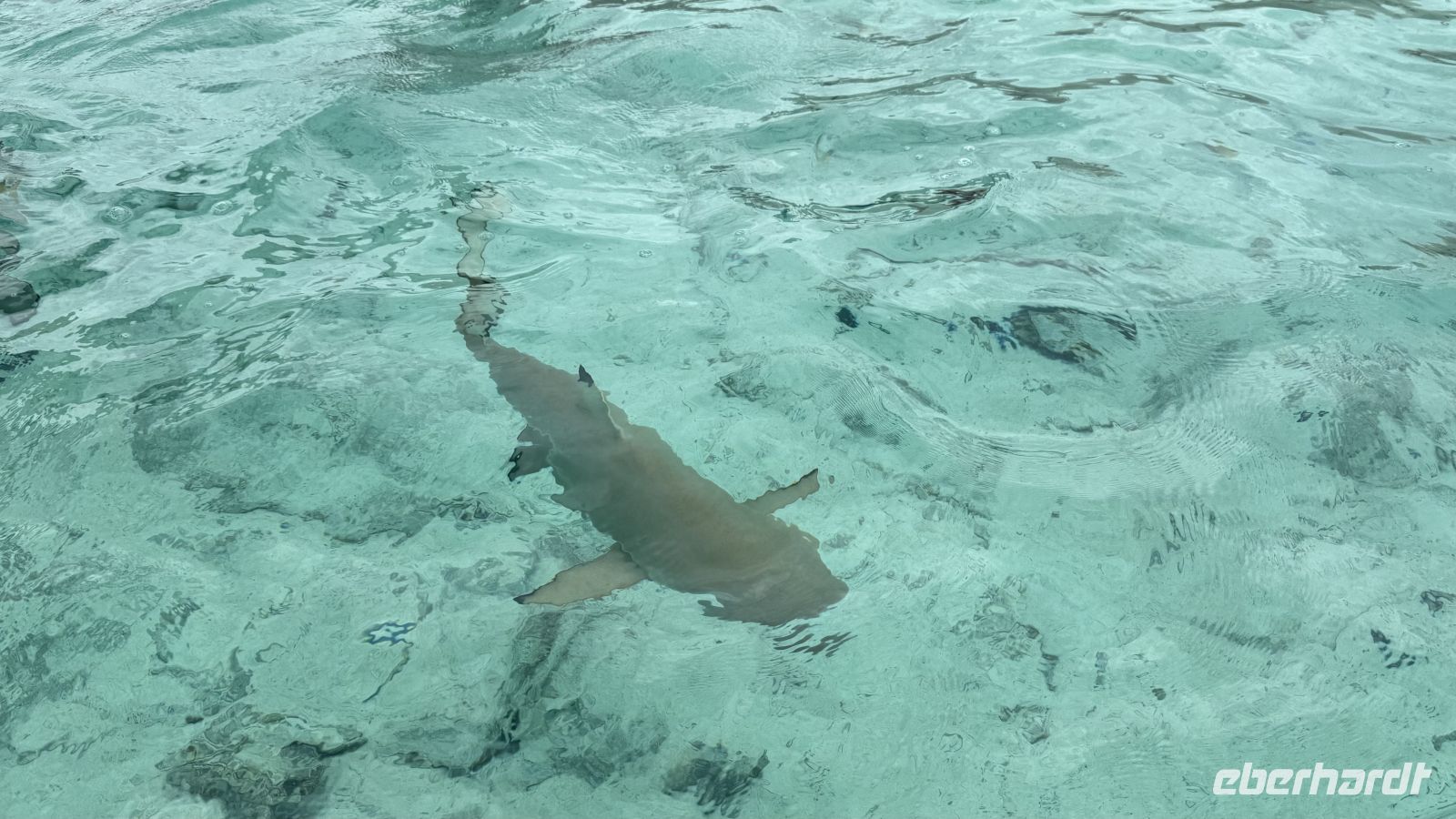 Es folgte ein Halt bei den Stachelrochen, wo wir die Tiere aus ruhiger Entfernung beobachten konnten. Danach kamen wir zu einem der aufregendsten Spots der Lagune: dem Gebiet der Schwarzspitzen-Riffhaie und Mantarochen. Obwohl wir im seichten Wasser standen, fühlte es sich beeindruckend und zugleich ungewohnt an, von diesen eleganten Tieren umgeben zu sein.