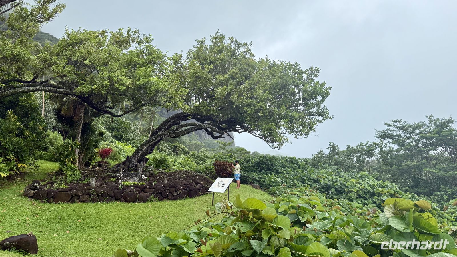 Weiter ging es zu Māpe, dem Tahiti-Kastanienbaum. Seine Früchte werden gekocht verzehrt und sind reich an Stärke. Der mächtige Baum ist ein typischer Bestandteil polynesischer Täler und liefert zudem wertvolles Holz.