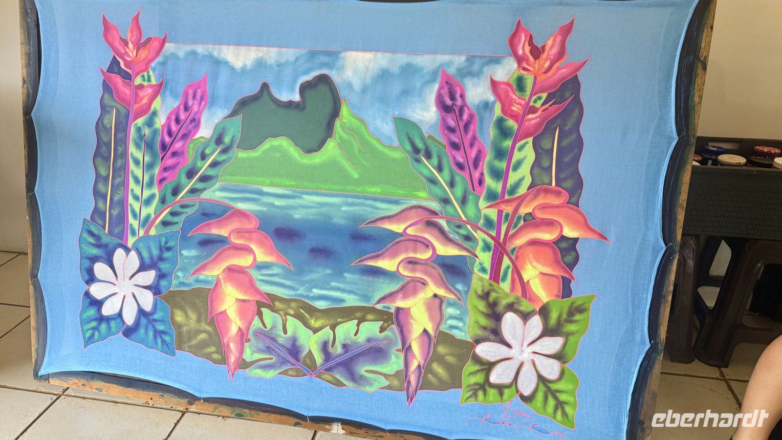 Unser nächster Halt war eine Pareo-Galerie. Hier sahen wir zu, wie traditionelle Tücher kunstvoll von Hand bemalt und gestaltet werden. Pareos spielen in der polynesischen Kultur eine wichtige Rolle – sie sind vielseitig tragbar und Ausdruck der engen Verbindung zur Natur, denn viele der Muster zeigen Blüten, Blätter, Wellen oder symbolische Motive. Auf dem Gelände wuchsen zudem Uru (Brotfrucht), Avocado, Dattelpalmen und Papayabäume, und wir wurden mit frischem Obst verwöhnt.