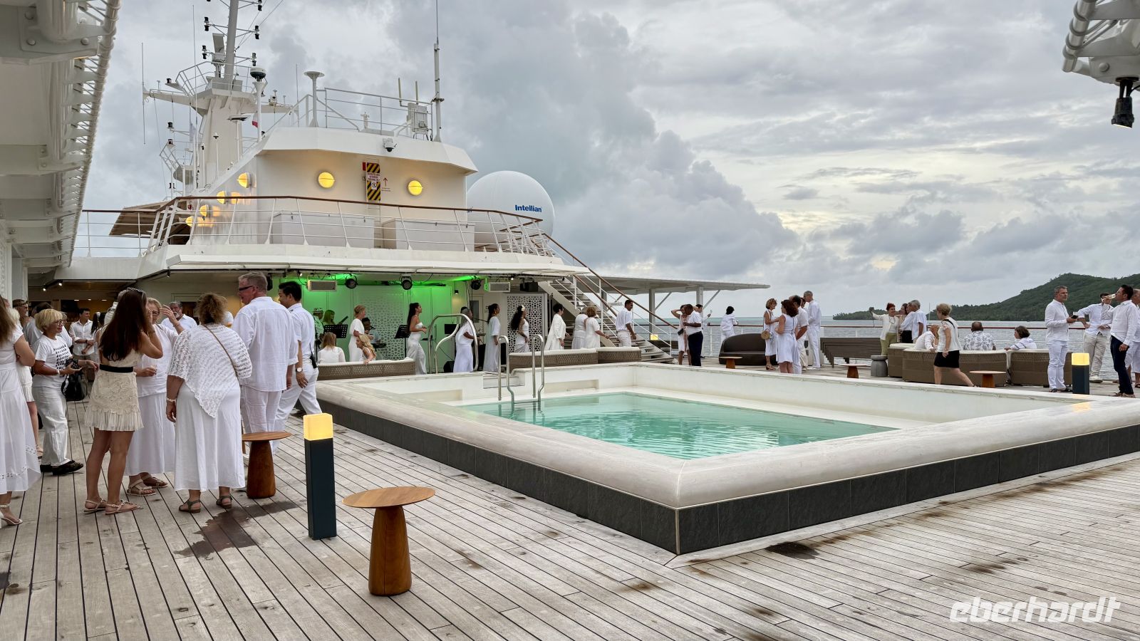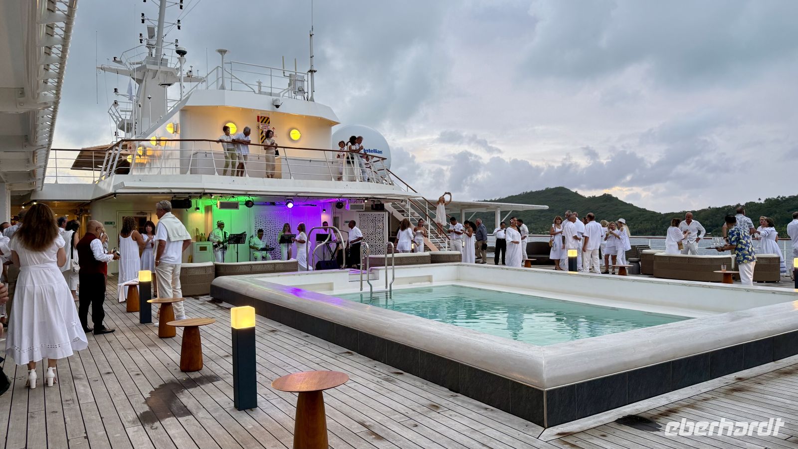 Zum Abschluss kehrten wir zum Hafen zurück. Einige von uns nutzten die Zeit zum Bummeln, andere gingen noch ein letztes Mal an den Strand oder entspannten auf dem Schiff. Am Abend feierten wir gemeinsam die White Party an Bord – ein stimmungsvoller Abschluss eines erlebnisreichen Tages, ehe wir Bora Bora schließlich verließen.