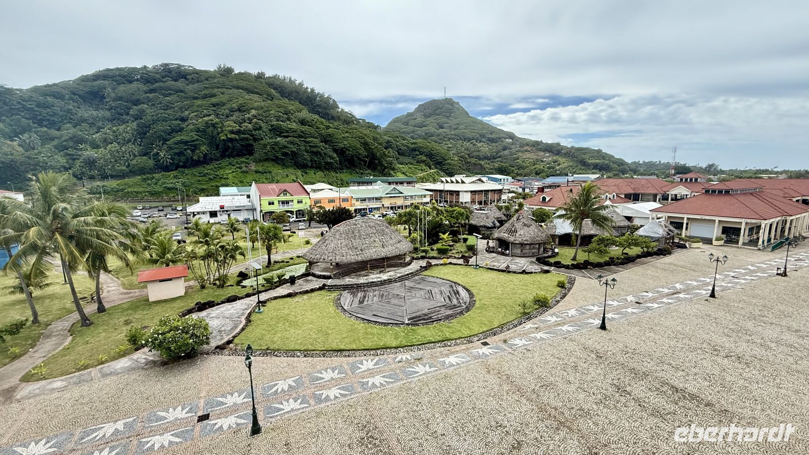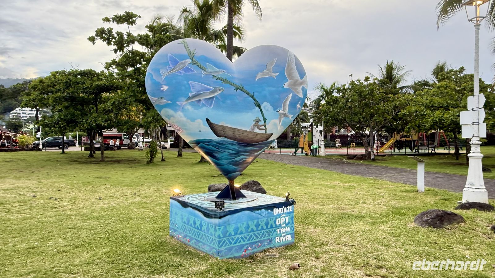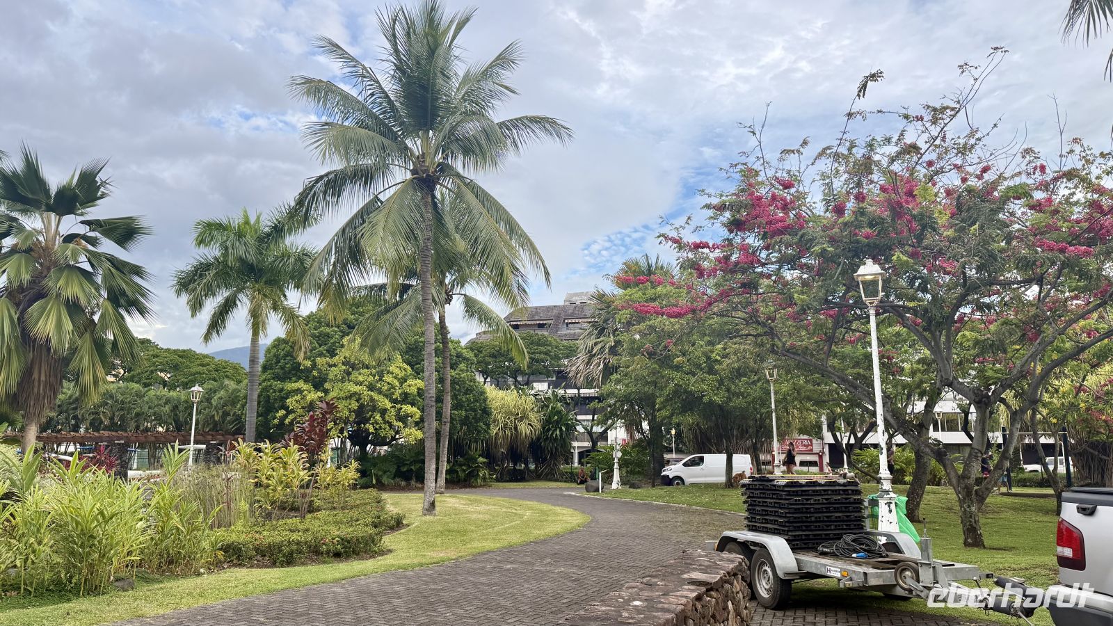 Unser erster Stopp war der Paofai Park, auch bekannt als Parc Paofai oder offiziell Pa'ōfa'i Gardens. Er liegt direkt an der Uferpromenade von Papeete und ist einer der beliebtesten Orte sowohl für Einheimische als auch für Besucher. Der Park wurde vollständig modernisiert und bietet weitläufige Grünanlagen, Laufwege, Spielplätze, Fitnessbereiche sowie zahlreiche Blumen- und Pflanzenarten, die typisch für Polynesien sind. Von hier aus hat man einen wunderschönen Blick auf die Lagune von Papeete und bei gutem Wetter sogar bis nach Mo’orea. Besonders abends herrscht hier eine entspannte Atmosphäre, wenn Familien picknicken, Jogger ihre Runden drehen und die Sonne langsam hinter dem Horizont verschwindet.
