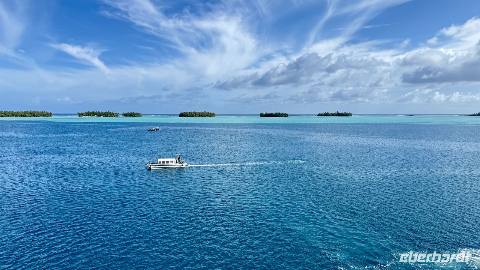 Am heutigen Tag erreichten wir Rangiroa, das größte Atoll Polynesiens und eines der größten Atolle der Welt, bereits in den frühen Morgenstunden. Rangiroa gehört zum Tuamotu-Archipel und ist berühmt für seine spektakuläre Lagune, die oft als „Endloses Blau“ bezeichnet wird. Die Lagune ist rund 75 km lang, stellenweise 25 km breit und an ihren tiefsten Stellen etwa 36 Meter tief. Auf den schmalen Riffinseln, den sogenannten Motu, leben etwa 3.000 Menschen. Die wichtigsten Einnahmequellen sind Tourismus, Fischfang, Perlenzucht sowie der Anbau von Wein, was Rangiroa einzigartig in der polynesischen Inselwelt macht.