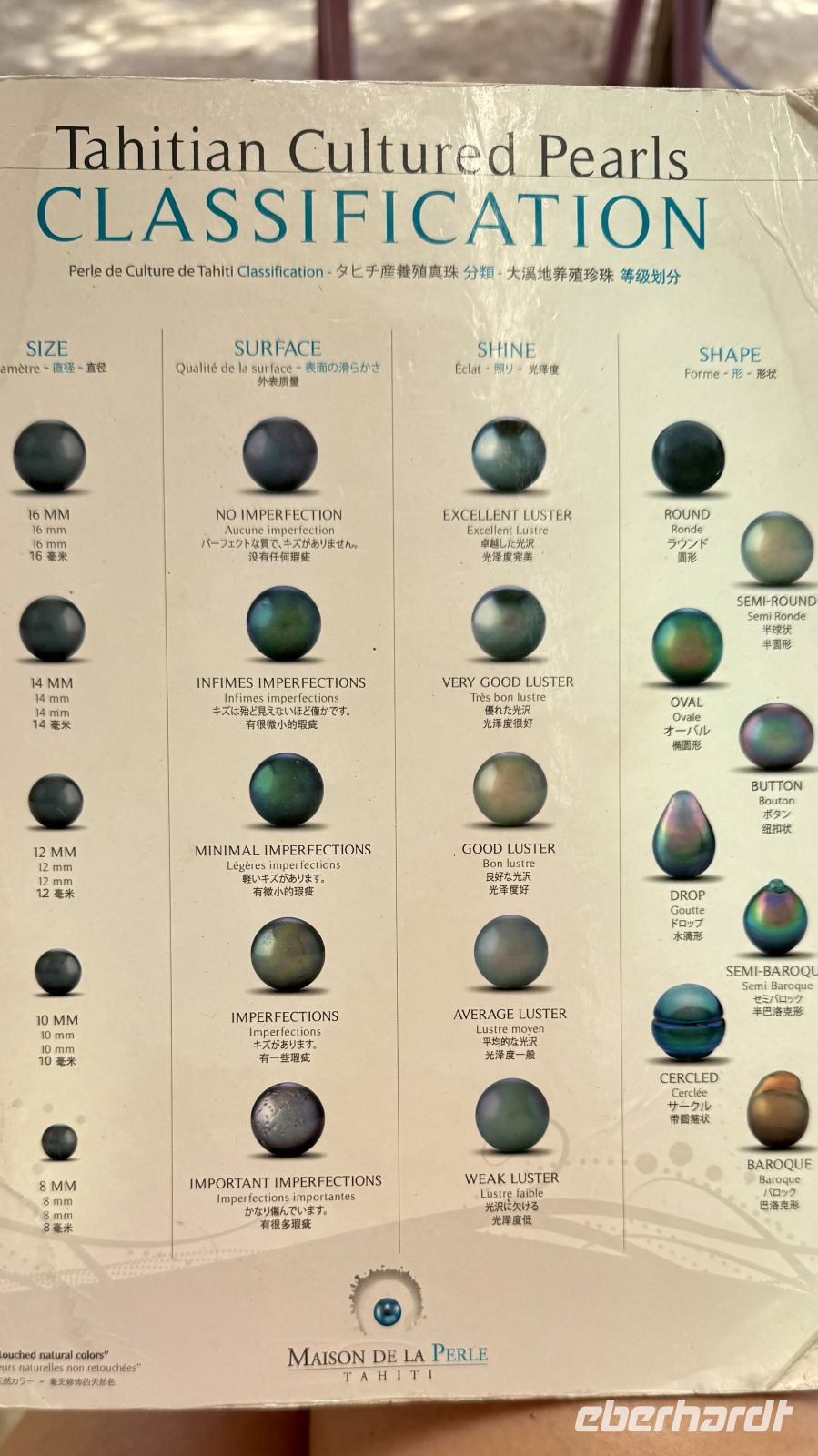 Ein weiteres Highlight war das Perlenmuseum. Dort erfuhren wir viel über die Kultur der berühmten tahitischen schwarzen Perlen, die für ihren außergewöhnlichen Glanz und ihre große Farbvielfalt geschätzt werden. Die Ausstellung zeigte den Weg von der Auster bis zur fertigen Perle und gab spannende Einblicke in die Kunst der Perlenzucht. Die tahitische Perlenzucht ist ein faszinierender Prozess, der viel Geduld, Erfahrung und Fingerspitzengefühl erfordert. Die berühmten „schwarzen Perlen“ stammen überwiegend aus der Auster Pinctada margaritifera, die in den warmen Lagunen Französisch-Polynesiens ideale Bedingungen findet. Jede Zuchtperle beginnt mit einem winzigen, sorgfältig eingesetzten Kern, der von Perlenzüchtern von Hand in die Auster eingefügt wird – ein heikler Vorgang, der große Präzision verlangt, denn nur ein Teil der Austern übersteht diese Prozedur. Danach verbringen die Austern viele Monate bis Jahre im klaren Lagunenwasser, wo sie regelmäßig kontrolliert und gepflegt werden. Während dieser Zeit bildet die Auster Schicht für Schicht Perlmutt um den Kern. Die Farbe der Perlen entsteht nicht durch Färbung, sondern ganz natürlich: Sie reicht von tiefem Anthrazit über Grüntöne, Aubergine, Silber und Bronze bis hin zu nahezu schwarzem Glanz – ein Farbspektrum, das tahitische Perlen weltweit einzigartig macht. Sehr beeindruckend ist auch, wie streng jede einzelne Perle nach Form, Luster (Glanz), Oberfläche und Größe bewertet wird. Nur ein kleiner Teil wird als „Top-Qualität“ eingestuft. Deshalb gelten tahitische Perlen als besonders wertvoll und oft als kleine Kunstwerke der Natur, die durch menschliche Sorgfalt erst möglich werden.