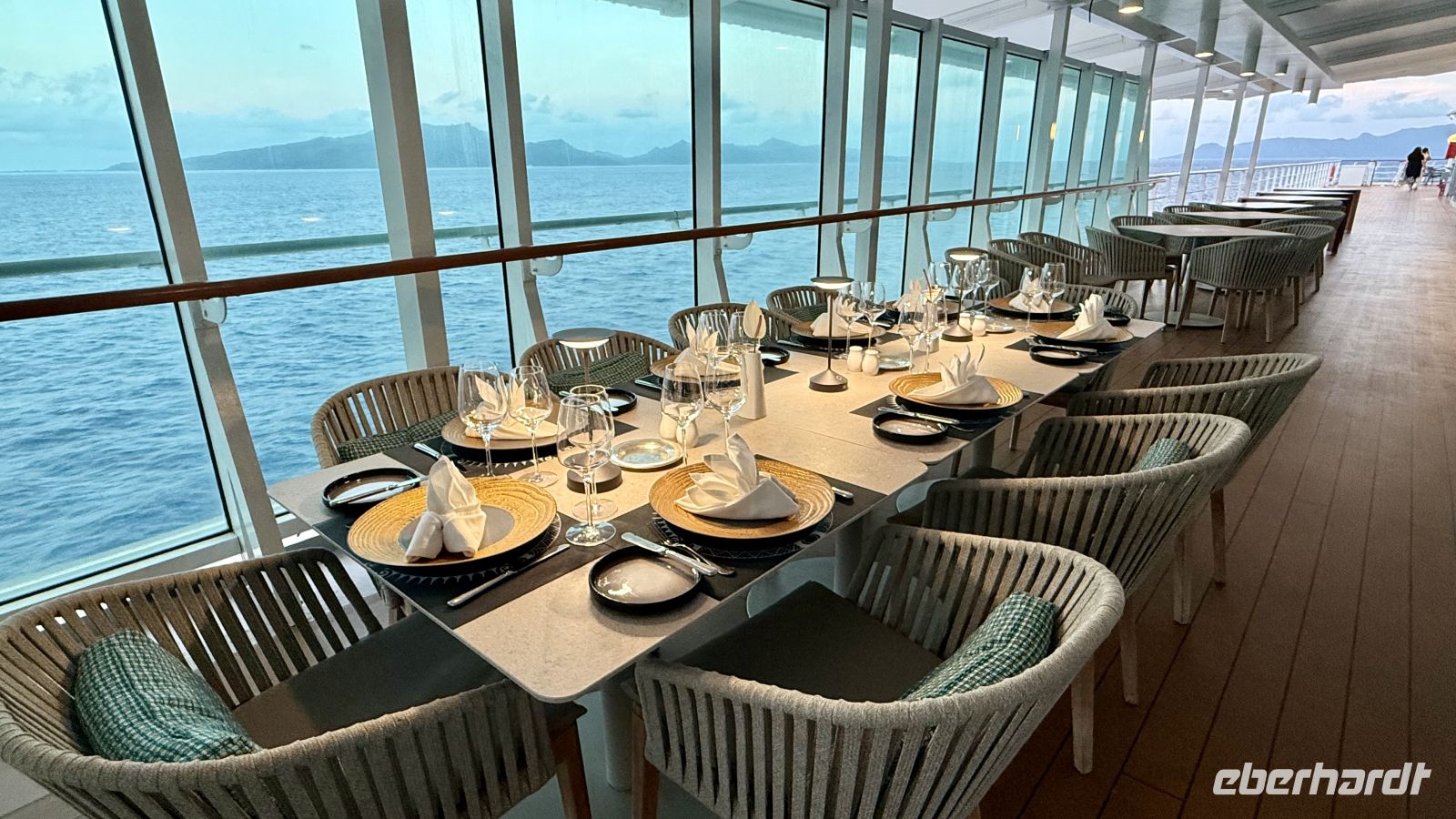 Am Abend kehrten wir an Bord zurück und trafen uns im Restaurant Le Grill, um diesen ereignisreichen und wunderschönen Tag gemeinsam ausklingen zu lassen.
