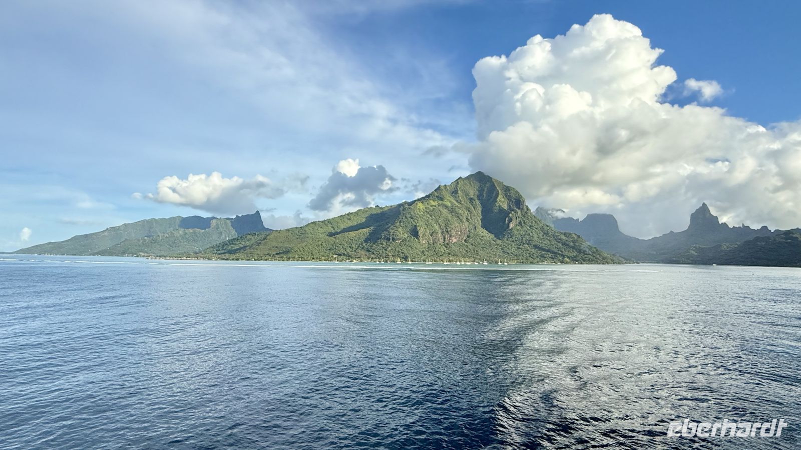 Heute erreichten wir die Insel Mo’orea, die nur rund 17 Kilometer nordwestlich von Tahiti liegt und als „kleine Schwester Tahitis“ bekannt ist. Mo’orea ist vulkanischen Ursprungs, etwa 2 Millionen Jahre alt und besitzt die charakteristische Herzform, die man sehr gut aus der Luft erkennen kann. Rund 18.000 Menschen leben auf der Insel. Sie ist berühmt für ihre tief eingeschnittenen Buchten – die Cook’s Bay und die Opunohu Bay – sowie für ihre üppigen Ananasplantagen, die zu den besten im gesamten Südpazifik zählen.