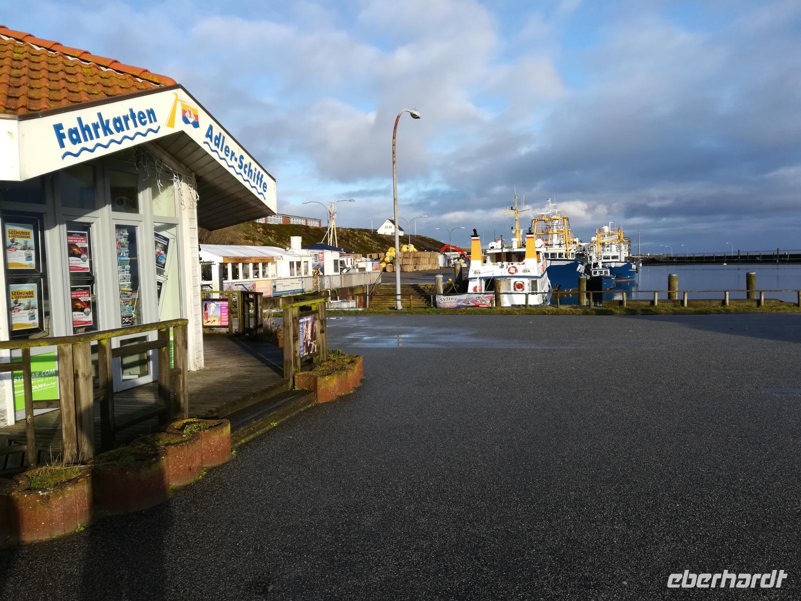 Und weiter geht unsere Busfahrt über die Insel Sylt bis an deren äußerste südliche Spitze nach Hörnum. Hier machen wir am Hafen einen Halt, steigen aus und bekommen von unserem Inselführer Informationen über die berühmten Sylter Muschelfischer, dier hier ankern. Die kleine Sylter Muschelbude im Hafen hat auch Weihnachtsferien, sonst könnte man dort Muscheln verköstigen.
