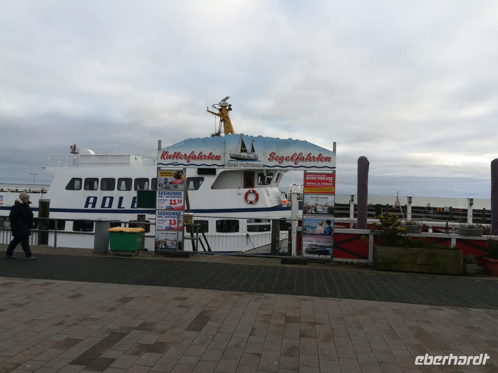Hier im Lister Hafen machen wir jetzt unsere Mittagspause und wer wollte, ging in die "nördlichste Fischbude", zu Gosch. Interessant, im Lister Hafen herumzugehen und so auch die Fähre ins benachbarte Römö, Dänemark, ein- oder auslaufen zu sehen.