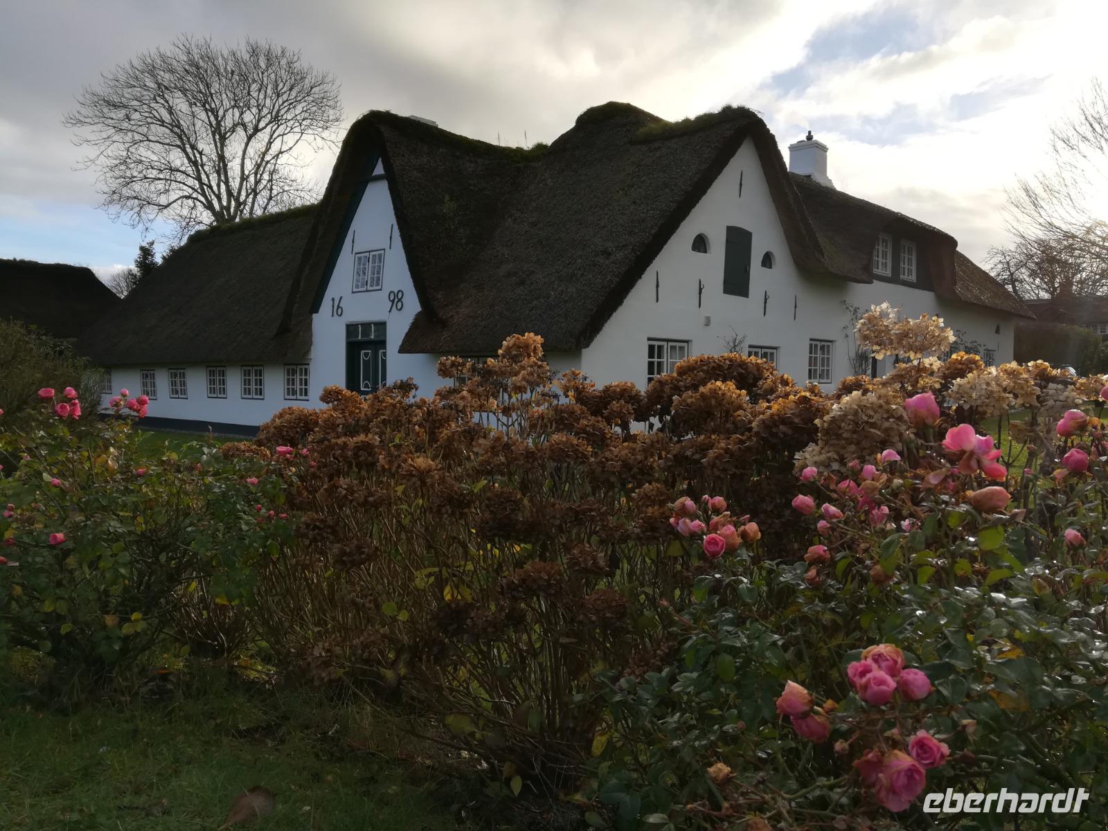 Unser Inselführer Werner hatte sich bereit erklärt, uns beim Spaziergang durch das Friesendorf Keitum zu begleiten, was sich als sehr wertvoll erwies. So erfuhren wir Einzelheiten über viele einzelne Friesenhäuser, teils über deren Geschichte, teils über individuelle Geschichten der Eigentümer von jetzt aber besonders auch von früher.