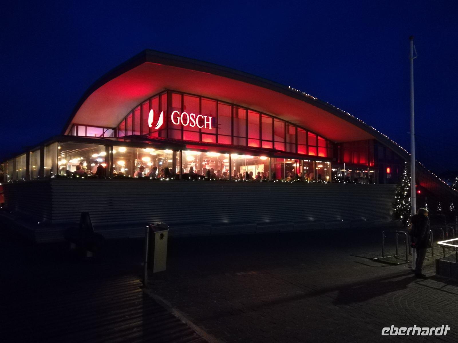 Und nach so vielen Eindrücken von der Insel Sylt fahren wir zurück zu unserem Hotel. Und wer von unseren Gästen noch nicht genug hatte, der bewegte sich etwa 100 m vom Hotel weg zum Wenningstedter Strand und konnte dort das ziemlich neue Gosch - Restaurant bestaunen, das besonders bei Dunkelheit eindrucksvoll in Knallrot erscheint.