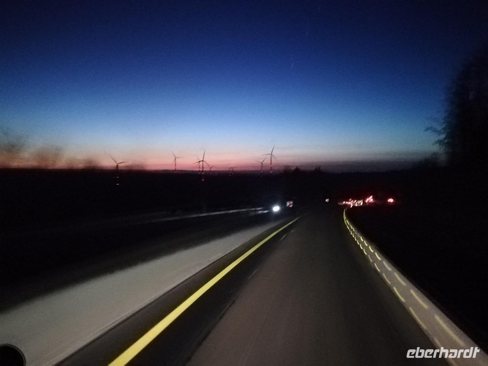 Die Fahrt über den Hindenburgdamm war unspektakulär, da die Dunkelheit der Nacht uns eingeholt hatte.
