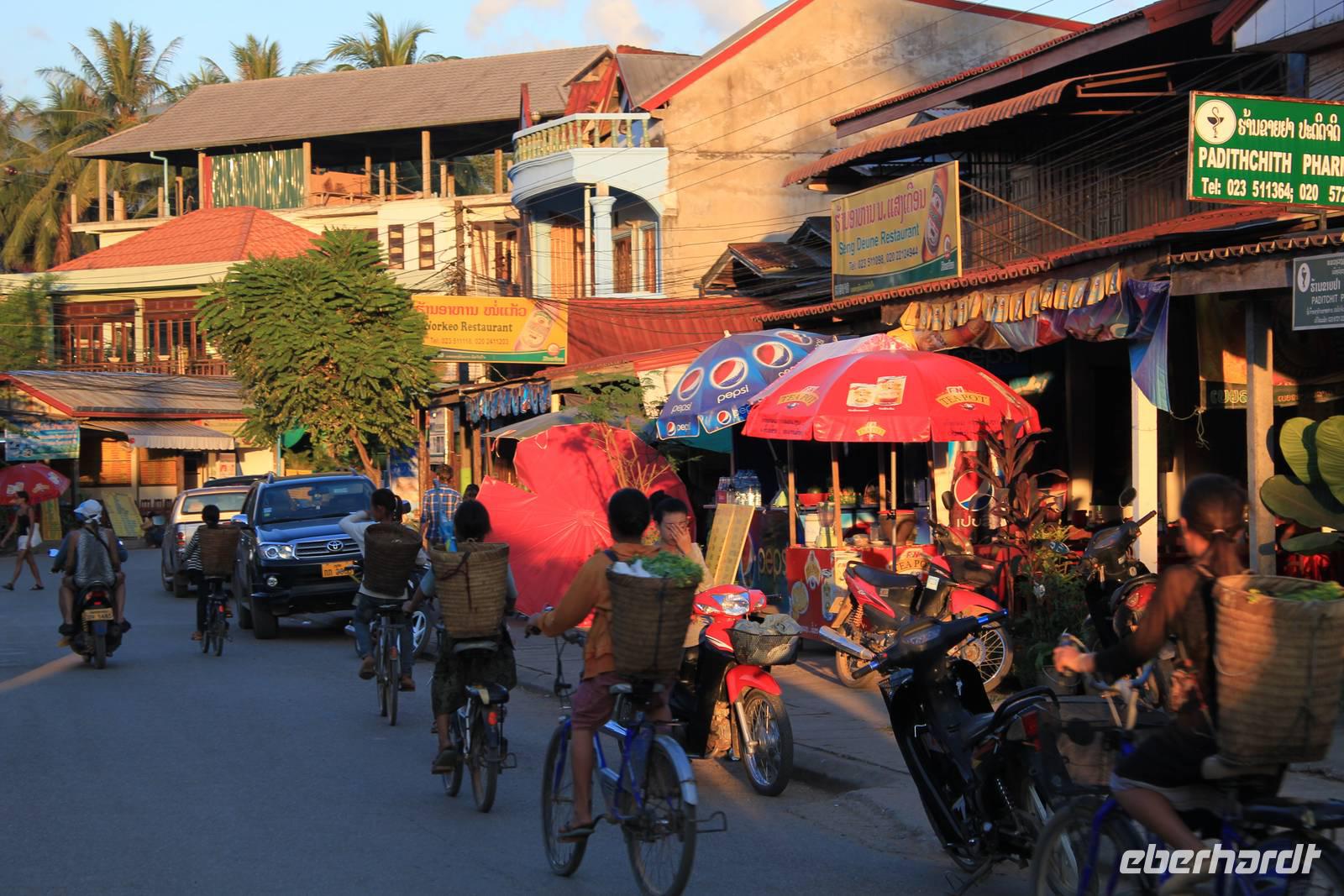 Luang Prabang weckt in uns wirklich den Eindruck eines unglaublich friedlichen, romantischen Ortes Asiens, in dem wir den Zauber des Fernen Ostens nahezu spüren können. Tempel, Pagoden, verwitterte Bambushäuser zwischen Holzbaracken und Märkten - fast wirkt es wie die Kulisse eines alten Indochina-Films!
