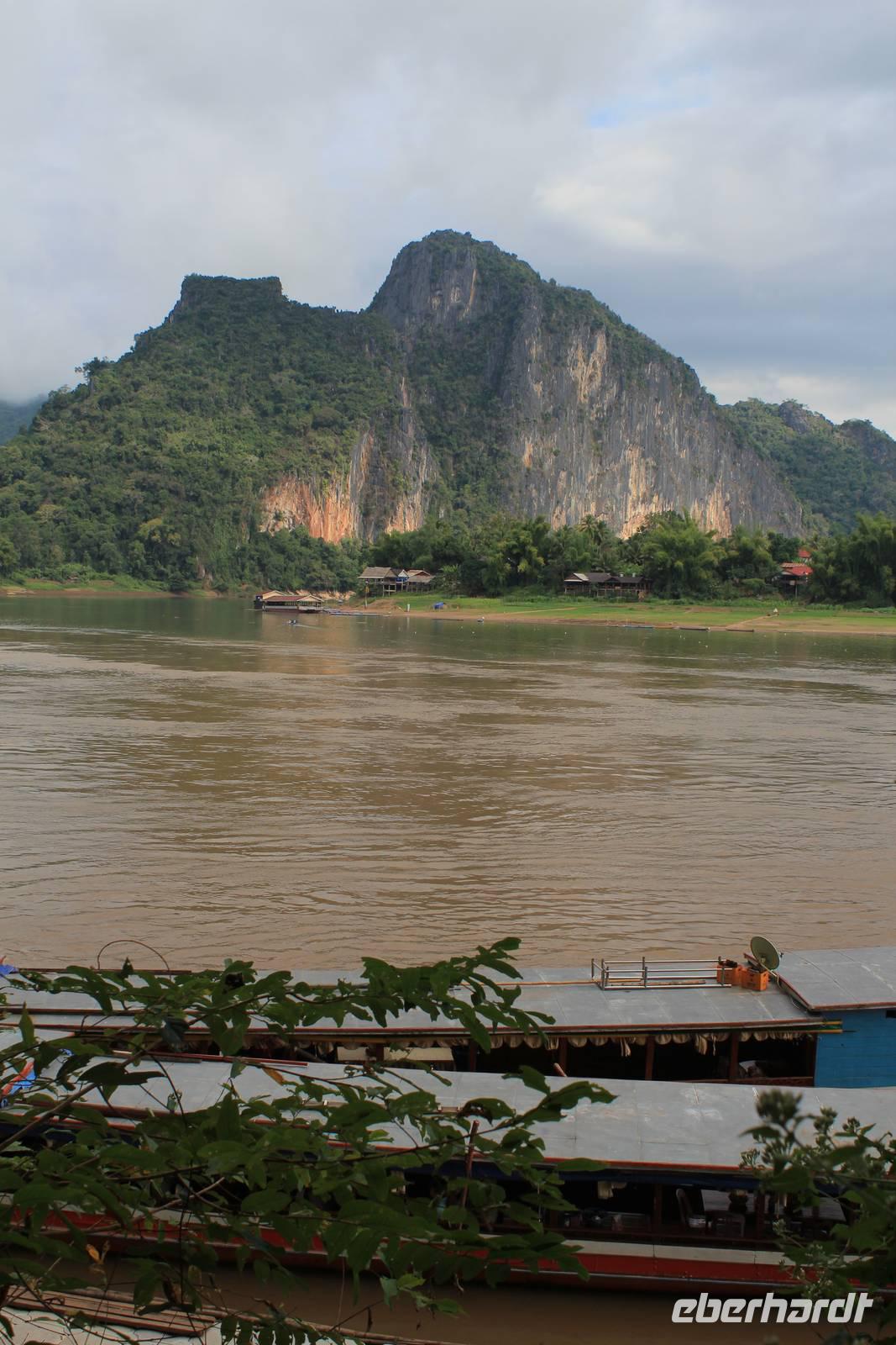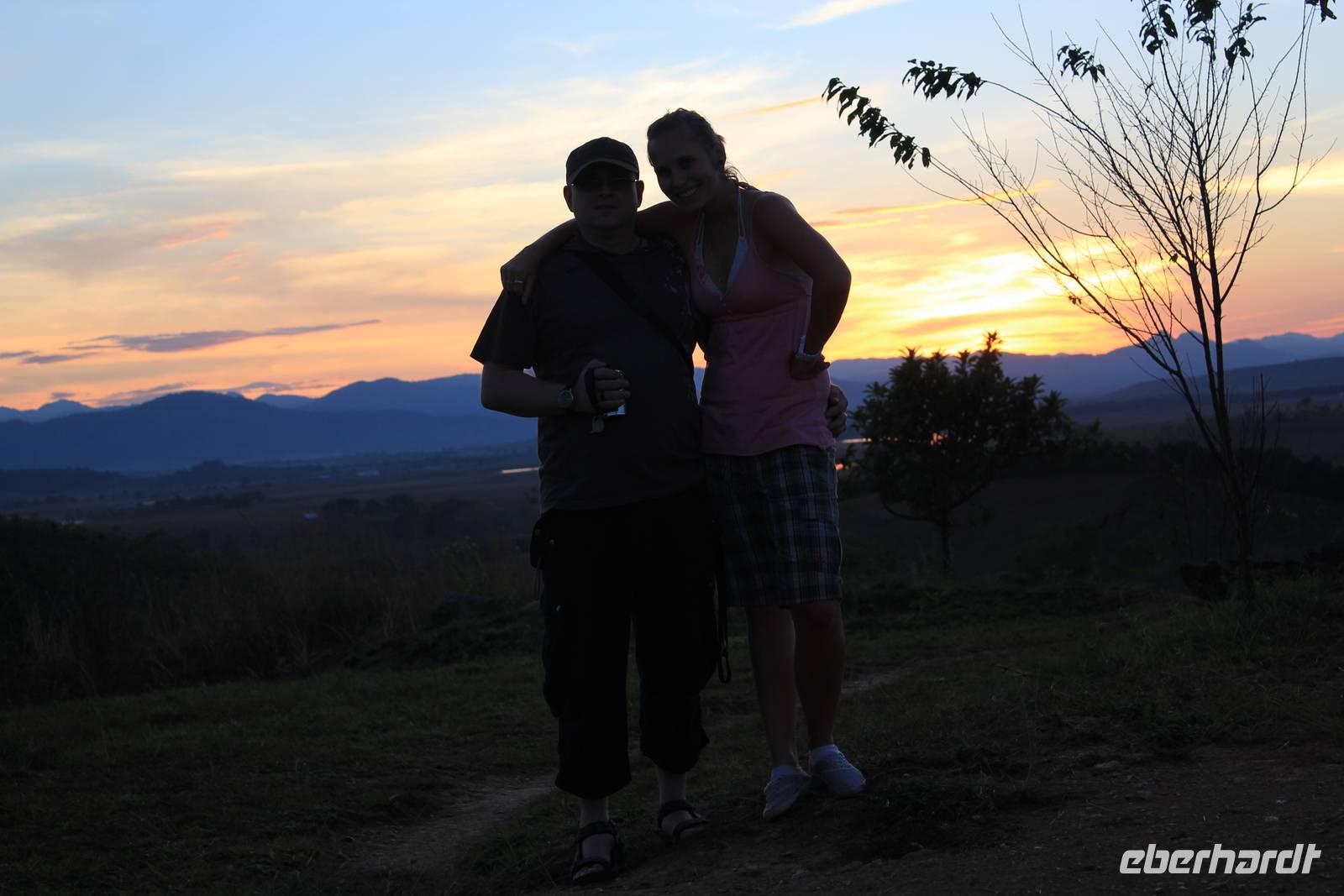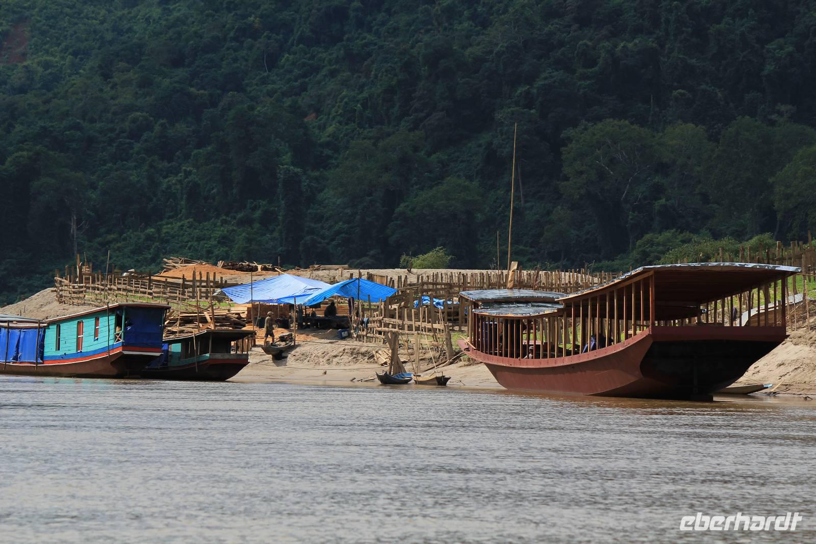 Erst am frühen Abend erreichen wir unseren Übernachtungsort Pak Beng. Hier drängen sich die Holzboote bereits dicht an dicht und es scheint uns unmöglich hier noch einen freien „Parkplatz" am Ufer zu finden! Doch wir haben keine Ahnung und unser Boot wird unter knarren und quietschen in eine „Lücke" manövriert. Wir beziehen unser sehr einfach ausgestattetes Gästehaus „Phet Sok Xai" und treffen uns später zum gemeinsamen Abendessen wieder, bei dem wir den Tag mit einem letzten „Beerlao" in Laos genießen.