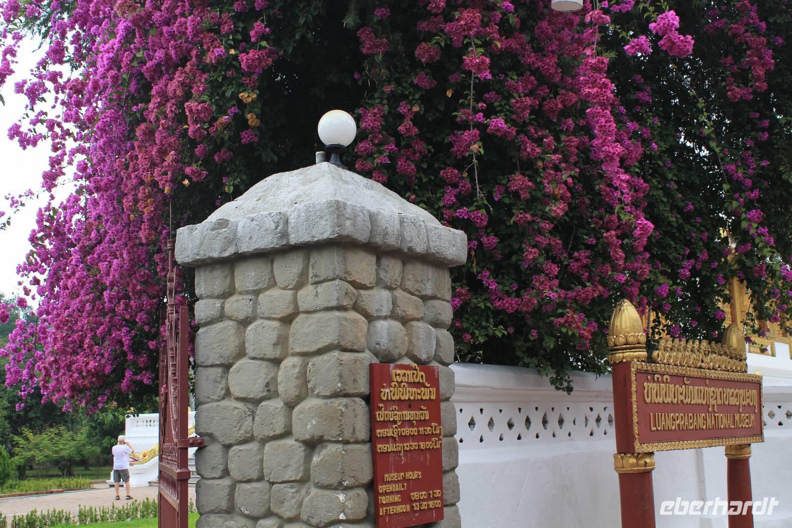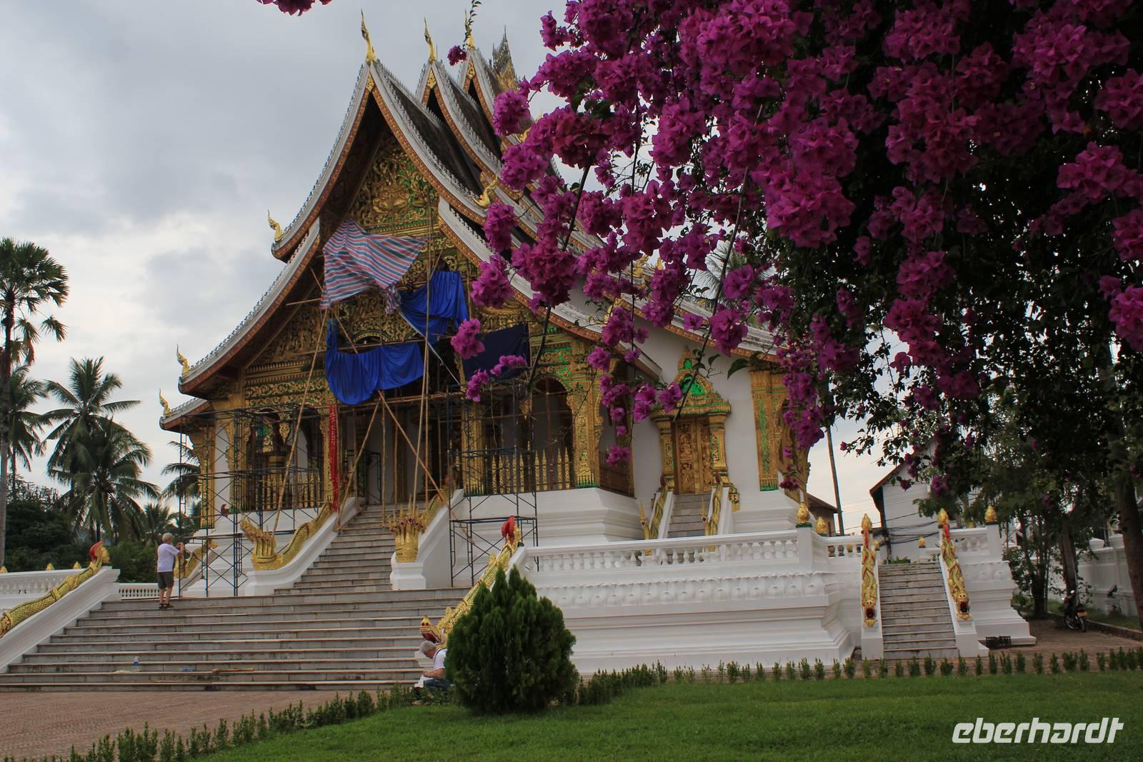 Am Ende der Straße stehen wir vor dem ehemaligen Königspalast und heutigem Nationalmuseum der Stadt. König Sisavang Vong, der vorletzte laotische König, ließ den Palast um 1909 errichten, der einst den magisch-religiösen Mittelpunkt des Reiches darstellte. Im Inneren besichtigen wir die königliche Empfangshalle, in der mit Malereien Szenen der laotischen Geschichte dargestellt sind, den Thronsaal sowie die Privatgemächer der Königsfamilie. Durch den Empfangssaal der Königin geht es zurück zur Eingangshalle, wo weitere Exponate der Kunstsammlung des Museums ausgestellt sind. Im rechten Flügel des Museum begutachten wir die heiligste Buddha-Statue des Landes, den Pha Bang. Dieser thront auf einem goldenen Altar und ist der Namenspatron der Stadt. Luang bedeutet so viel wie „die erste" und Pha Bang steht für den heiligen Buddha. Letzter hier lebender König war Sisavang Vatthana, der 1975 gezwungenermaßen abdankte.