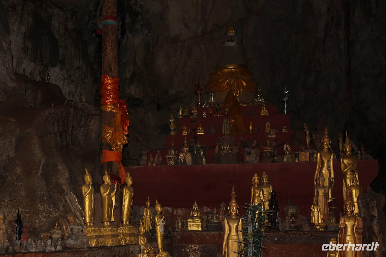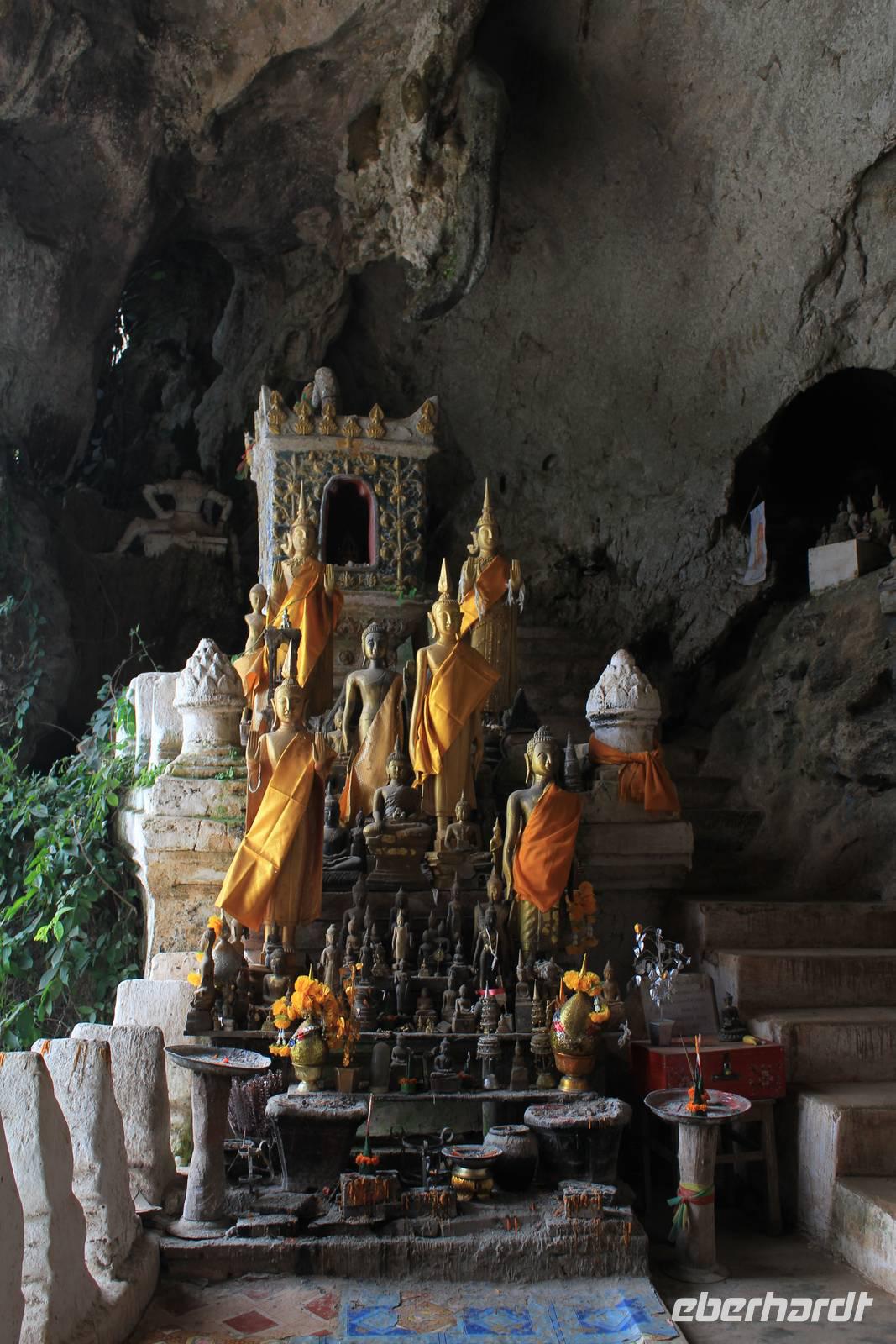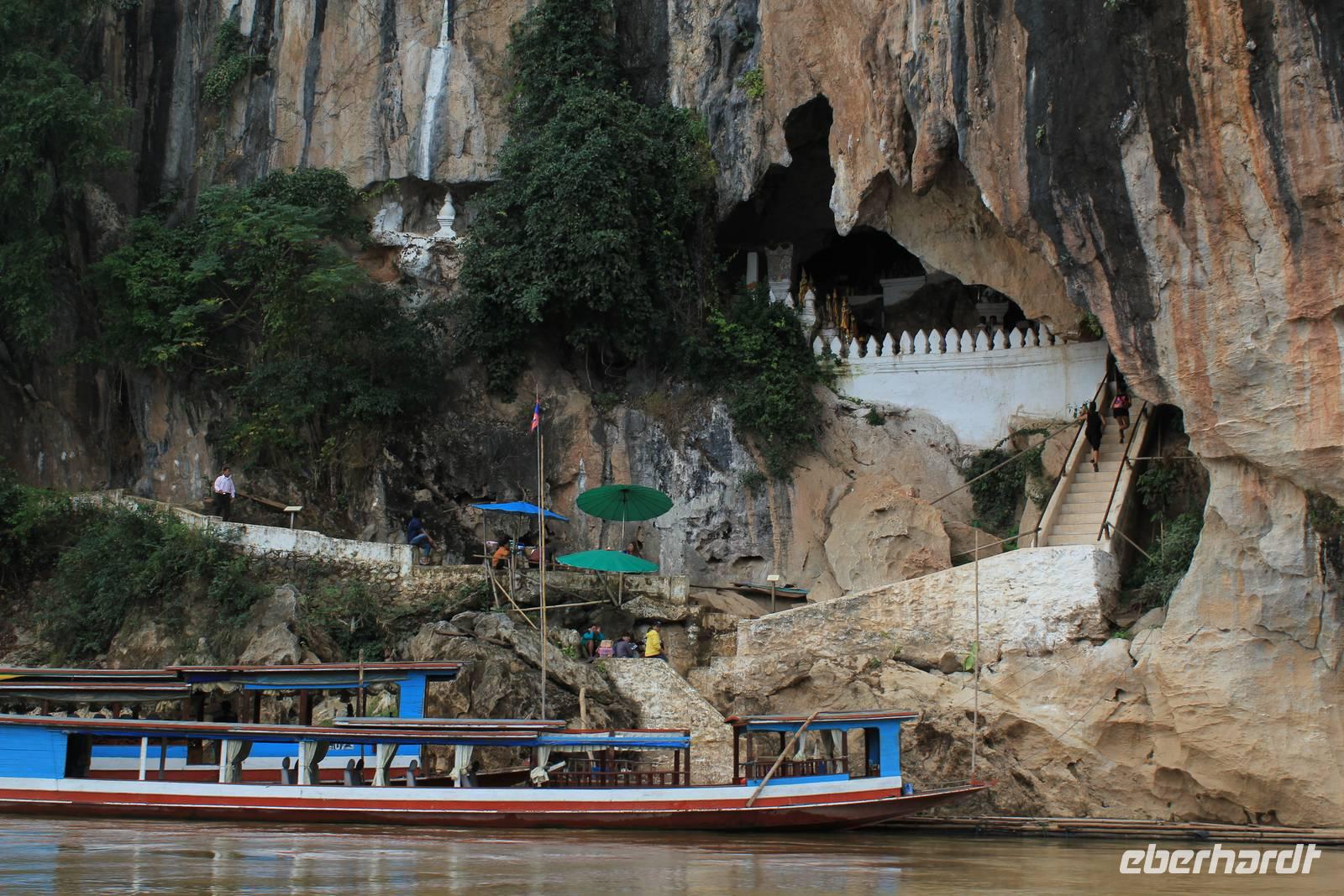 Am Vormittag stoppen wir im kleinen Schnapsdorf Ban Sang Hay, wo wir gezeigt bekommen wie köstlicher Reisschnaps und -wein gebrannt wird. Eine kleine Kostenprobe darf natürlich nicht fehlen und so schaukelt es sich gleich noch besser über den Mekong. Weiter geht es zu den berühmten Höhlen von Pak Ou, die nur vom Wasser aus zu erreichen sind. In 2 Höhlentempeln, die direkt in das Kalkgestein geschlagen wurden, befinden sich über tausend Buddha-Statuen in allen möglichen Größen und Formen. Bereits die untere Höhle, Tam Thing, erinnert an eine buddhistische Wunderwelt. Die obere Höhle, Tam Phum, ist sehr viel tiefer und dunkler und nur über einen recht beschwerlichen Weg mit großen Stufen zu erklimmen.