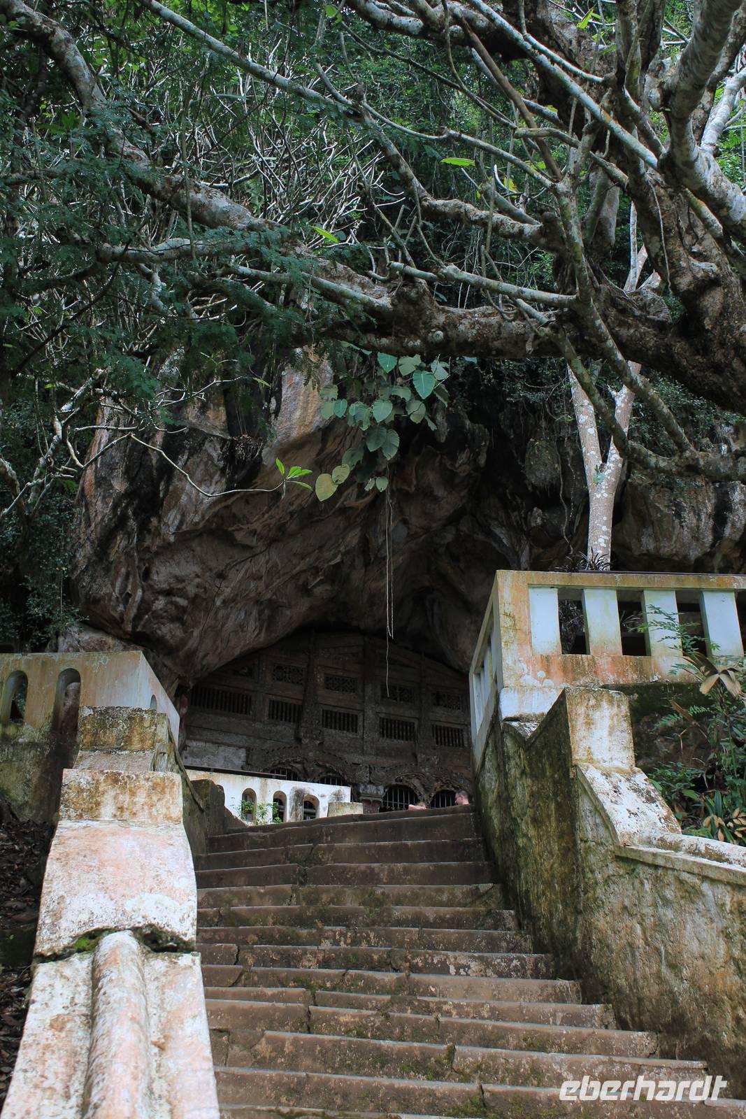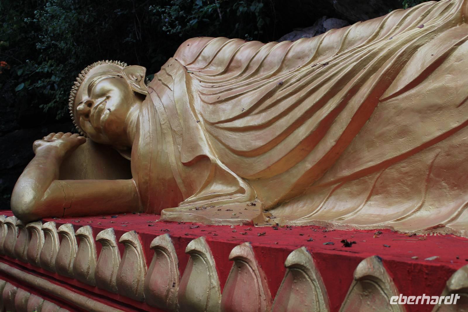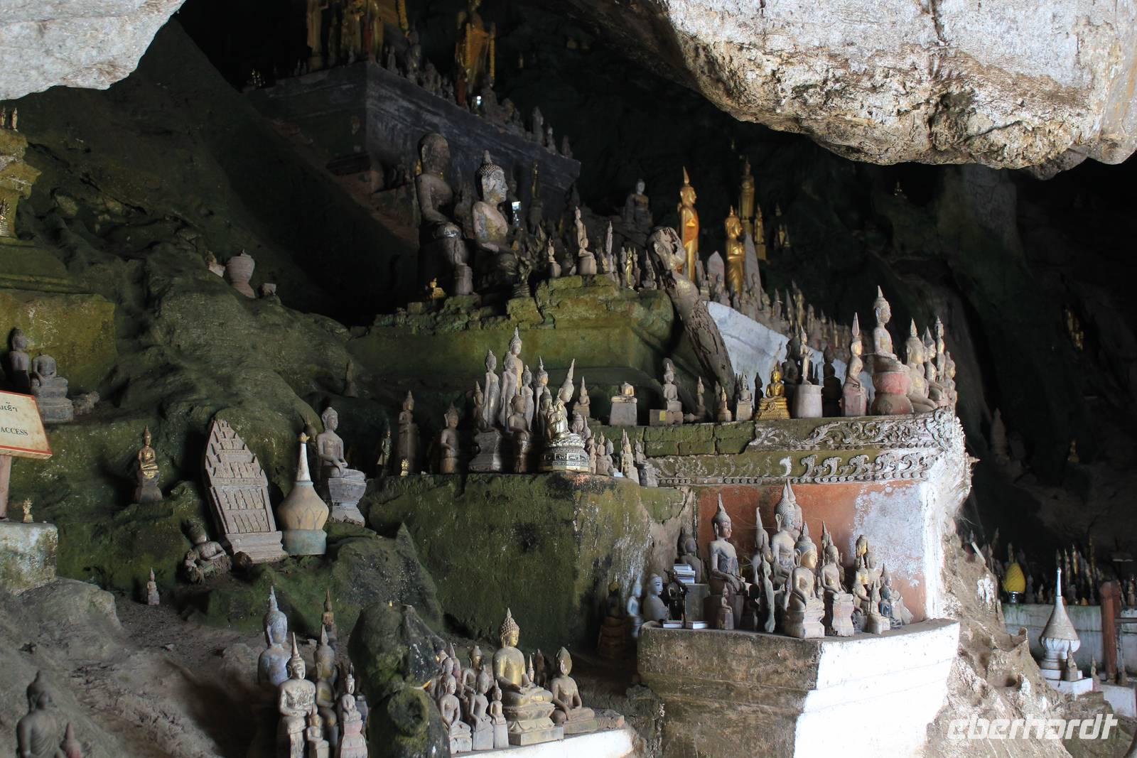 Am Vormittag stoppen wir im kleinen Schnapsdorf Ban Sang Hay, wo wir gezeigt bekommen wie köstlicher Reisschnaps und -wein gebrannt wird. Eine kleine Kostenprobe darf natürlich nicht fehlen und so schaukelt es sich gleich noch besser über den Mekong. Weiter geht es zu den berühmten Höhlen von Pak Ou, die nur vom Wasser aus zu erreichen sind. In 2 Höhlentempeln, die direkt in das Kalkgestein geschlagen wurden, befinden sich über tausend Buddha-Statuen in allen möglichen Größen und Formen. Bereits die untere Höhle, Tam Thing, erinnert an eine buddhistische Wunderwelt. Die obere Höhle, Tam Phum, ist sehr viel tiefer und dunkler und nur über einen recht beschwerlichen Weg mit großen Stufen zu erklimmen.