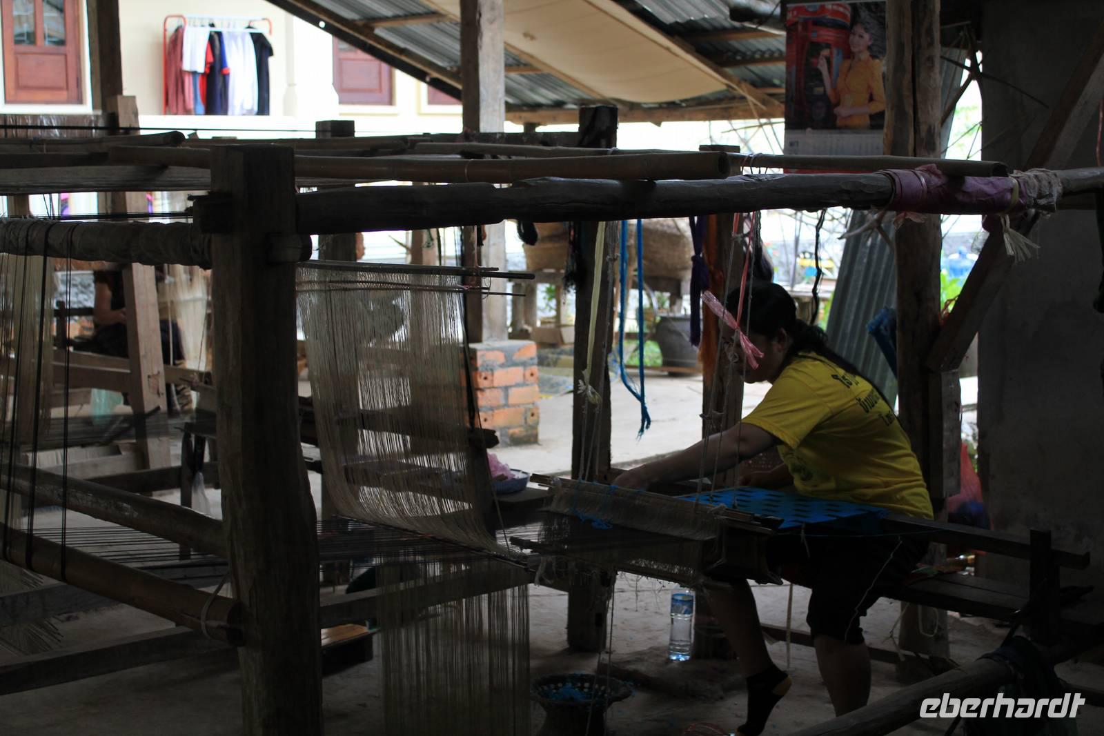 Am Nachmittag geht es zurück in die Stadt und wir besuchen noch kurz das Weberdorf Ban Phanom, in dem es viele Beispiele traditioneller, laotischer Webarbeiten zu sehen gibt. Die Geschichte des Dorfes, in dem es auch das Schöpfen von Maulbeerpapier zu bestaunen gilt, reicht bis ins 18. Jh. zurück. Auf Anweisung des Königs mussten die Arbeiter hier für den Hof Stoffe und Seide anfertigen.