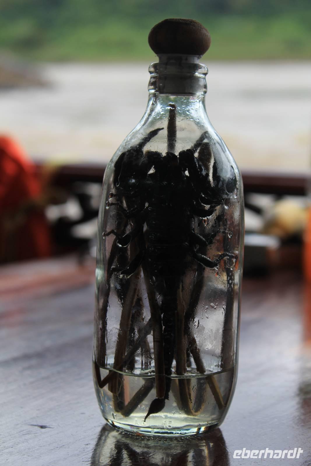 Unser Abendessen genießen wir heute bei romantischem Kerzenschein im Freien, direkt am Flussufer und das leckere „Beerlao" gehört inzwischen schon fast zum abendlichen Pflichtprogramm! Auf den herrlichen, erlebnisreichen Tag stoßen wir schließlich noch mit einem (oder 2, oder 3...) Reisschnaps, mit dem einfachen Namen „Lala" an!