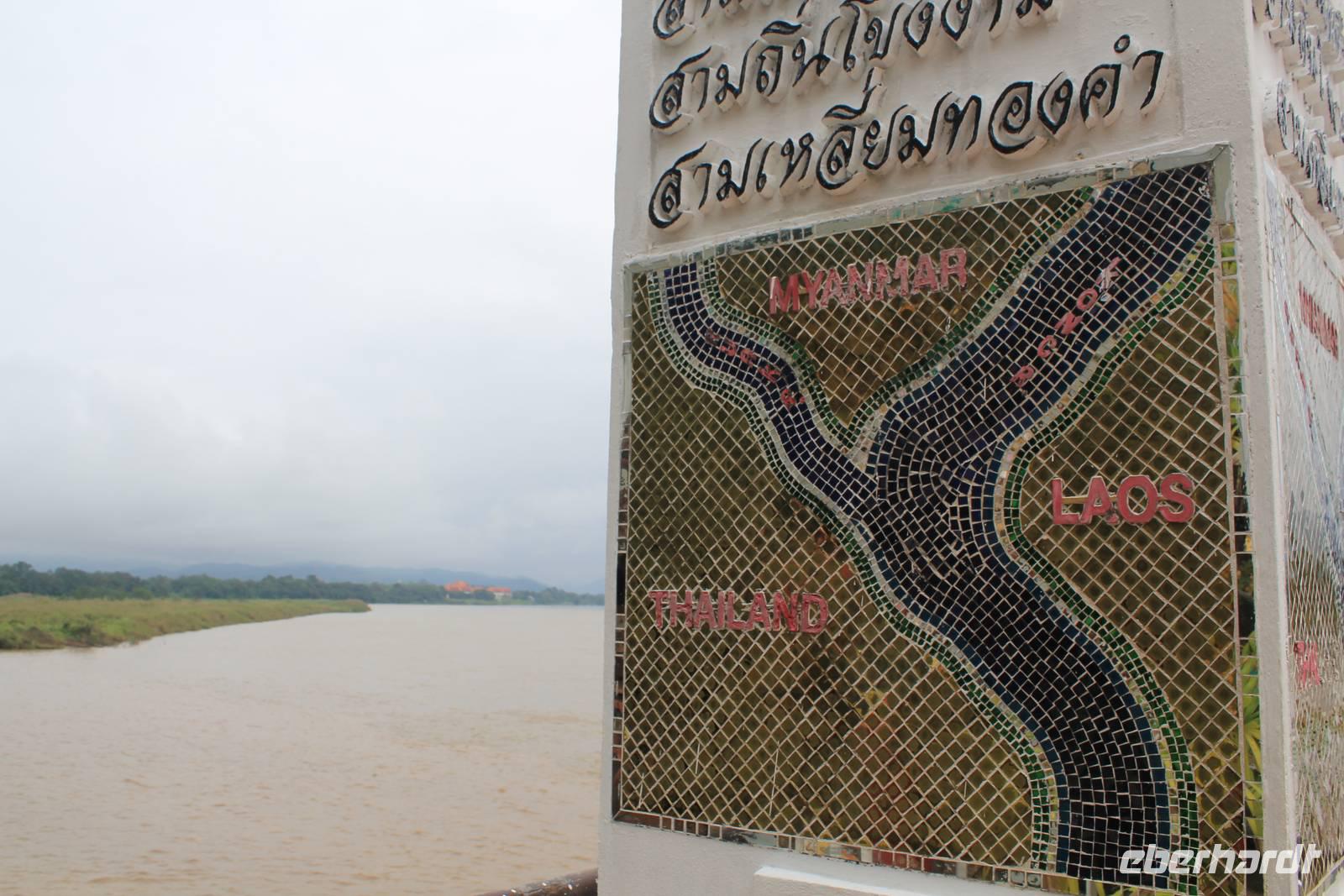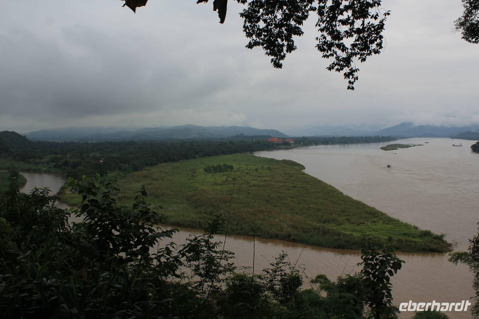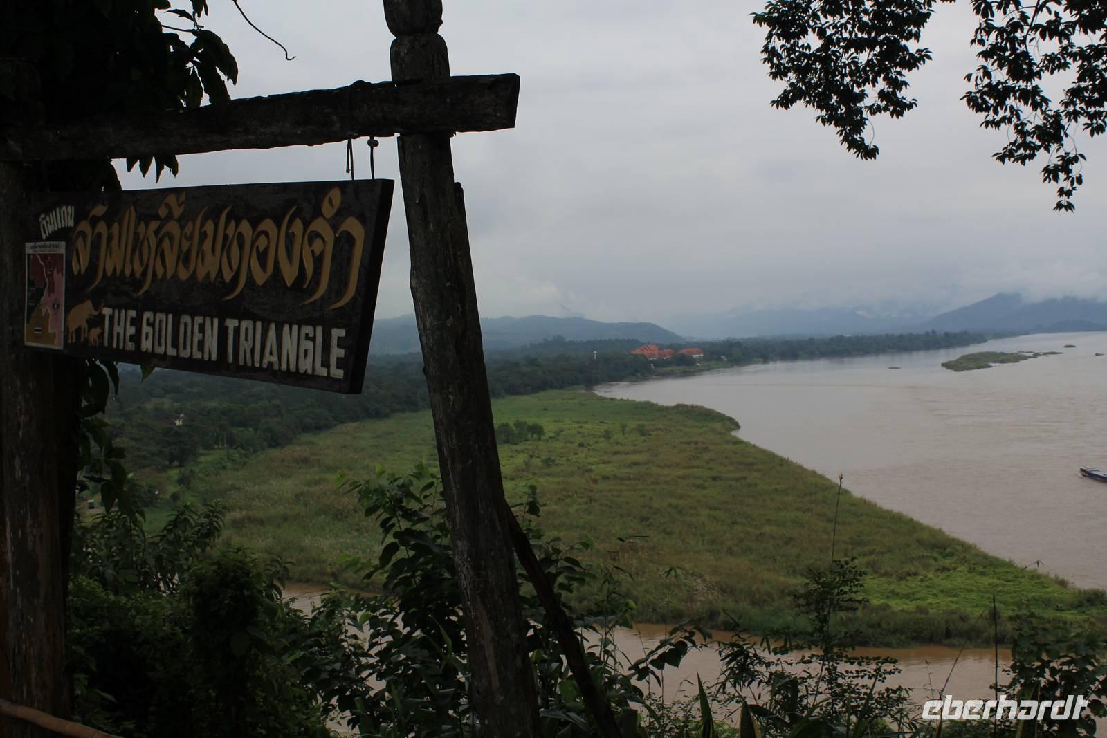 Im Anschluss sehen wir uns hier am goldenen Dreieck, wo der Fluss Mae Sai in den Mekong fließt, genauer um, knipsen ein Bild auf dem 3 Länder auf einmal sind und steigen außerdem noch auf einen kleinen Hügel, der uns eine wunderschöne Aussicht über das Dreiländereck bietet! Ein obligatorisches Gruppenfoto muss her!