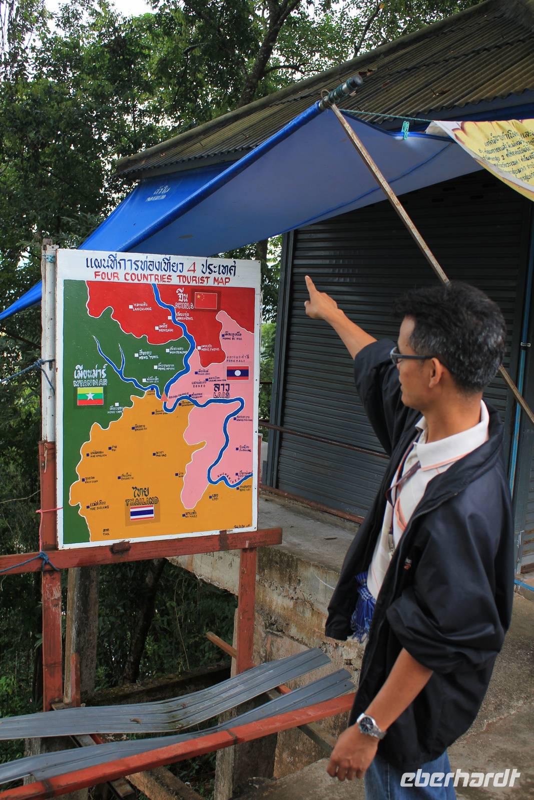 Etwas frischer ist es hier oben im Norden schon, aber allzu böse sind wir über die kleine zwischenzeitlich Abkühlung nicht. Nach dem Frühstück besuchen wir zuerst das Opium-Museum des Städtchens Chiang Saen (das zwischen 3. und 9 Jh. sogar ein eigenes Königreich war), denn Opium spielte noch bis in die 60er Jahre hinein eine wichtige Rolle für den Handel zwischen den drei „goldenen" Ländern Myanmar, Laos und Thailand. Dem Rauschmittel verdankt das Goldene Dreieck auch seinen Namen, denn Opium wurde gegen Gold eingetauscht. Ursprünglich kam es aus der Türkei und dem Mittelmeerraum und im Museum sehen wir die Werkzeuge zur Gewinnung, verschiedene Opiumsorten und natürlich auch die vielfältigen Opiumpfeifen. Offiziell ist mit dem Verbot des Rauschgifts heute keines mehr im Umlauf. Wie es in Wirklichkeit, insbesondere in den abgelegenen Bergdörfern aussieht, weiß natürlich keiner.