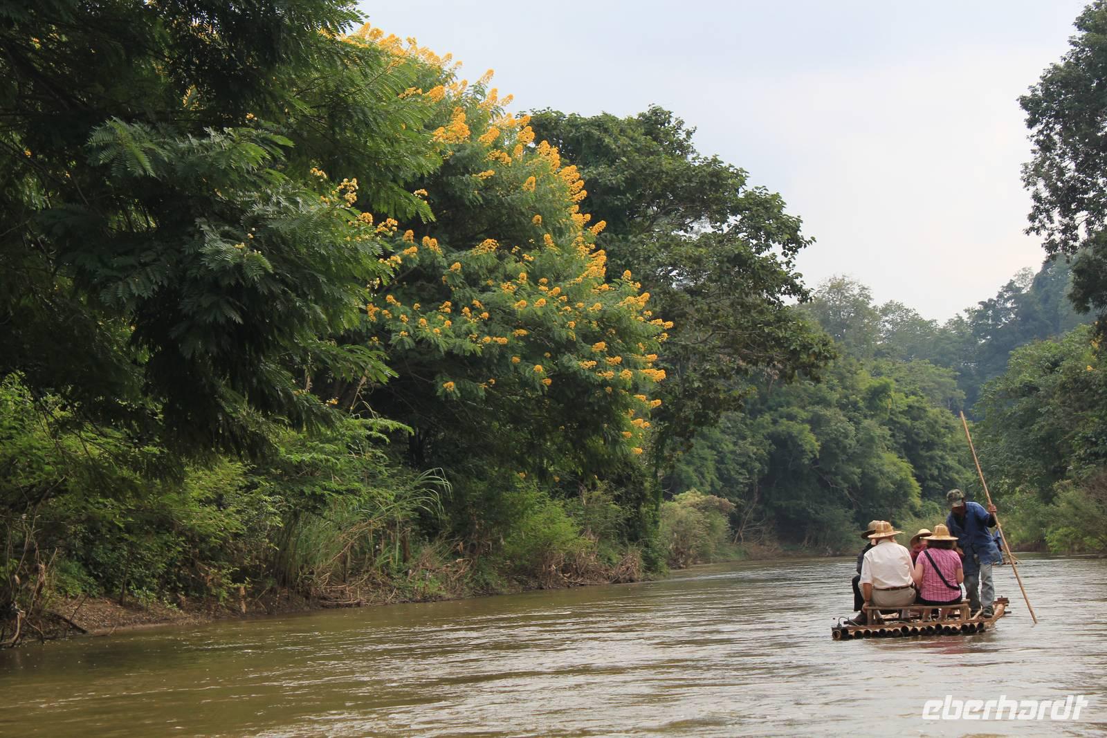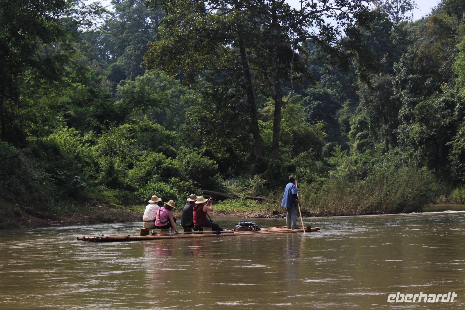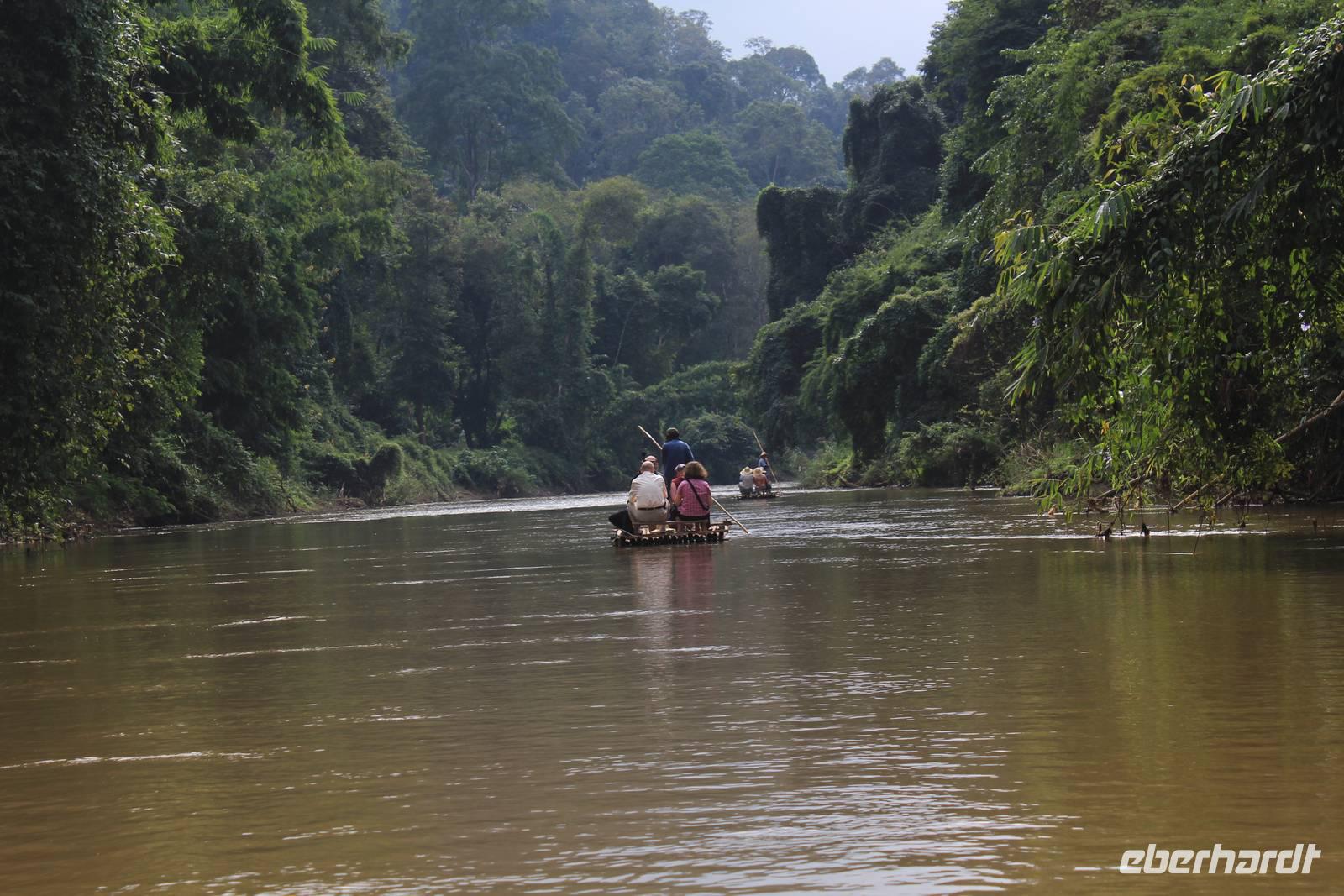 Im Anschluss unternehmen wir eine herrliche Floßfahrt von nichts begleitet als den Geräuschen der Natur, dem Plätschern des Wassers und dem Geschnatter unserer ReisegruppeJ. Es hat schon fast etwas Meditatives, wie wir auf den einfachen Bambusflößern dahin gleiten und die uns umgebende Szenerie und Ruhe auf uns wirken lassen.