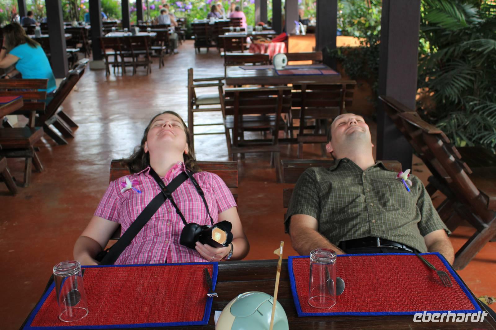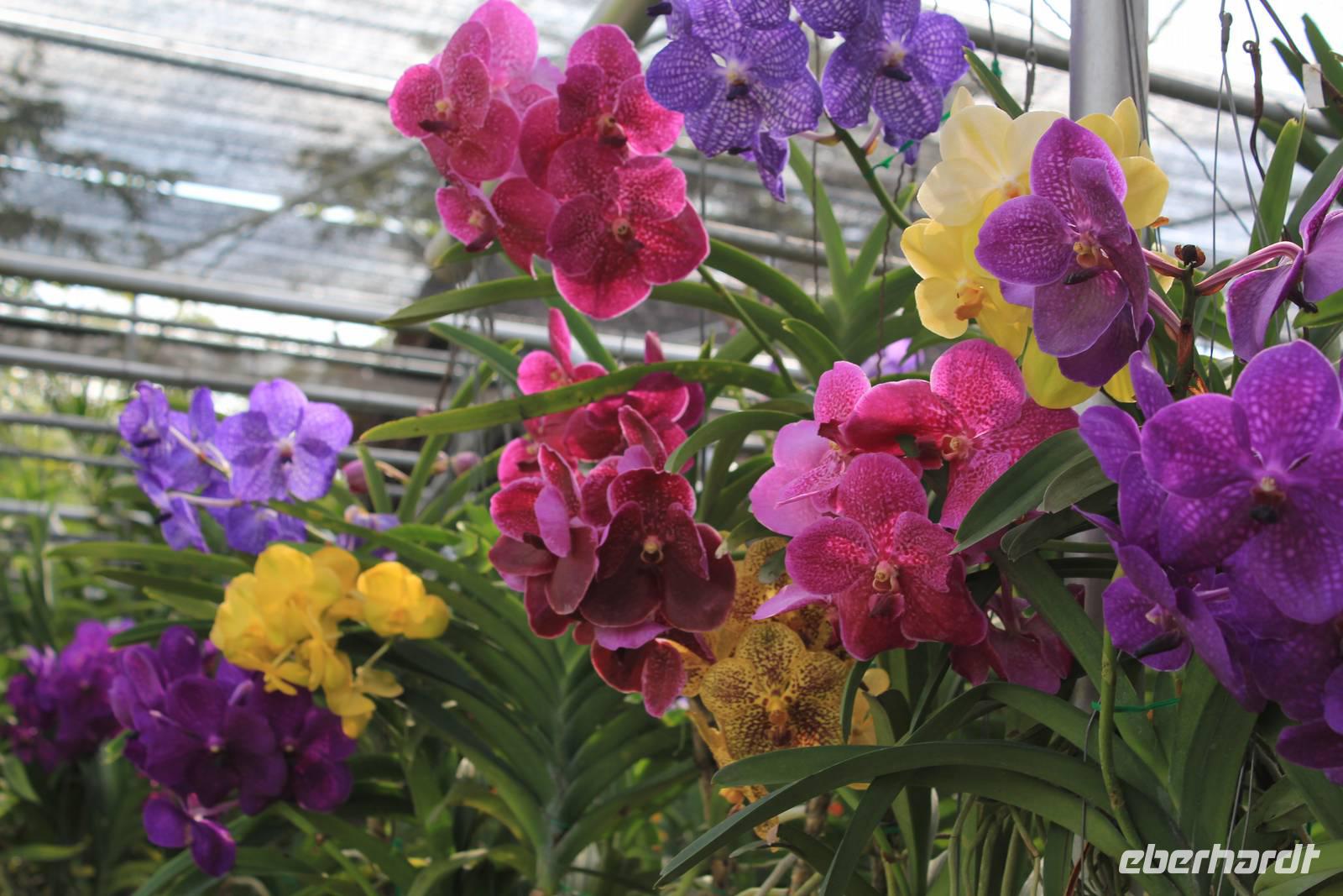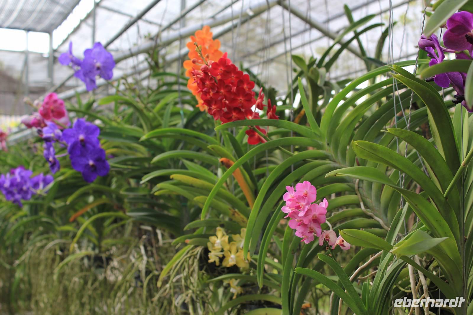 Zum Mittagessen stoppen wir später an einer Orchideen- und Schmetterlingsfarm, wo wir uns zunächst am reichhaltigen Buffet stärken, bevor wir die Blüten- und Flatterbracht bewundern. In den schönsten und verschiedensten Violett-, Pink-, Geld- und Orangetönen schillern die herrlichen Pflanzen, umschwärmt von kleinen und großen hübsch gemusterten Schmetterlingen.