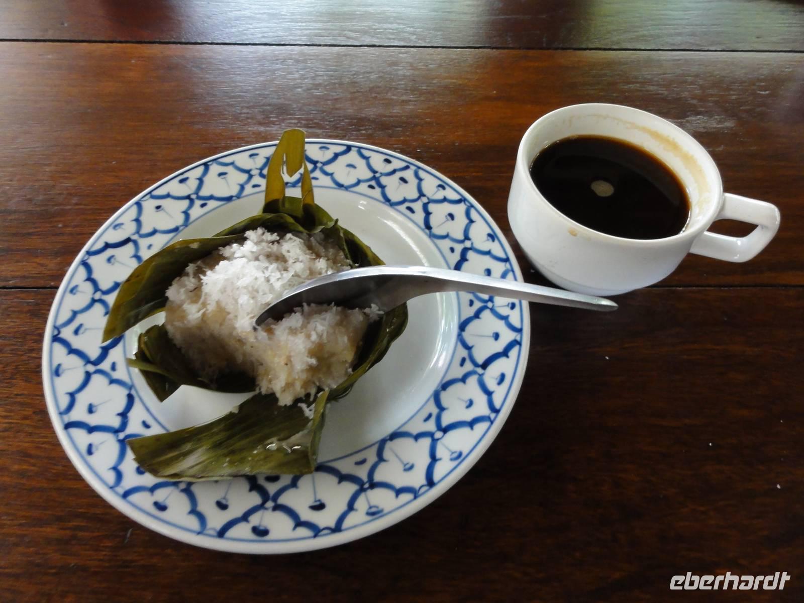 Nachdem wir heute nahezu ausschlafen konnten und uns beim Frühstück an der Luft mit Blick auf den Fluss für den Tag gestärkt haben, geht es auf Erkundungstour durch die alte Königsstadt. Zunächst bummeln wir über den Morgenmarkt, wobei wir allerlei laotischen Kaffee, Tee, Chili und Pfeffer erstehen können.
