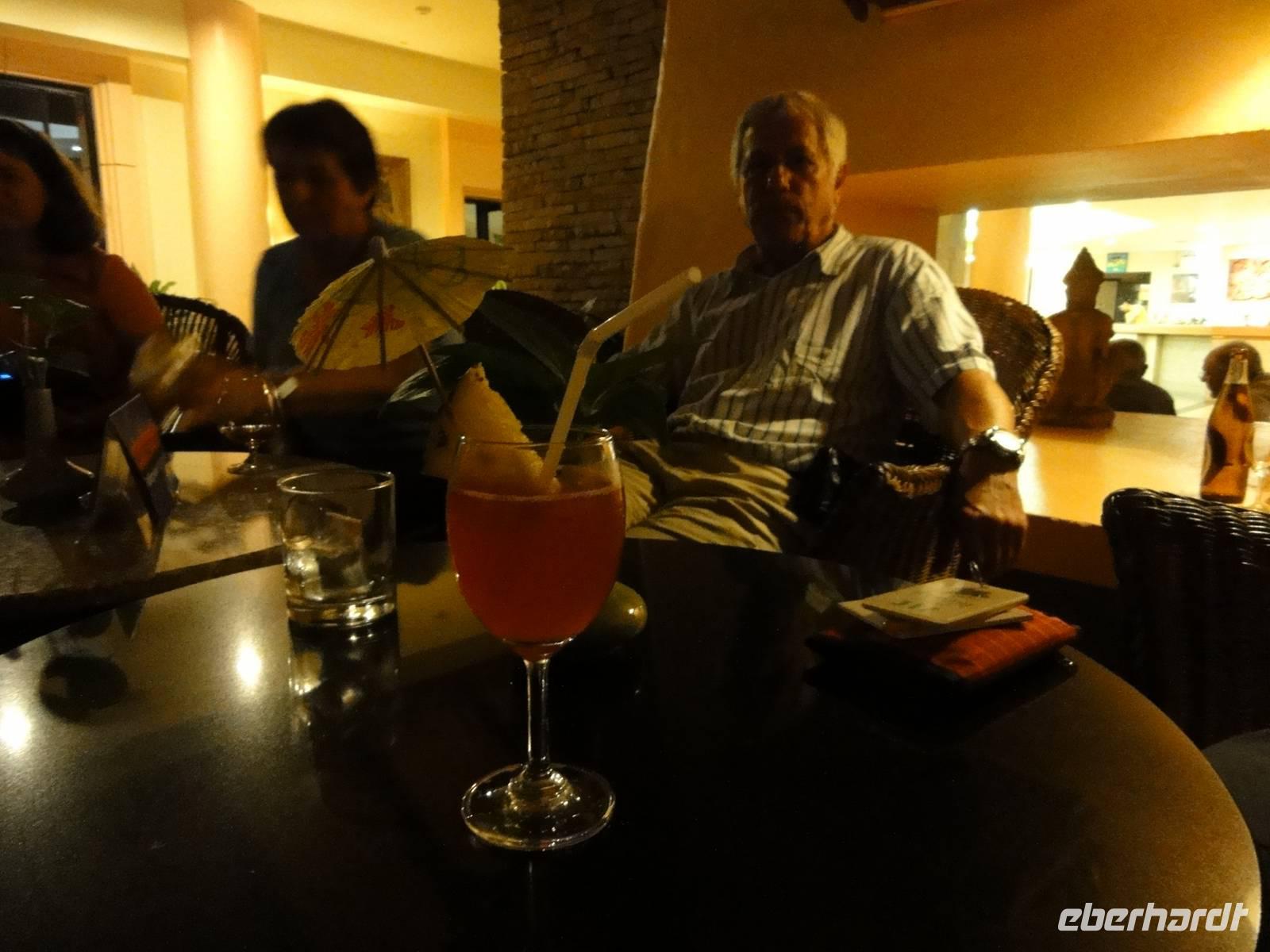 Wer dachte er kann heute den Abend nach dem Essen noch etwas gemütlich im Zimmer ausklingen lassen, der sollte sich getäuscht haben. Denn wir geraten auf dem Heimweg hinein in eine mittelschwere Stadtkrise! Erst können wir wegen des Besuchs des vietnamesischen Präsidenten die abgesperrte Straße mit dem Bus nicht passieren und als wir schließlich nicht mehr warten und zum Hotel laufen wollen, werden wir von einem resoluten, überaus um unsere Sicherheit besorgten Polizisten aufgehalten, der zwar alle Einheimischen passieren lässt, uns jedoch strikt zurückweist. Eine große Rauchwolke steigt über der Stadt auf und die Stimmung kippt schlagartig, denn es muss einen großen Brand ganz in der Nähe unseres Hotels gegeben haben. Trotzdem bahnen wir uns wie Flüchtlinge einen Weg durch die Menschenhorden, schlagen Umwege ein, drängen uns an Ordnungshütern vorbei, bis wir endlich unser Ziel erreichen! Was für ein Abend, was für ein Abenteuer! Tja, das reisen mit Eberhardt ein Spaziergang ohne Action wird - davon hat niemand etwas gesagt.