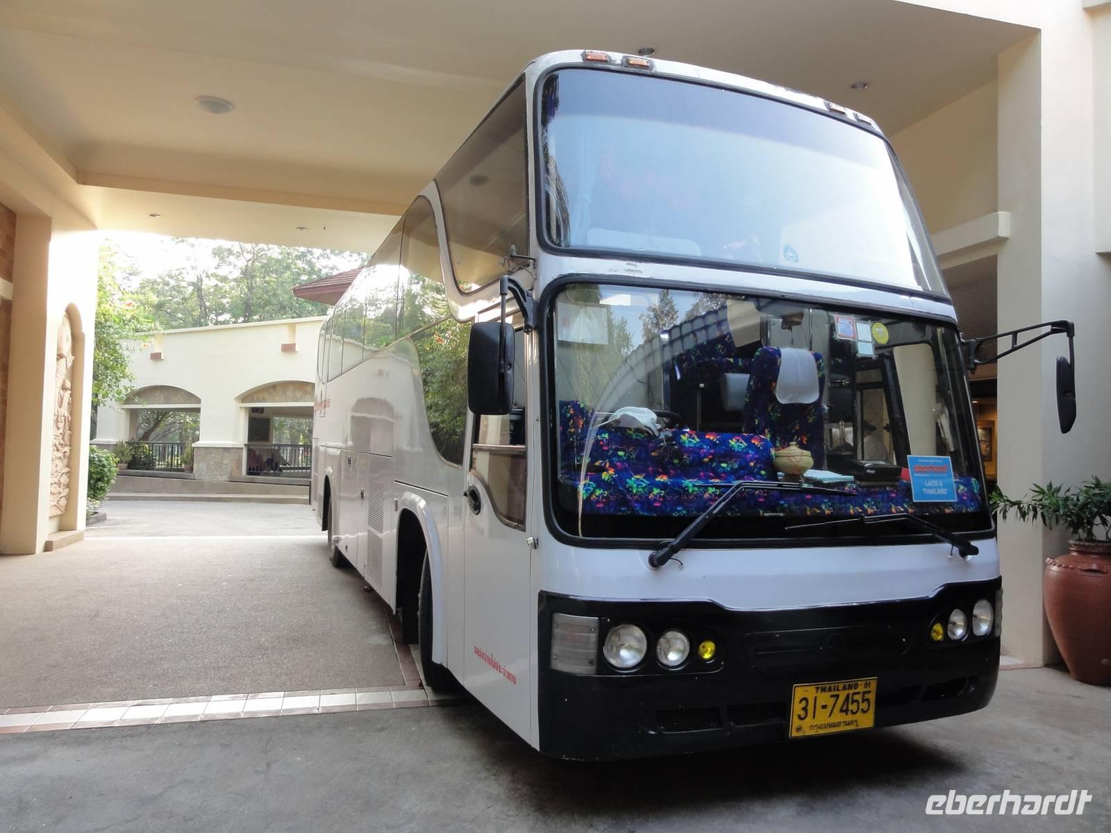 Zurück zum Hotel packen wir unsere sieben Sachen und schon geht es weiter in Richtung Flughafen. Ein letztes gemeinsames Abendessen genießen wir in glitzernder Atmosphäre vor einer schwimmenden Bühne mit Live-Musik, lassen uns REIS, Chang-Bier und einen letzten Schluck thailändischen Whiskey schmecken, bevor der Abschied naht. Wir sagen auf Wiedersehen zu unseren zuverlässigen und geschickten Busfahrern und zu unserem Reiseleiter Gang, der uns ganz fantastisch durch sein Thailand geführt hat und uns vor allem seine Religion anschaulich und geduldig näher brachte. Auf dem Flughafen in Bangkok herrscht, wie sollte es anders sein, ein hektisches Treiben. Pünktlich kurz vor Mitternacht hebt sich unser Airbus A 380 in die Lüfte und bringt uns in knapp 12 Stunden zurück in die Heimat. Nun heißt es Abschied nehmen und nach einer so intensiven Zeit voller Harmonie, Erlebnisse die zusammen schweißen und jede Menge Spaß, fällt es keinem von uns leicht Bye Bye zu sagen.