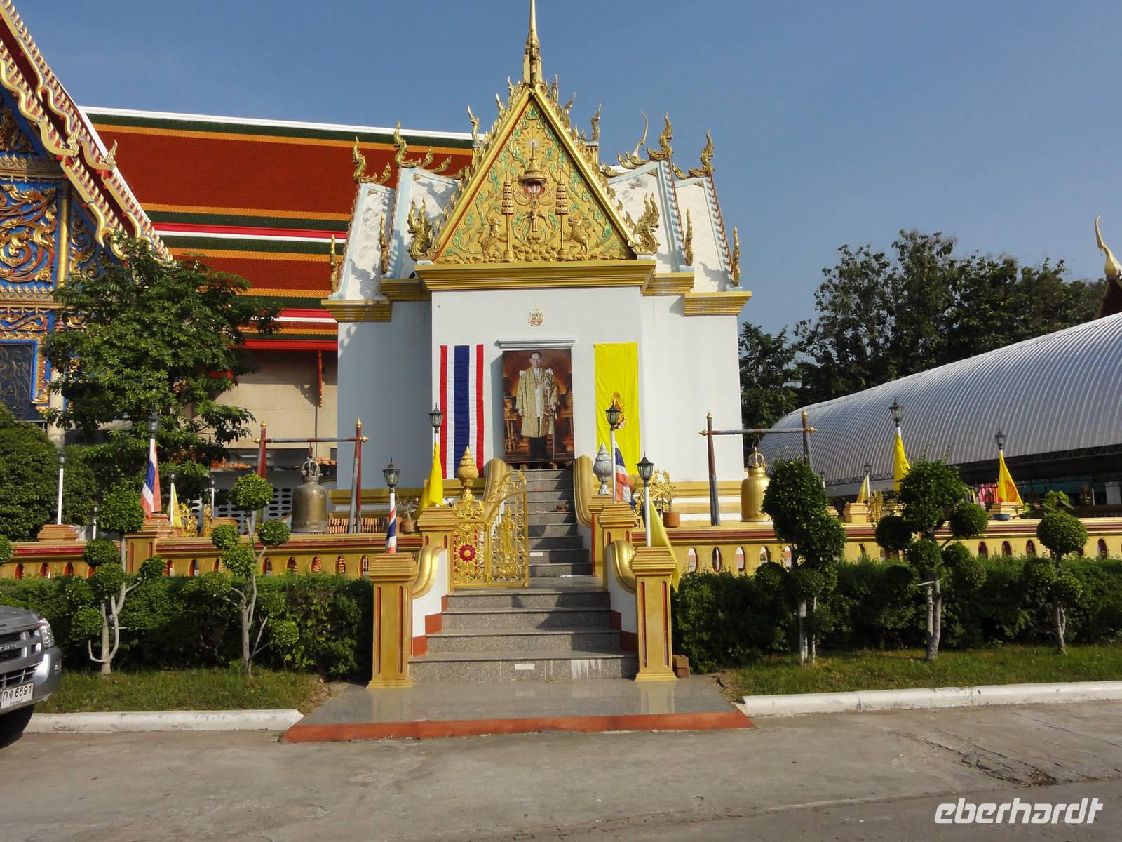 Wieder liegt ein weiter Weg vor uns, um in der Geschichte Thailands weiter zu gehen und den nächsten Zeitabschnitt kennenzulernen. Von Phitsanulok geht es nach Ayutthaya. In nahezu jeder Ortschaft, die wir unterwegs passieren laufen bereits die Vorbereitungen für den morgigen Geburtstags des Königs Bhumibol: Straßenränder werden vom Militär gesäubert und von Unkraut und Unrat befreit, Schulhöfe sind feierlich geschmückt und Menschenscharen finden sich zum Beten und Feiern zusammen. Überall wehen die Landes- und Königsflaggen im Wind und das Land scheint bereits heute von einem glänzenden Gelb überzogen zu sein.
