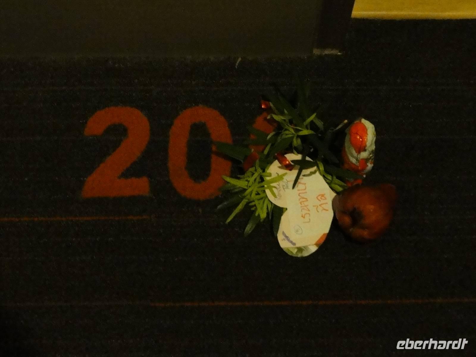 Am Nachmittag treten wir schließlich die Weiterfahrt nach Bangkok an. Mühsam kämpfen wir uns durch den feiertagsbedingten Stadtverkehr des Ballungsgebietes, aber immerhin werden wir von ein paar Feuerwerken begleitet! Das nennen wir einen herzlichen Empfang