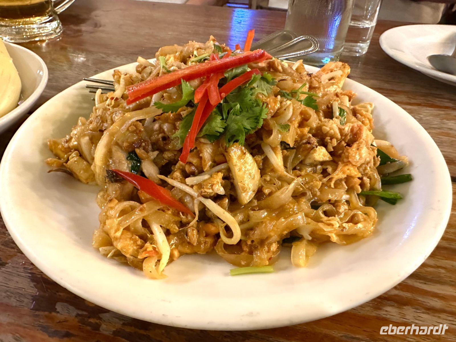 Nach dem Bezug unserer Zimmer erkunden wir bereits das Viertel und werden später von Taam zum Abendessen abgeholt. Wir fahren in ein thailändisches Restaurant welches, so wie unser Hotel auch, direkt am Chao Phraya River liegt.